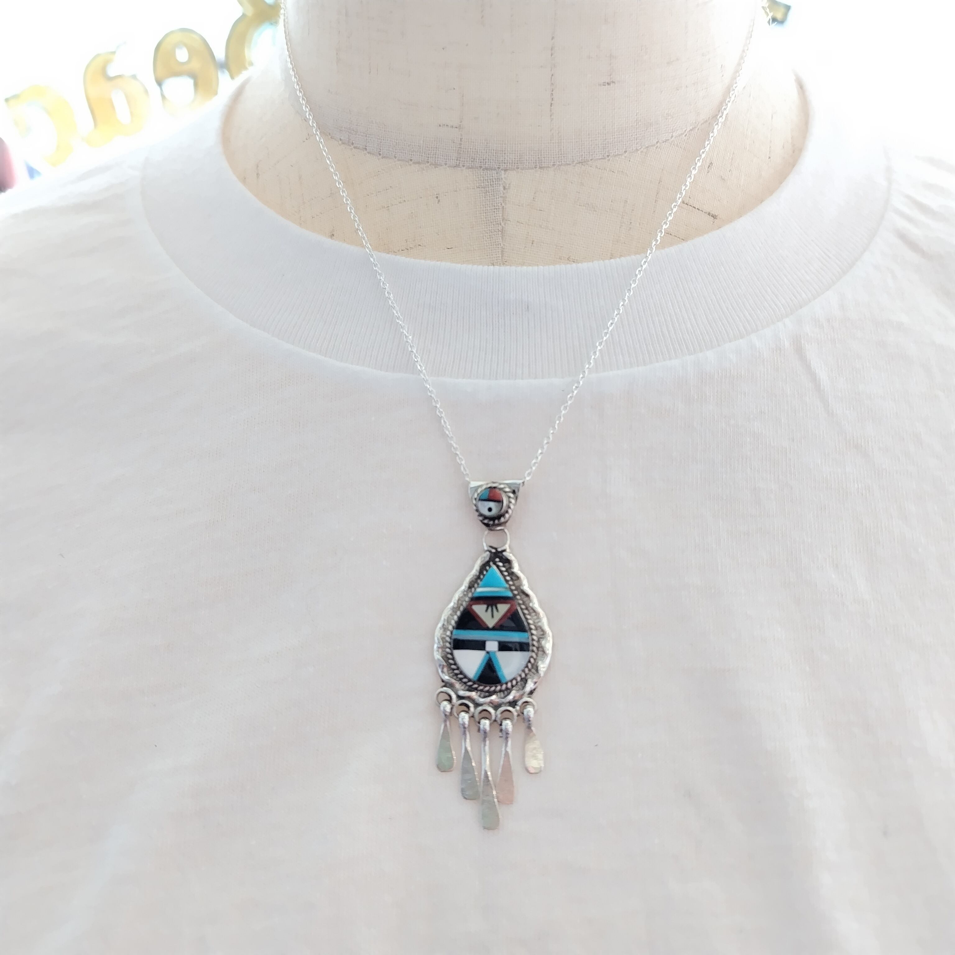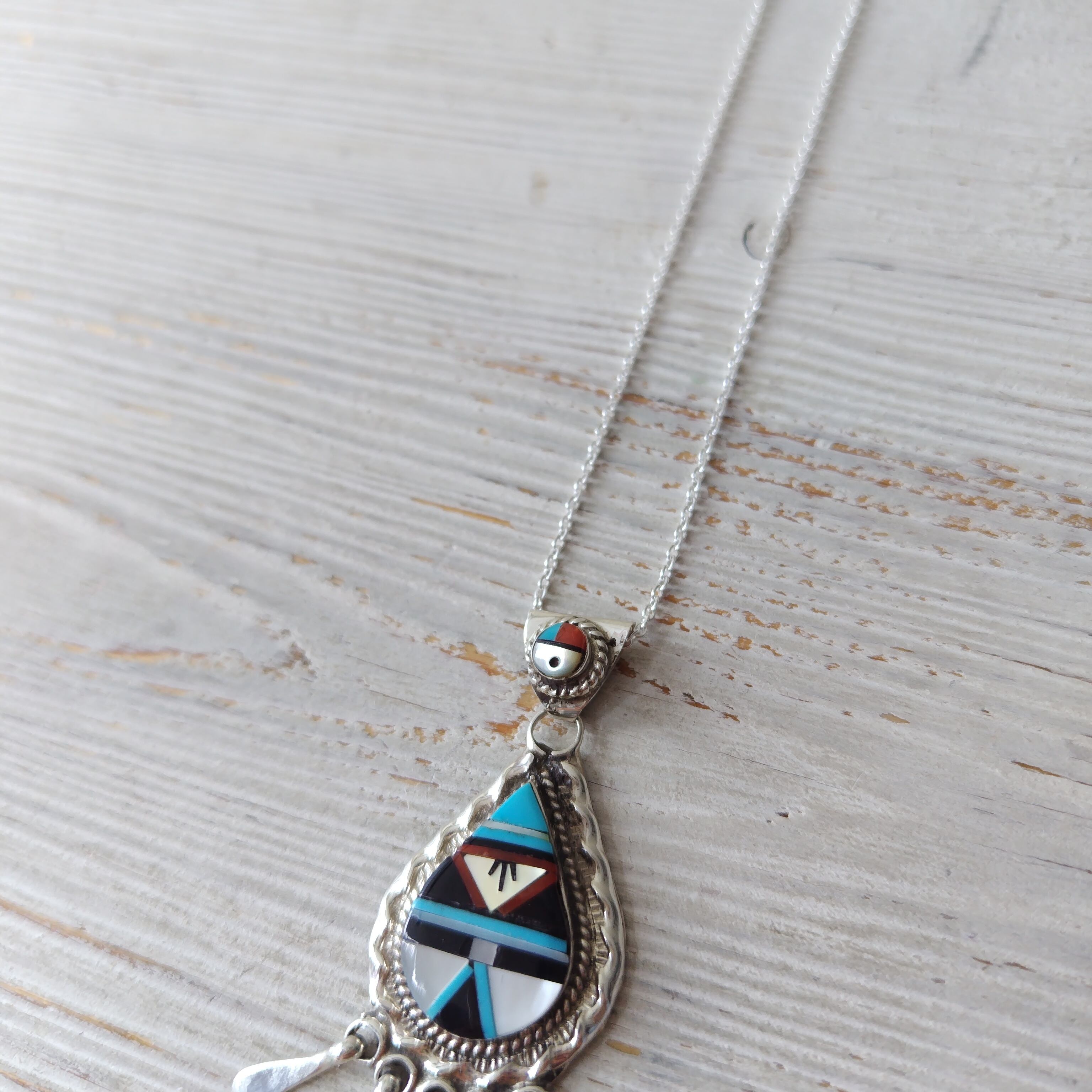 ZUNI Rydell & Lynette Yuselew インレイ シルバートップ 45cm シルバーチェーン付き