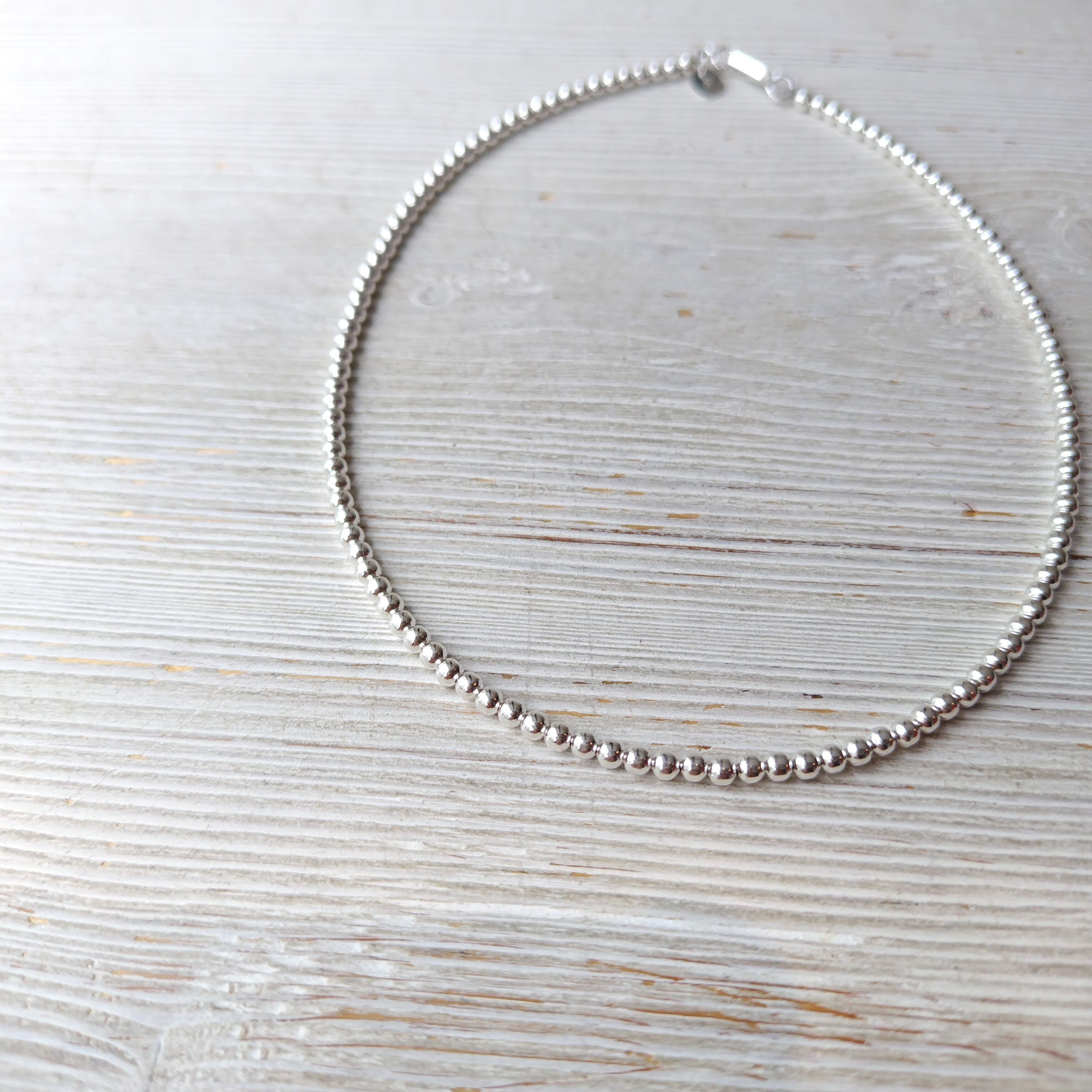 3mm玉 35cm ナバホパール シルバーネックレス インディアンジュエリー