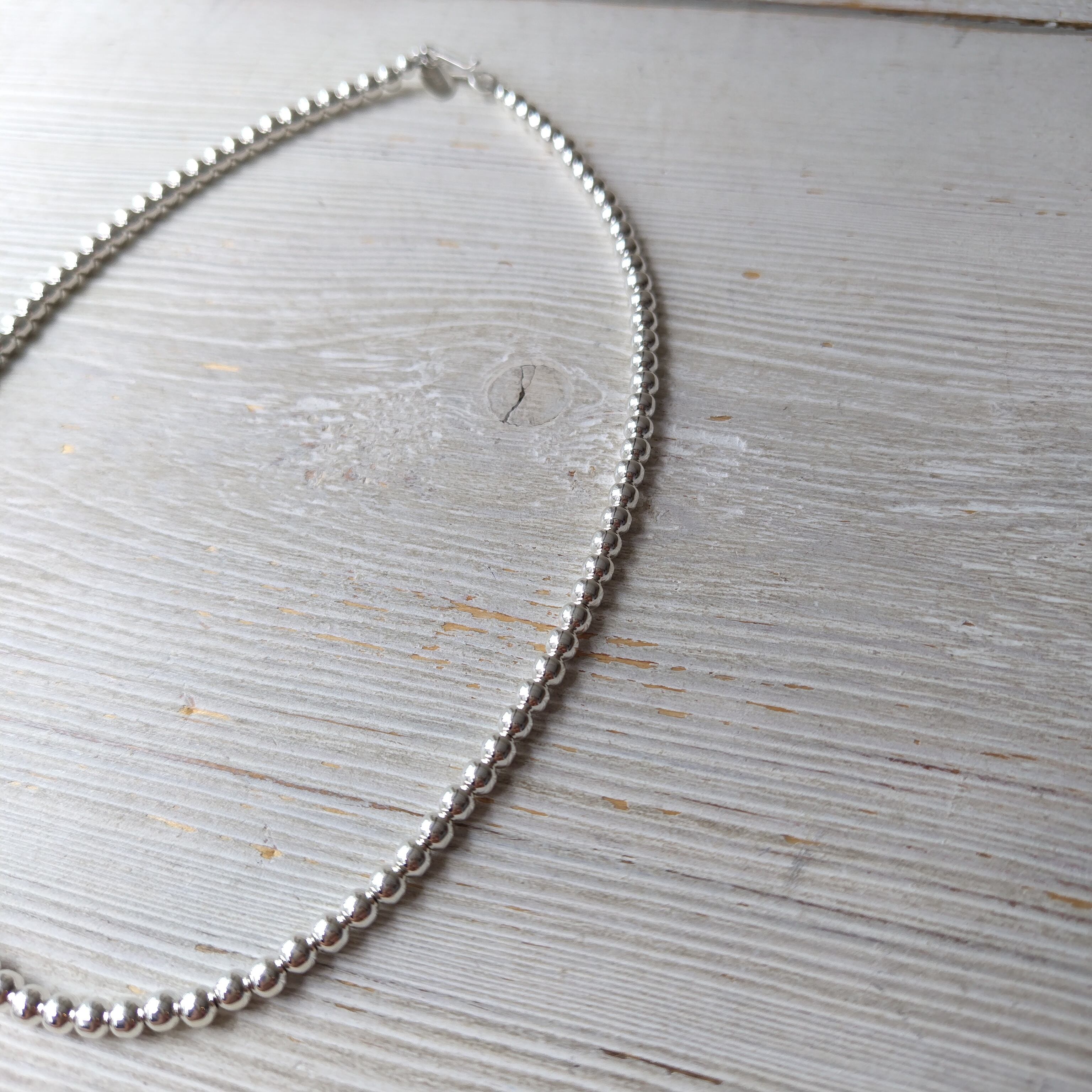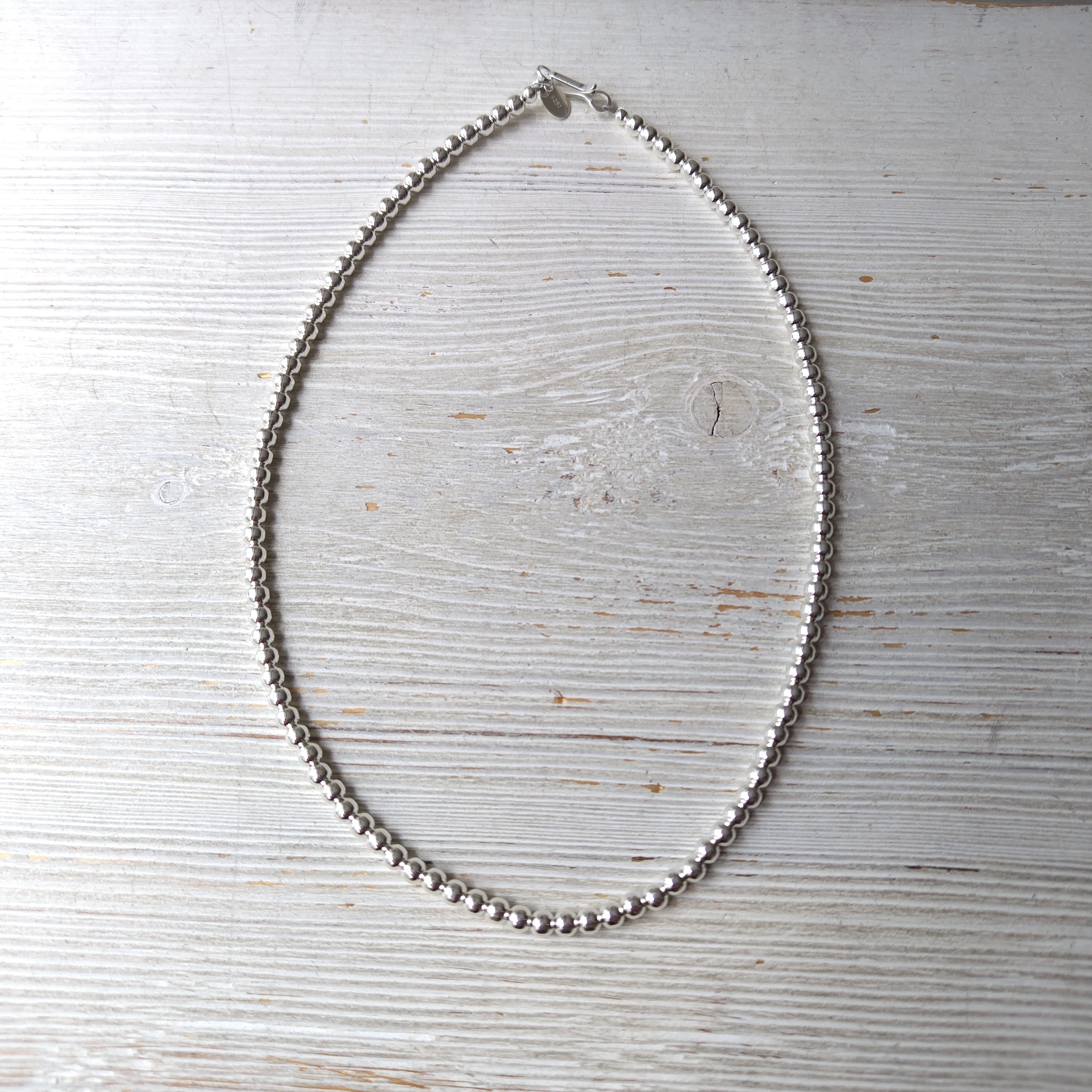 4mm玉 40cm ナバホパール シルバーネックレス インディアンジュエリー
