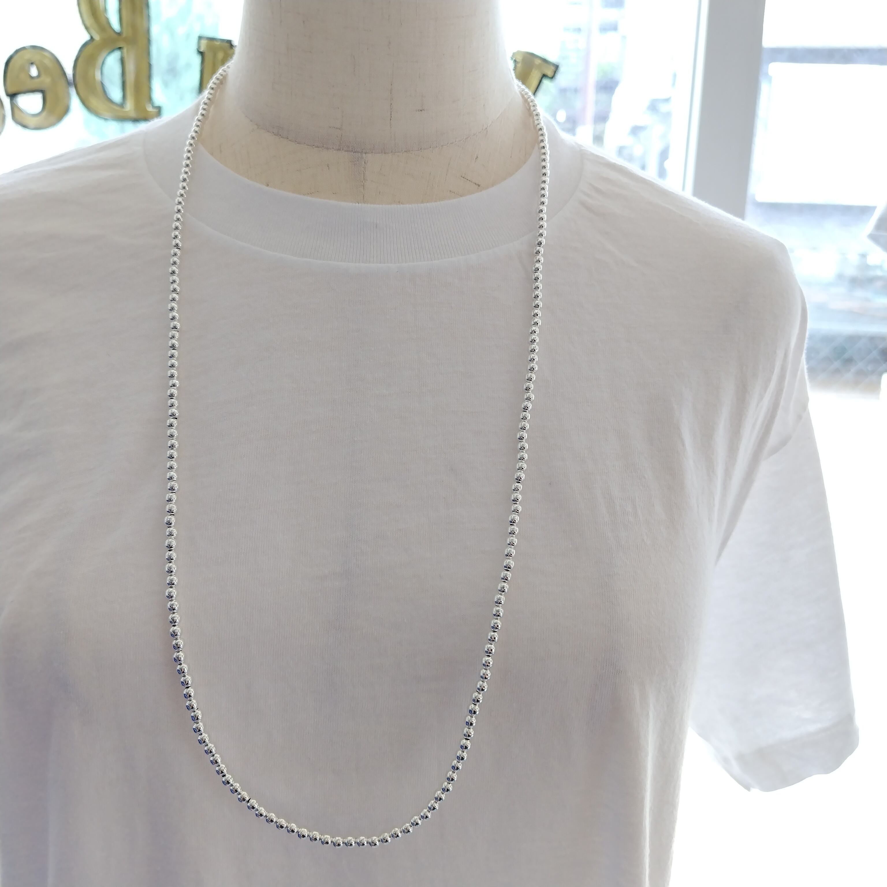 4mm玉 80cm ナバホパール シルバーネックレス インディアンジュエリー
