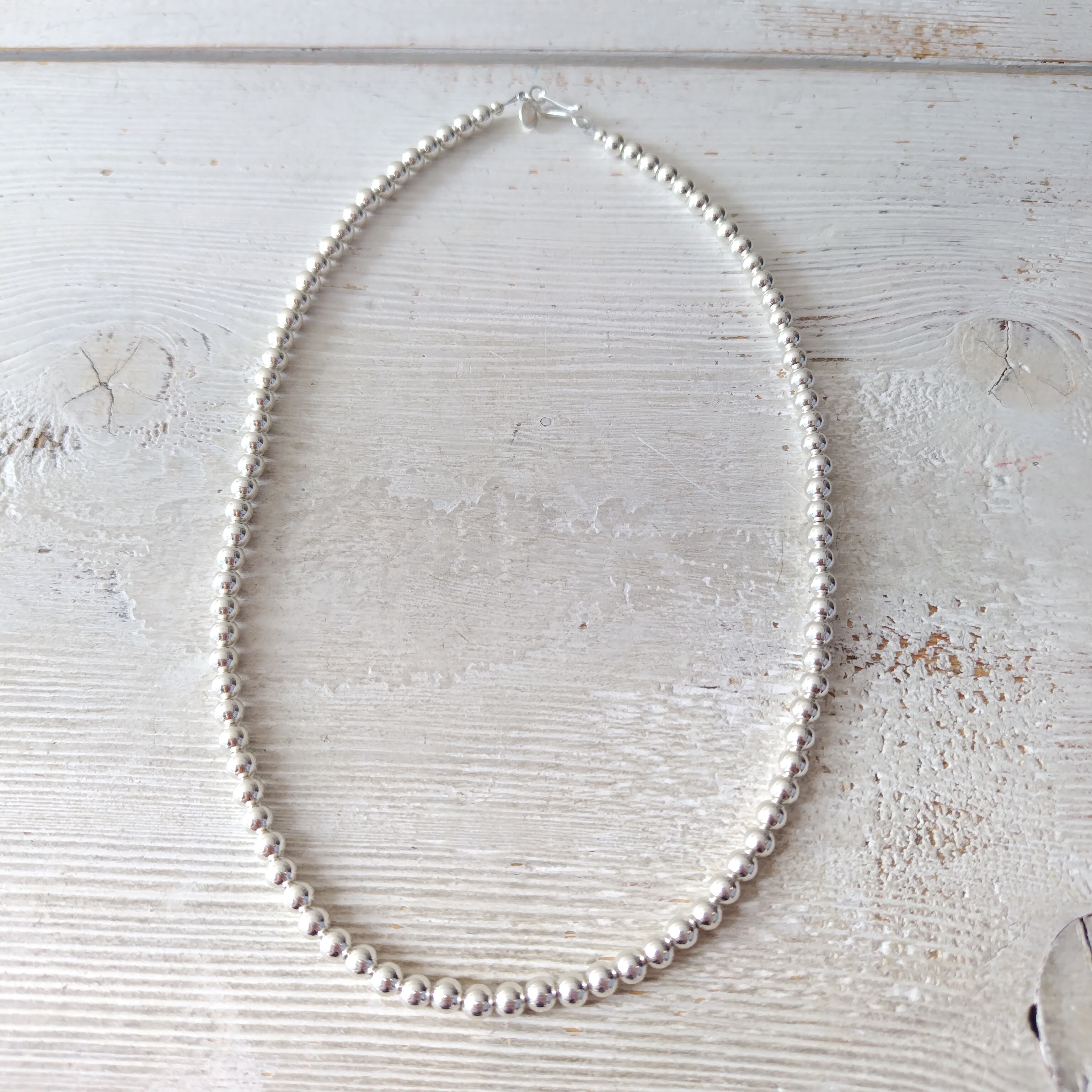 5mm玉 45cm ナバホパール シルバーネックレス インディアンジュエリー