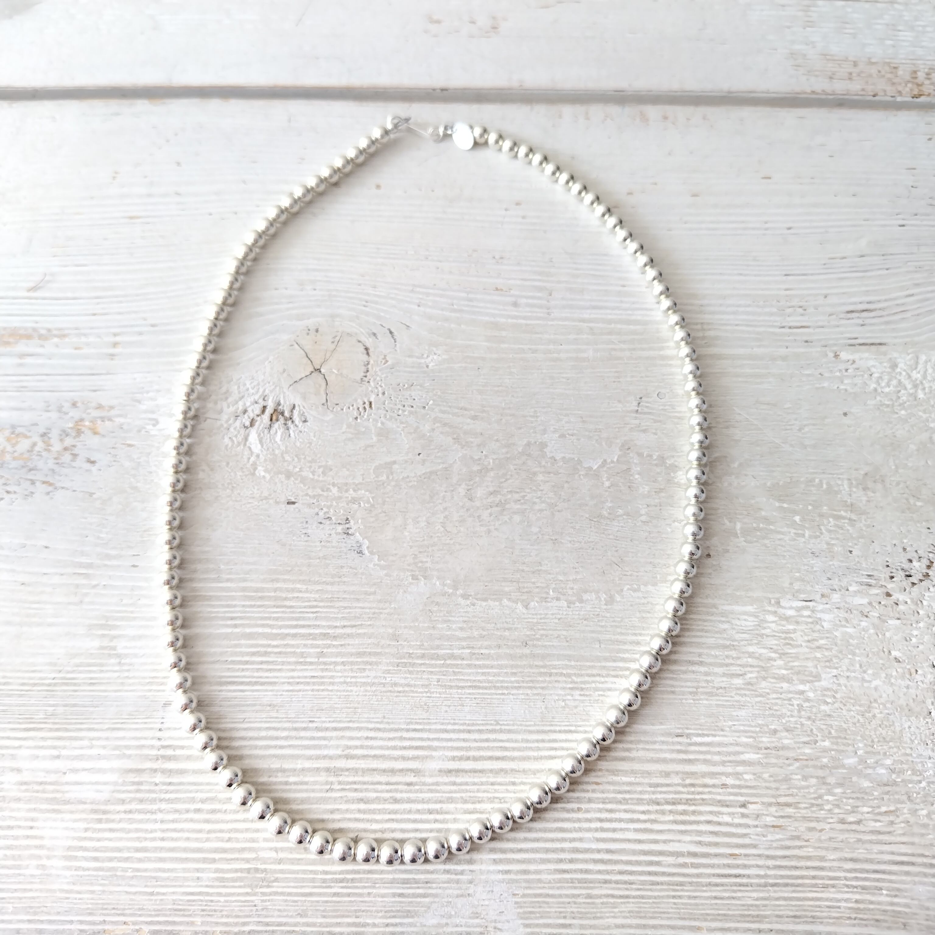 5mm玉 50cm ナバホパール シルバーネックレス インディアンジュエリー