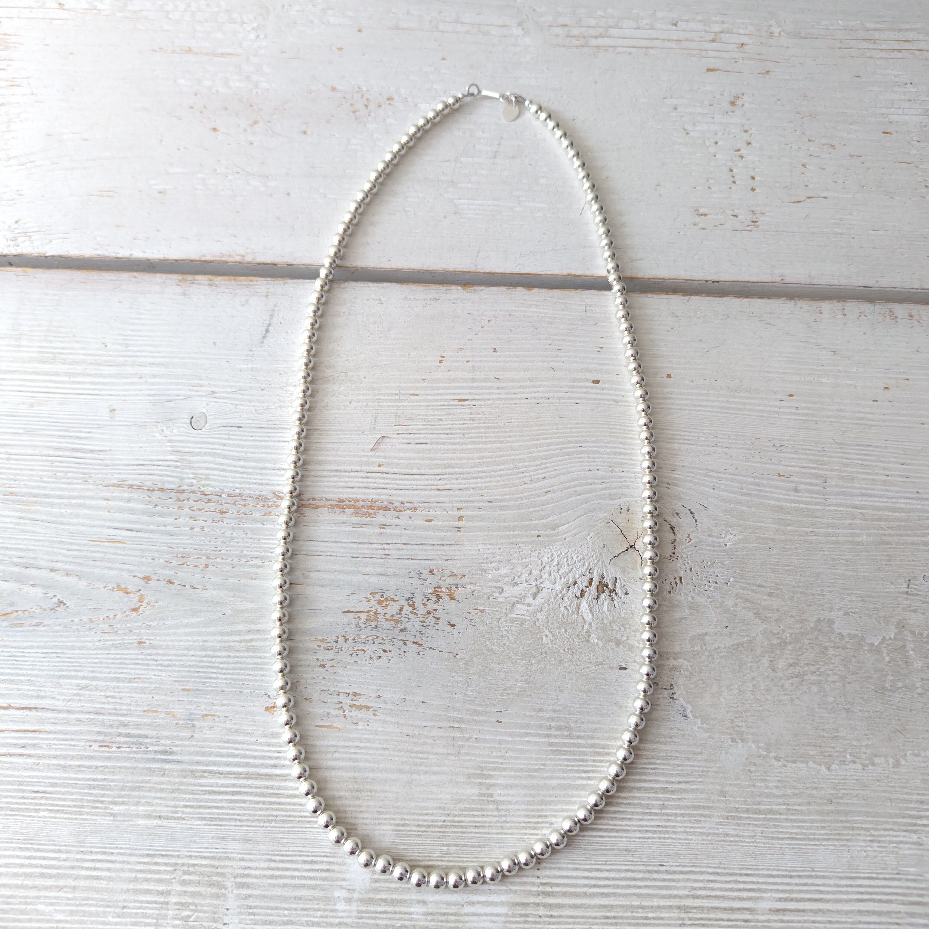 5mm玉 60cm ナバホパール シルバーネックレス インディアンジュエリー