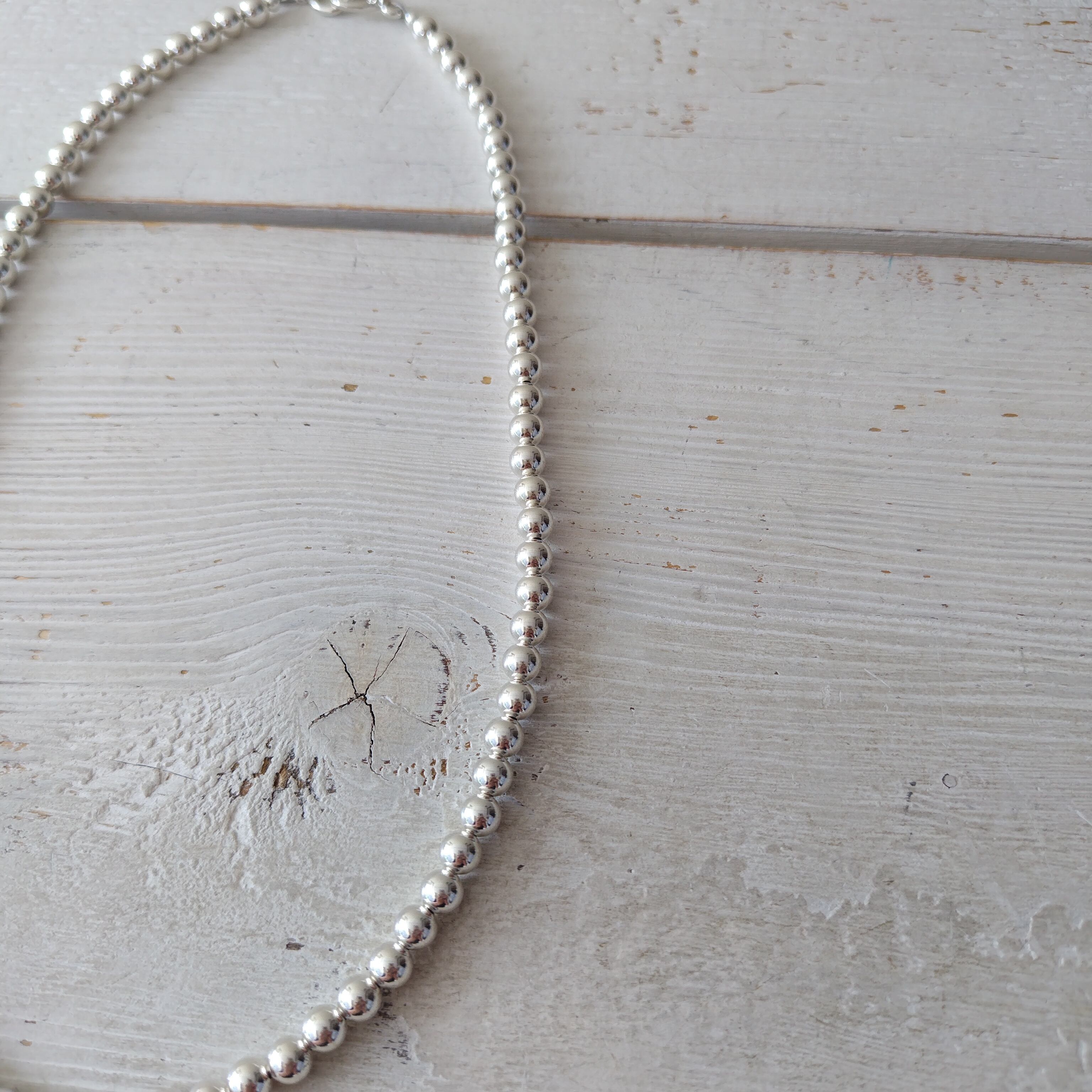 6mm玉 50cm ナバホパール シルバーネックレス インディアンジュエリー