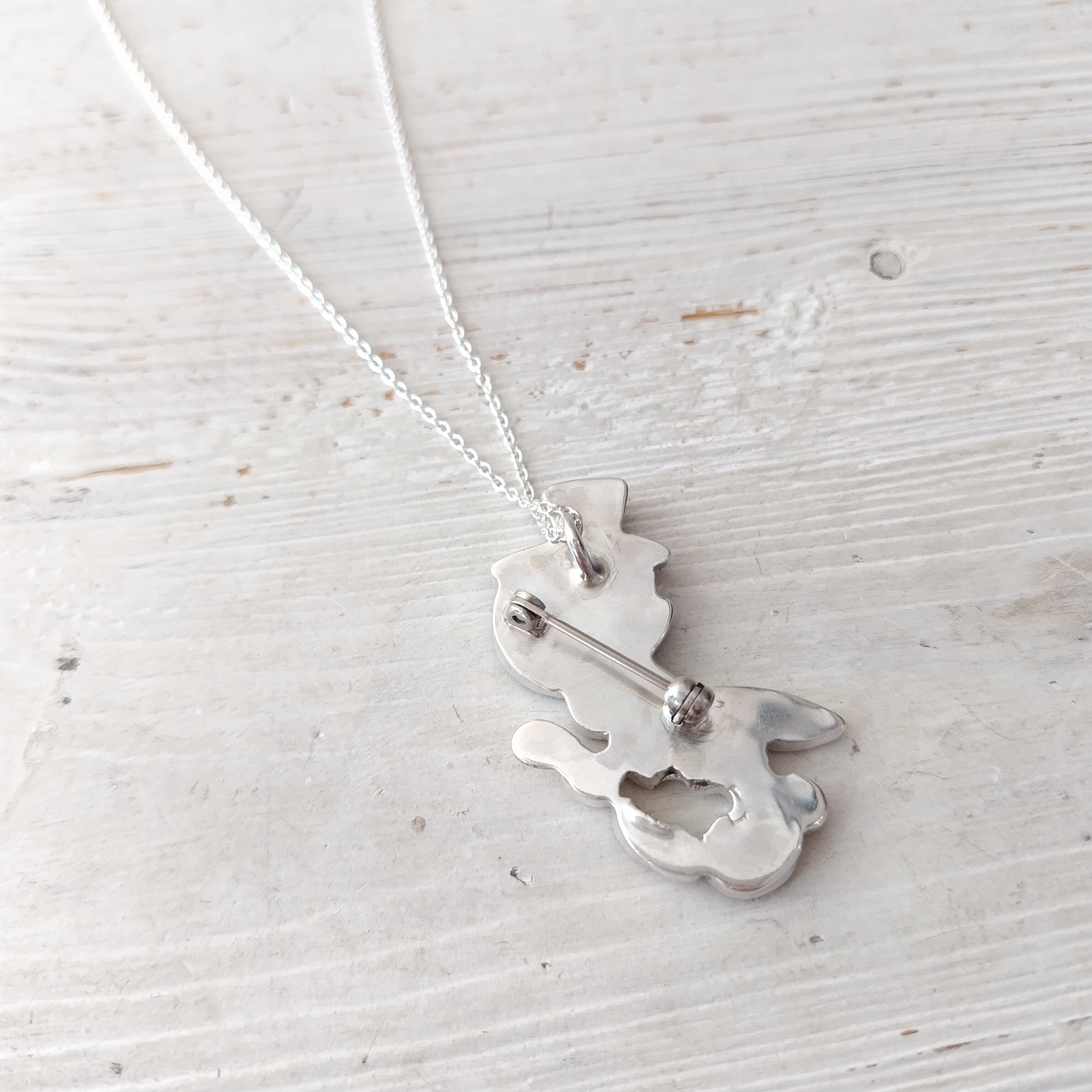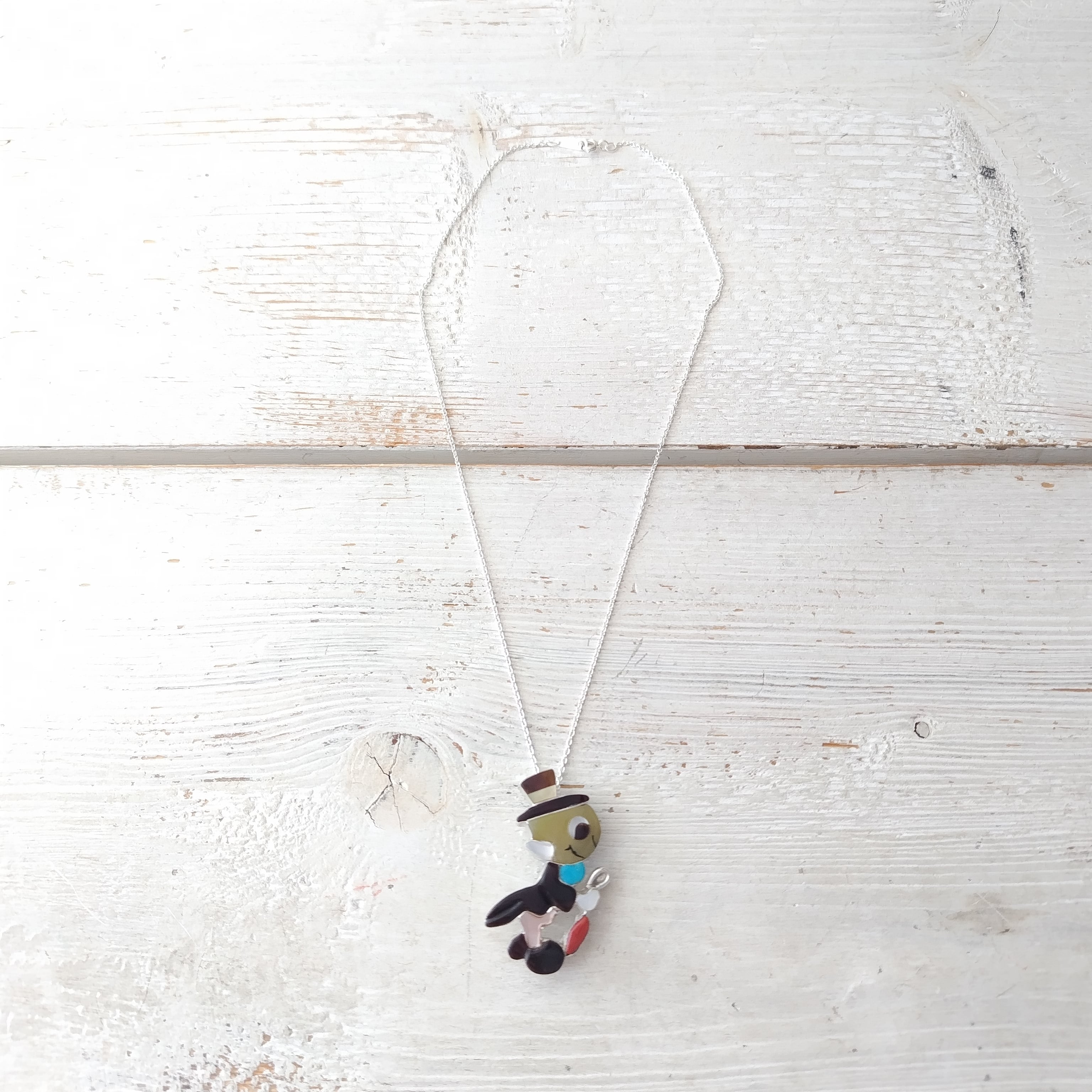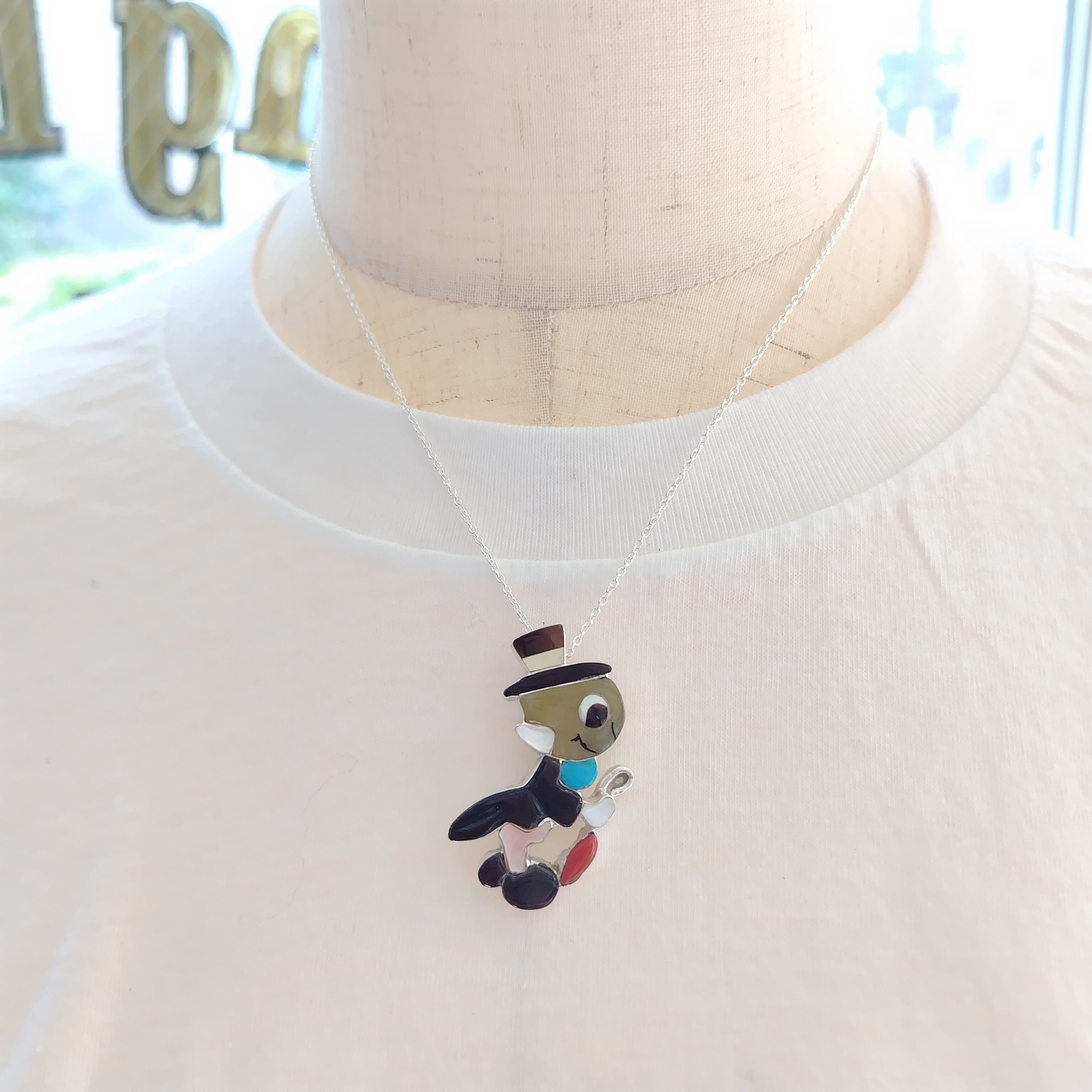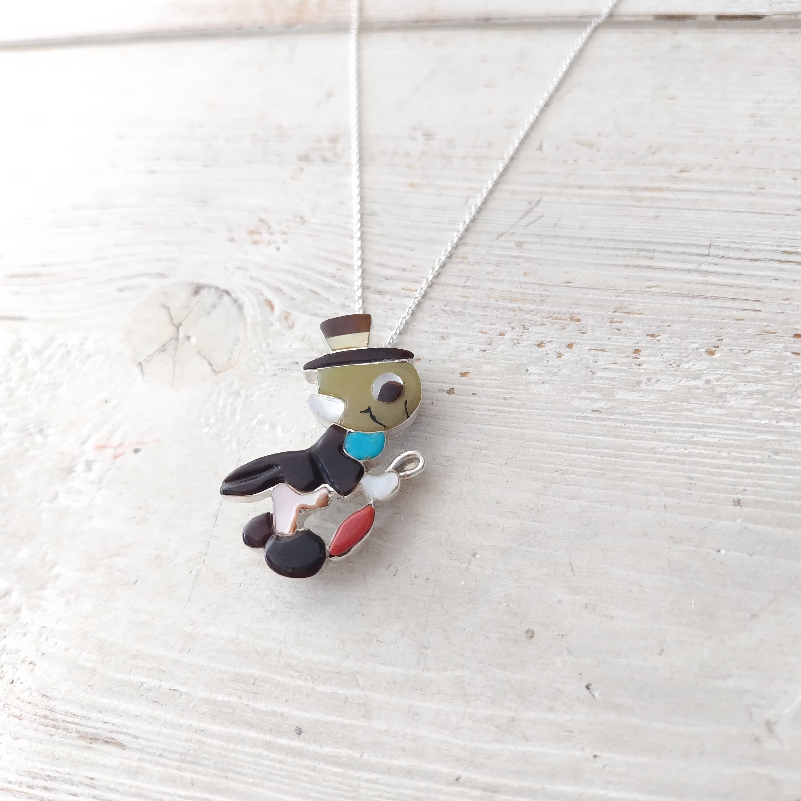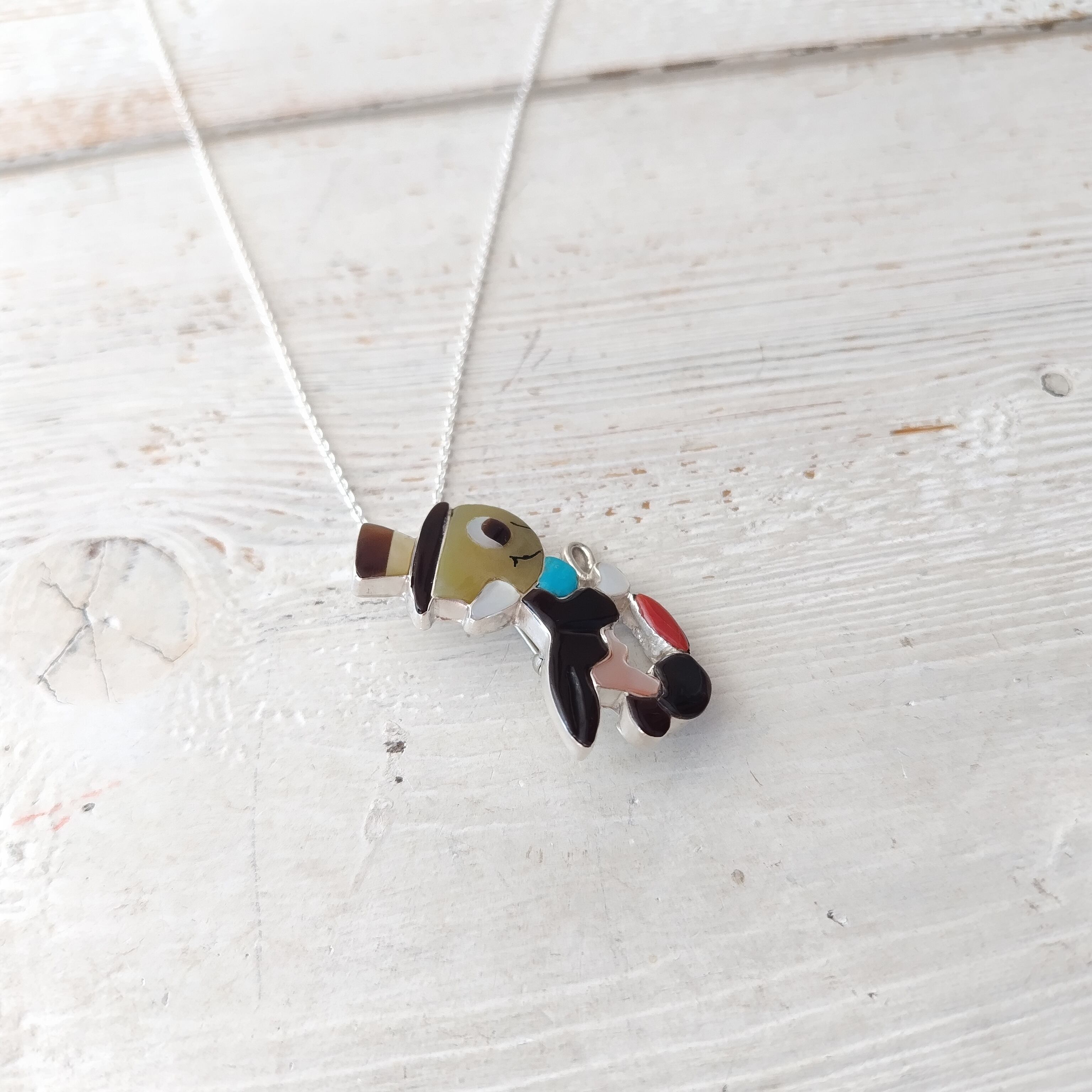 ZUNI Paula Leekity インレイ シルバートップ+ブローチ 45cm シルバーチェーン付き インディアンジュエリー