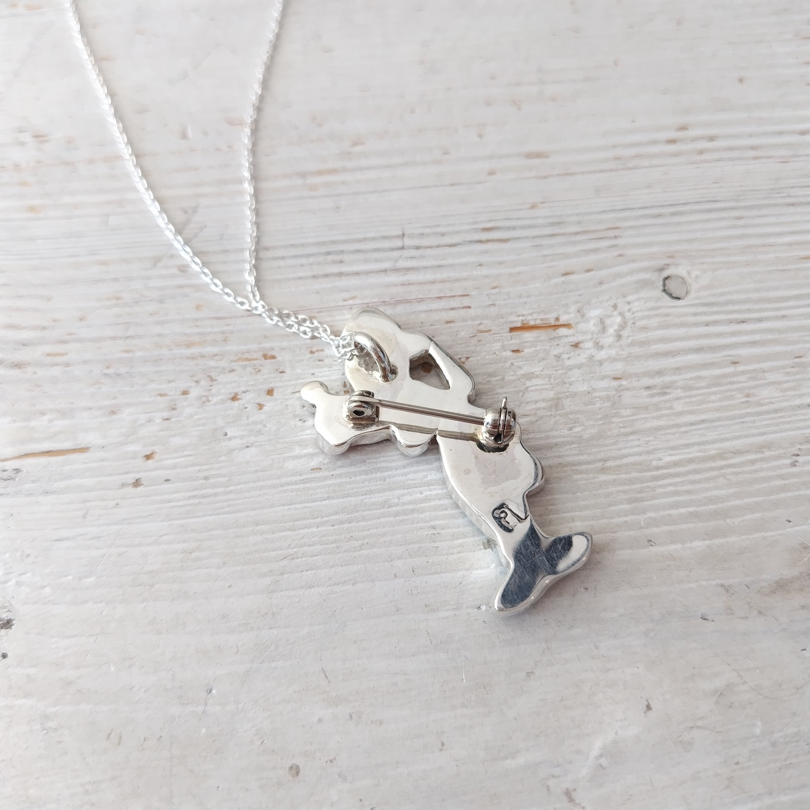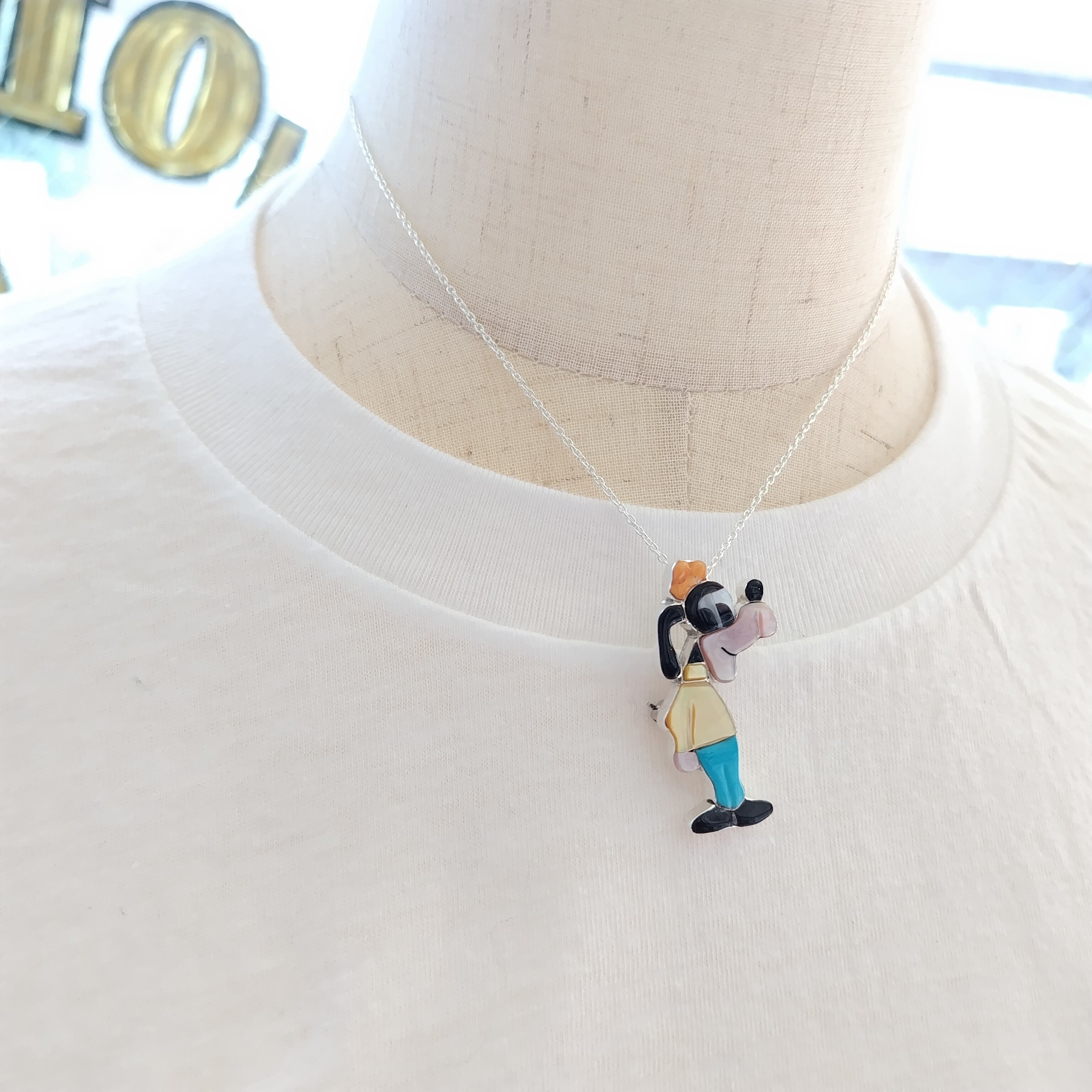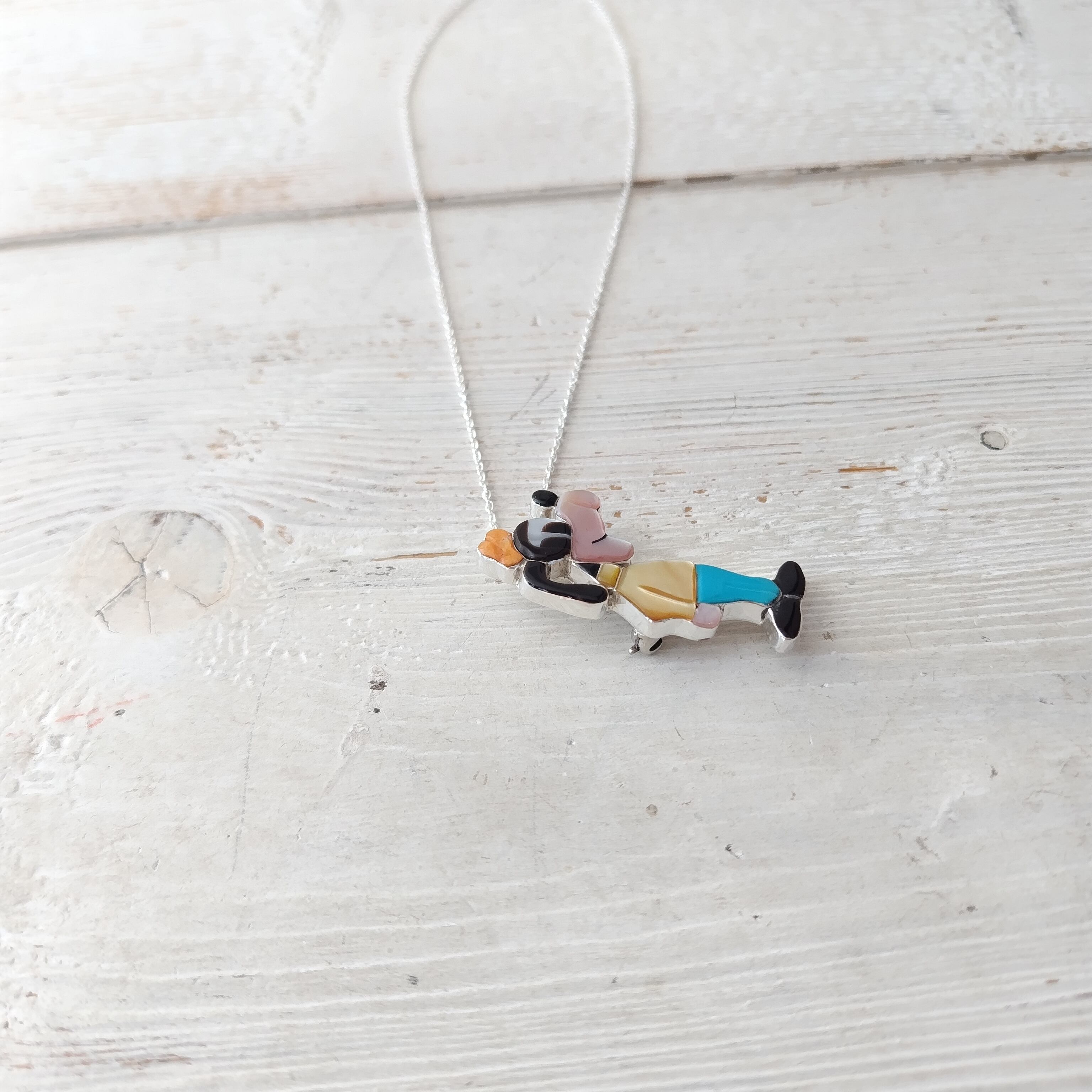 ZUNI Paula Leekity インレイ シルバートップ+ブローチ 40cm シルバーチェーン付き インディアンジュエリー
