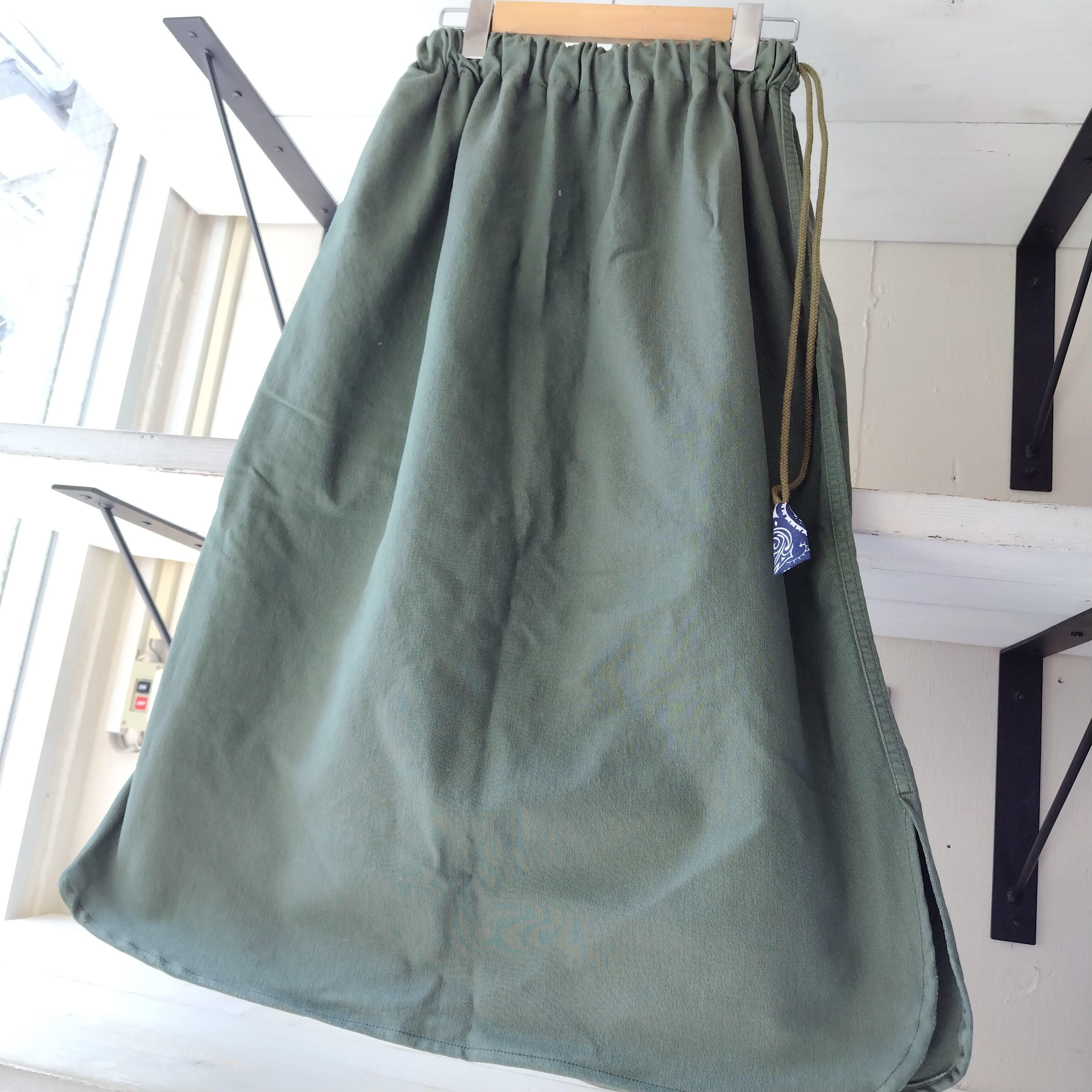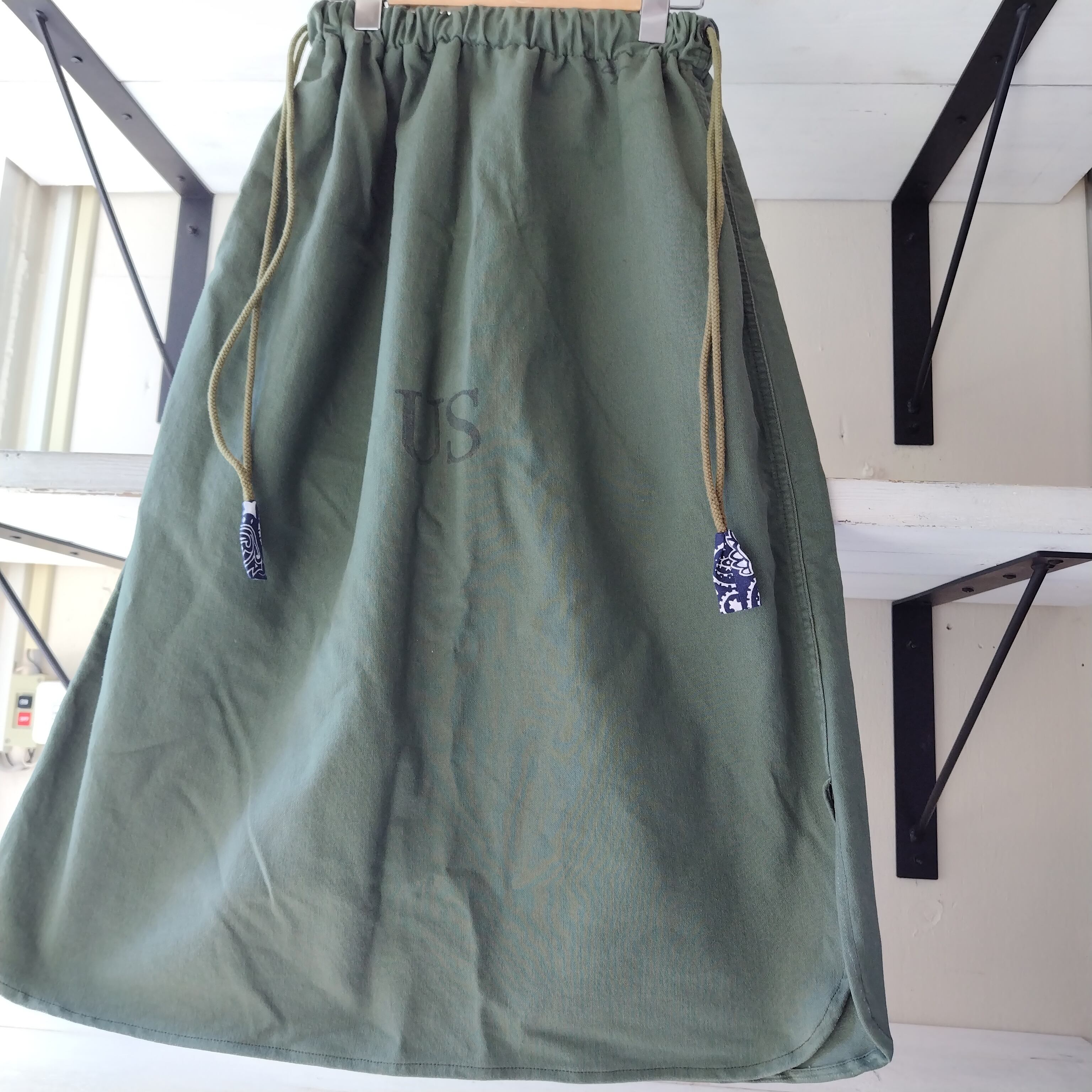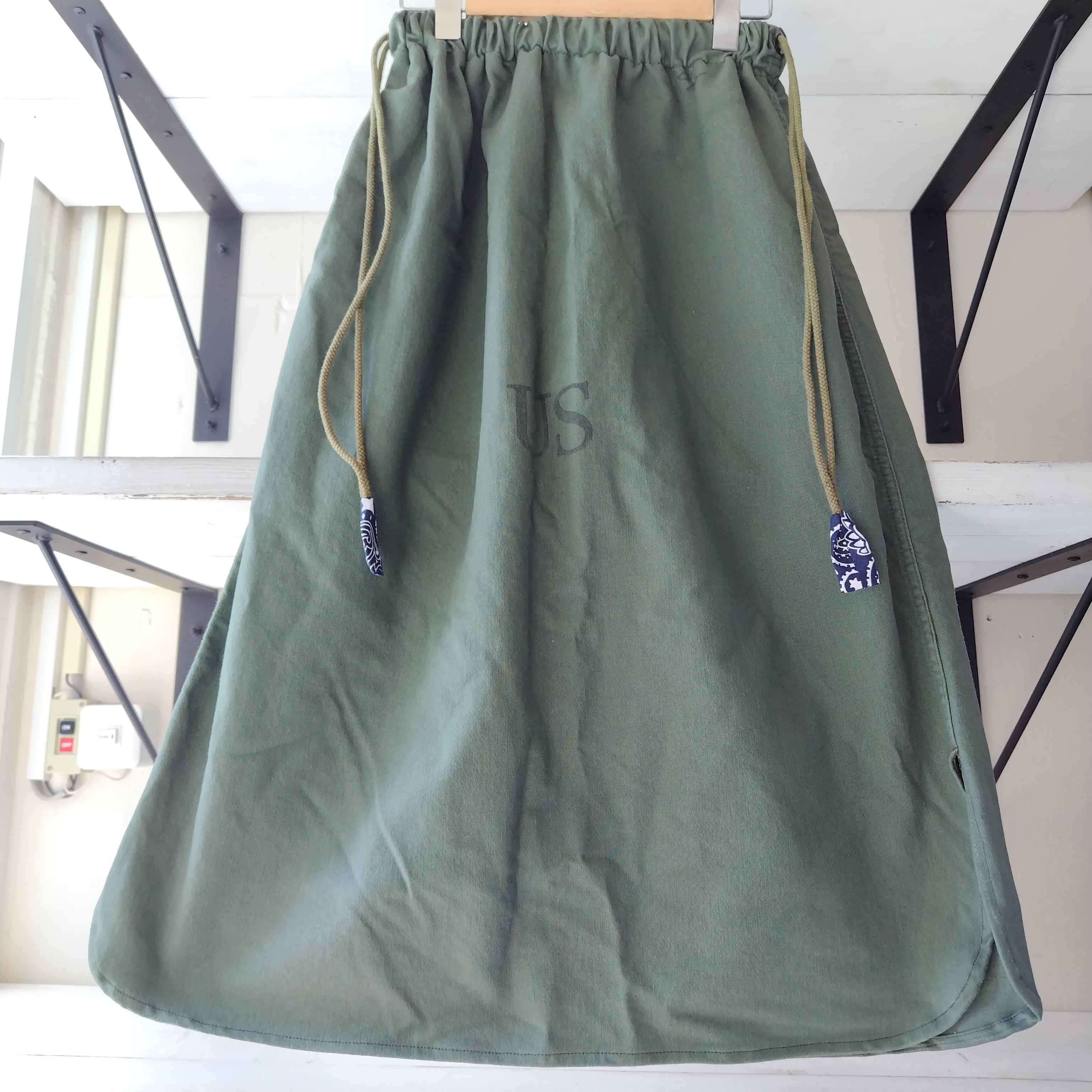 雰囲気のいいミリタリーランドリーバッグからのリメイクスカートになります!