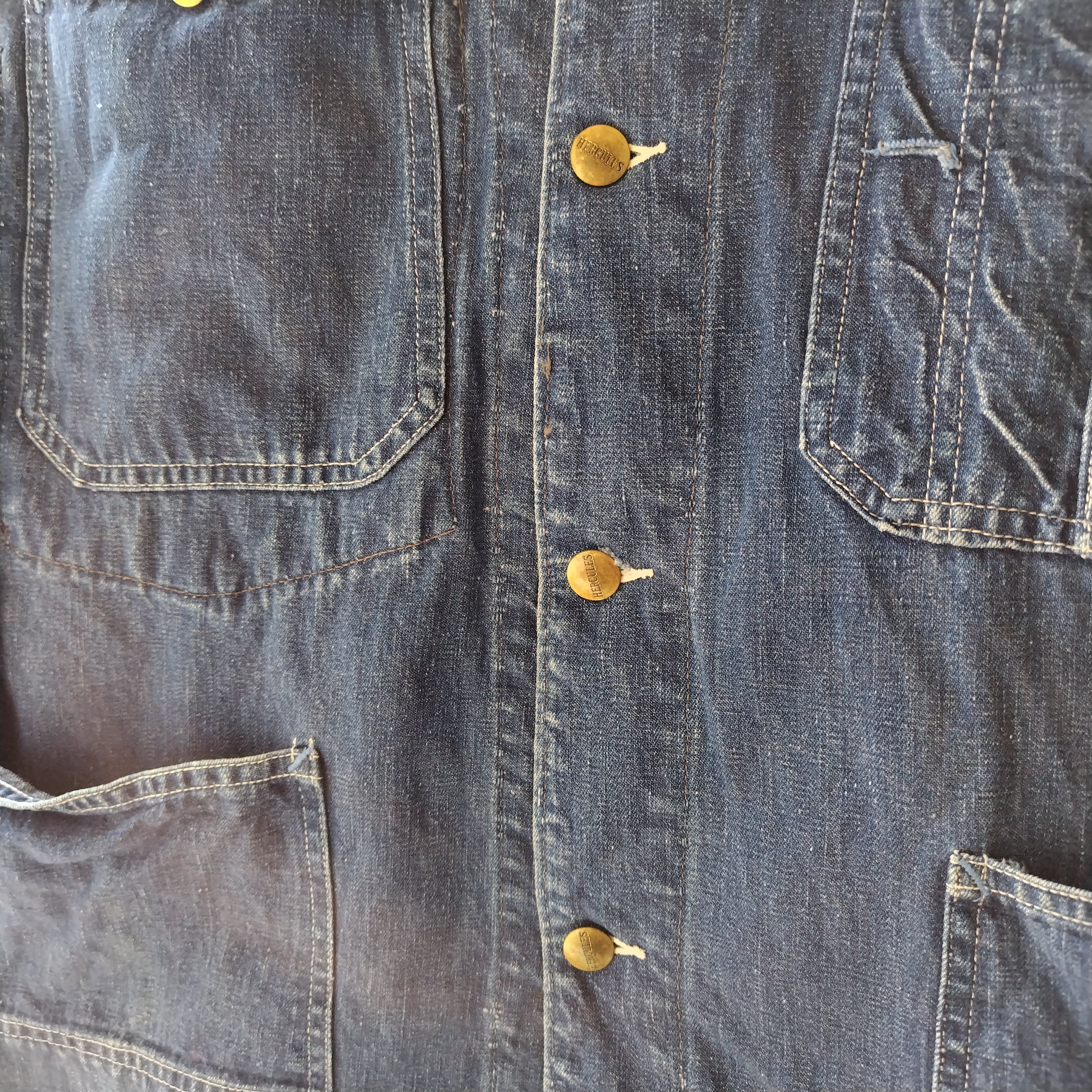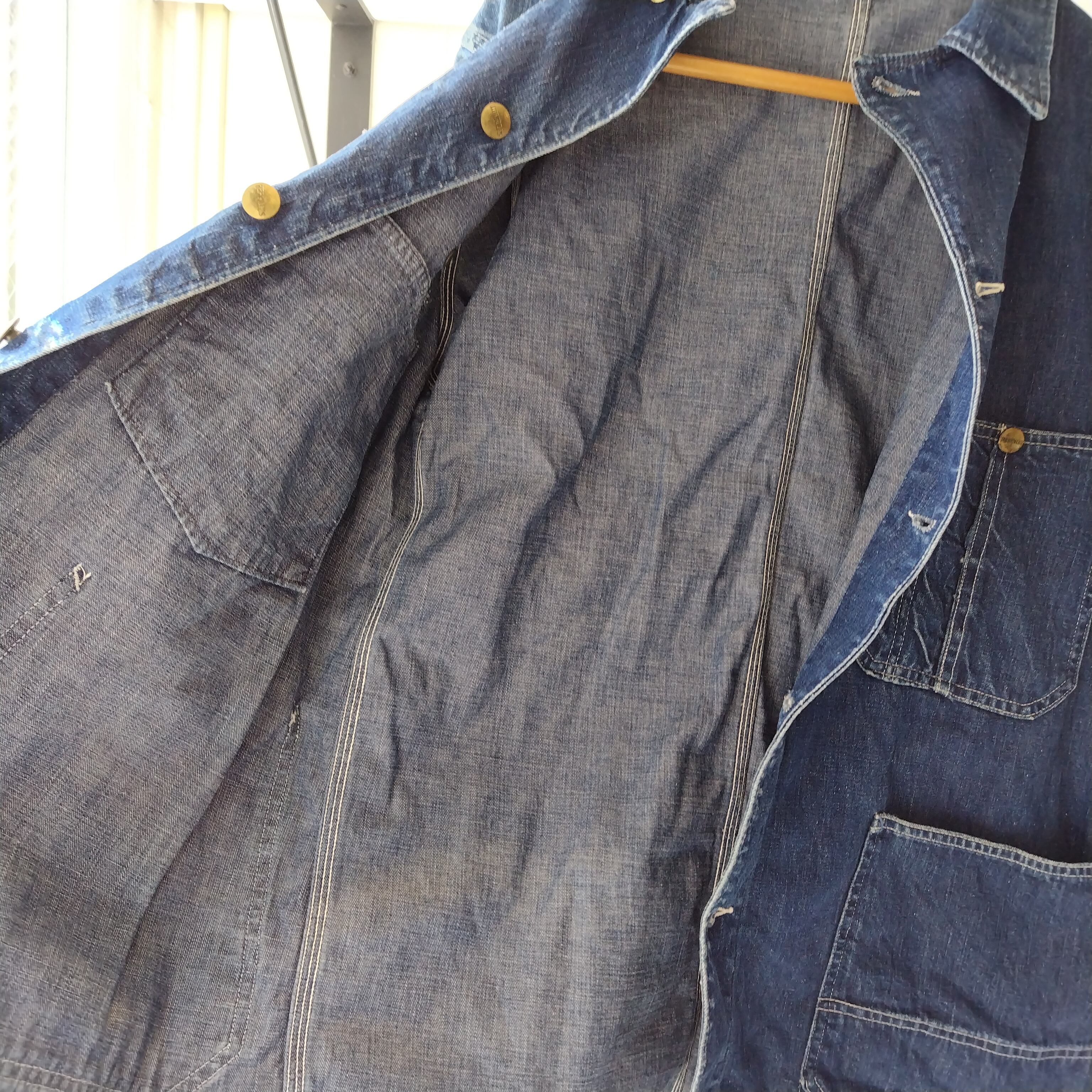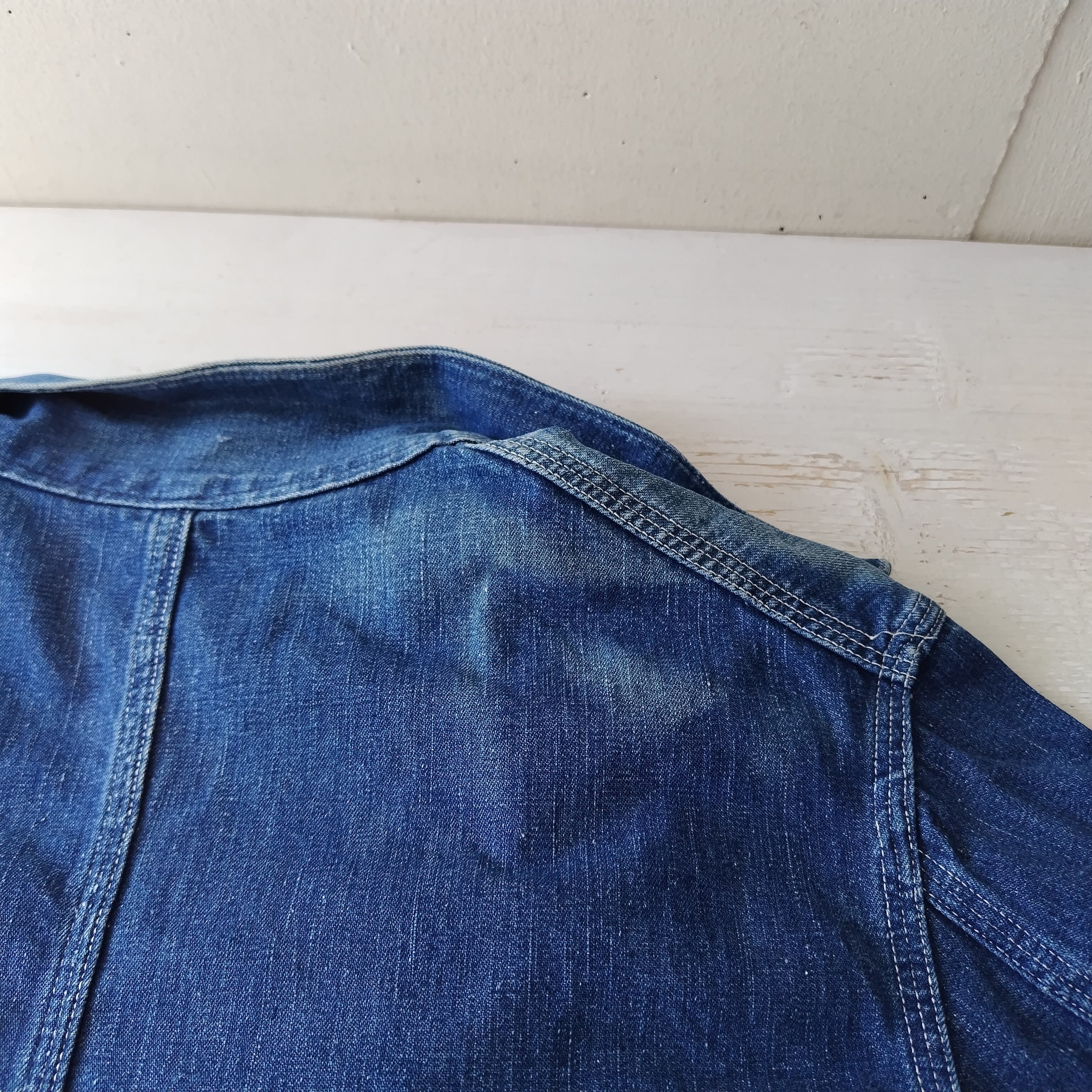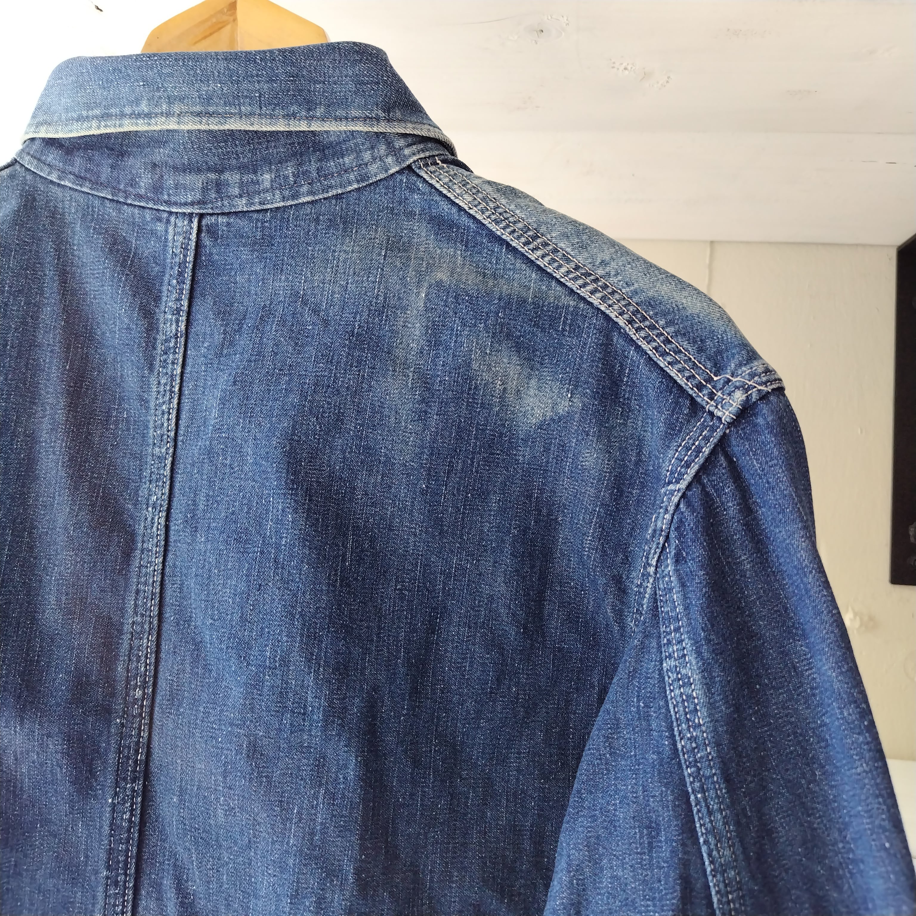 洗いこんだ感、バック右肩に色ぬけがございますが65年以上前のカバーオールとしてはコンディションいいほうかと思います!!