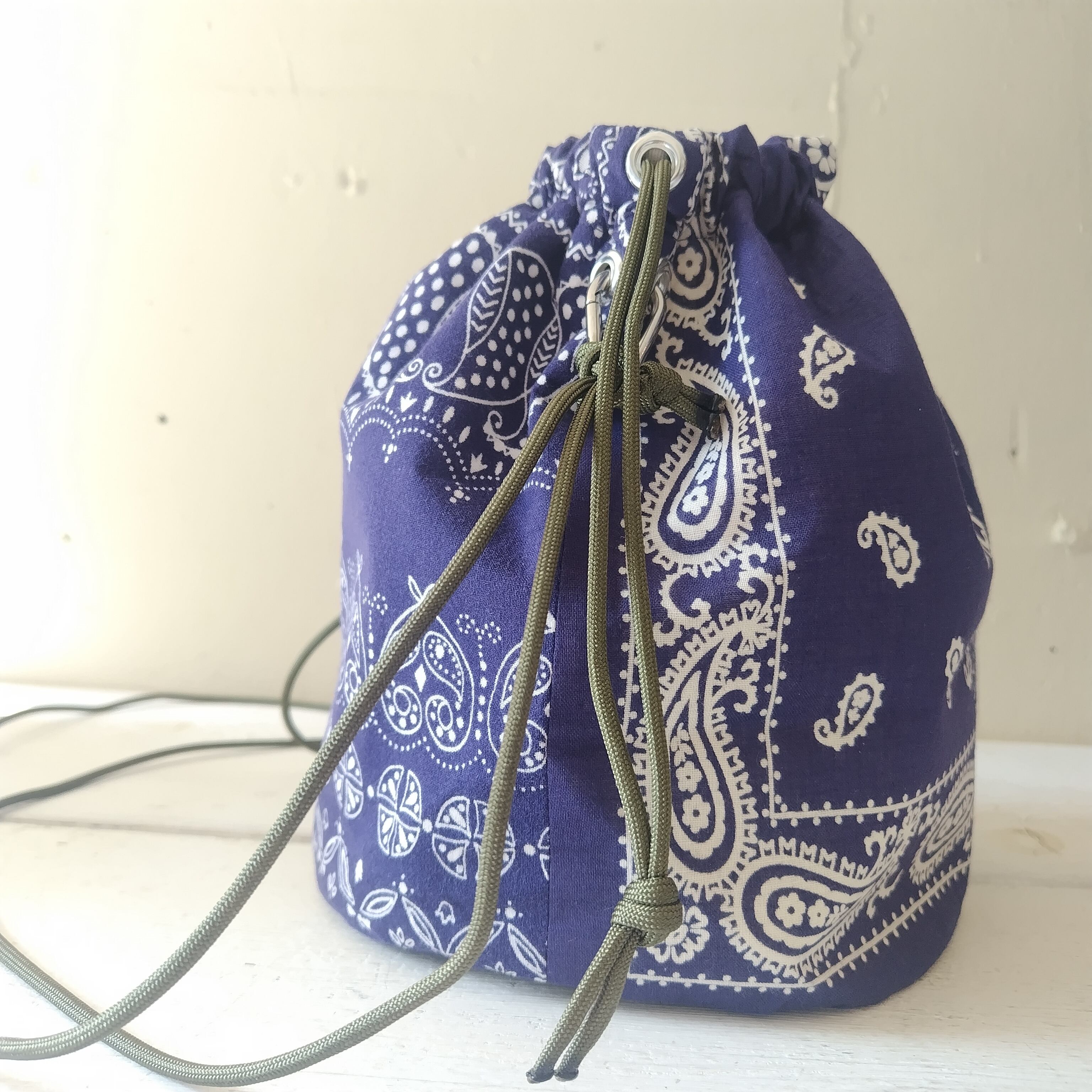 ラージサイズ ビンテージバンダナ リメイク巾着 2wayショルダーバッグ