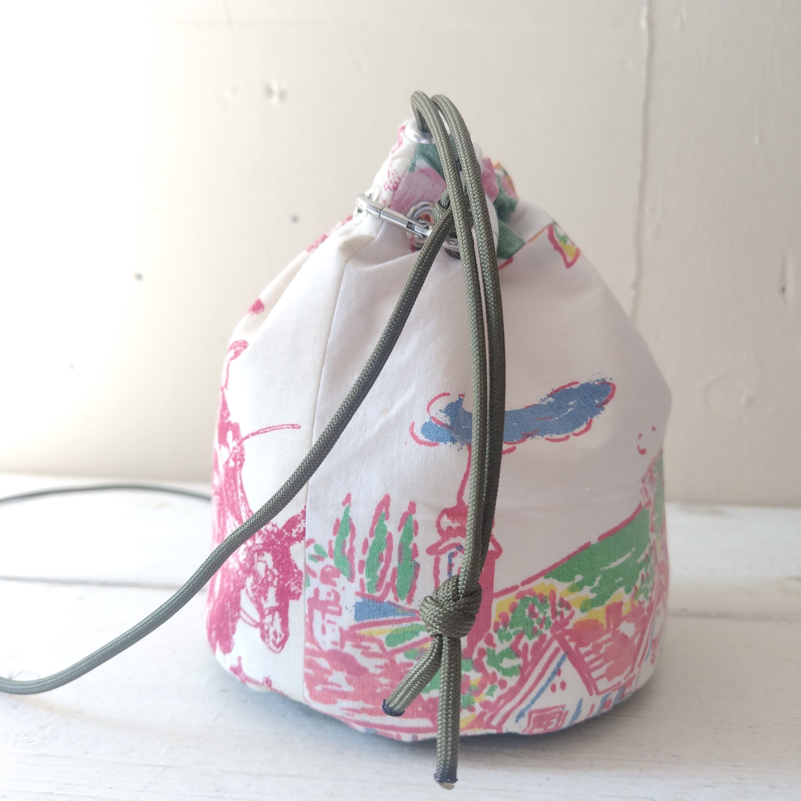 ビンテージバンダナ x ビンテージファブリック リメイク巾着 2wayショルダーバッグ