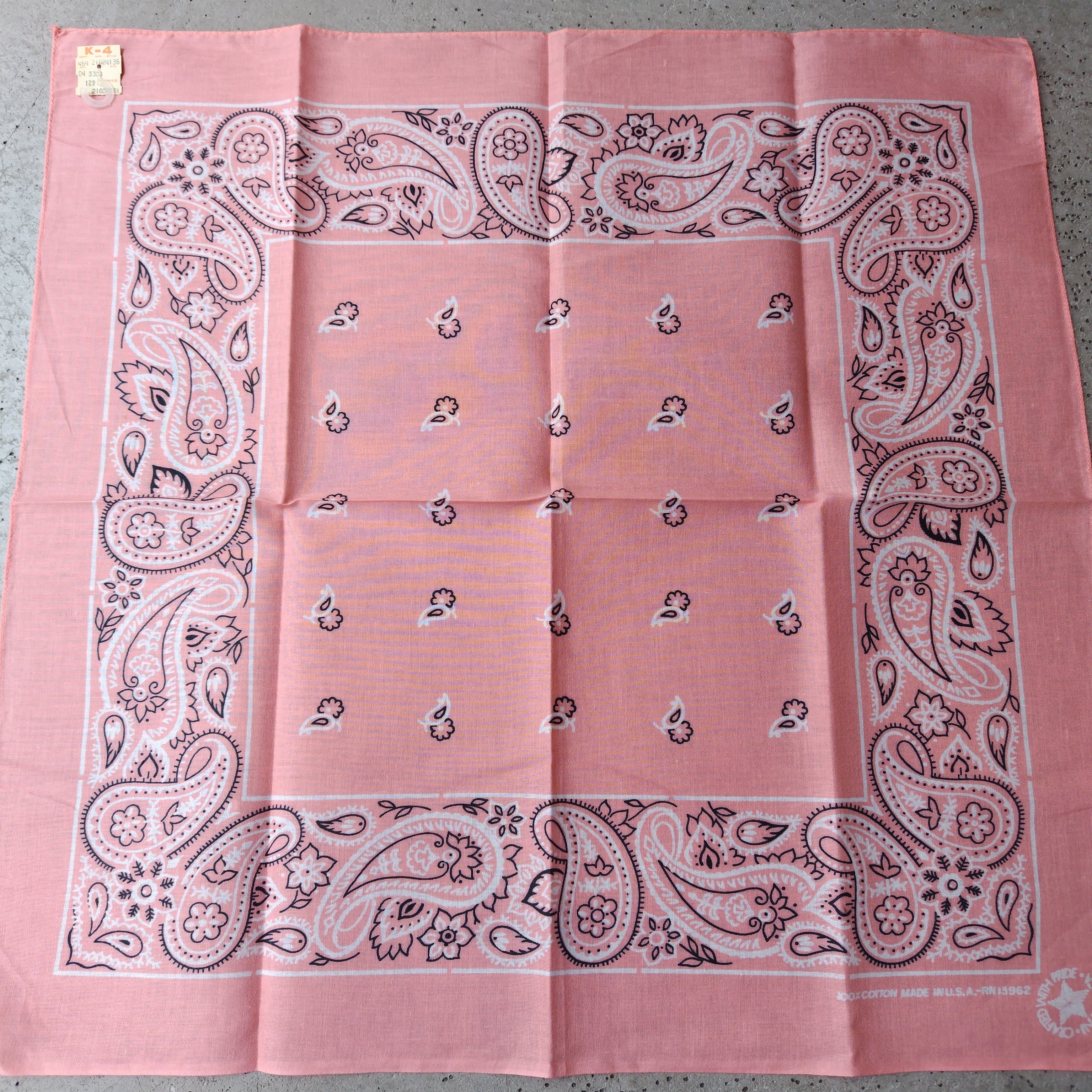 デッドストック 80s サーモンピンク 100% COTTON バンダナ