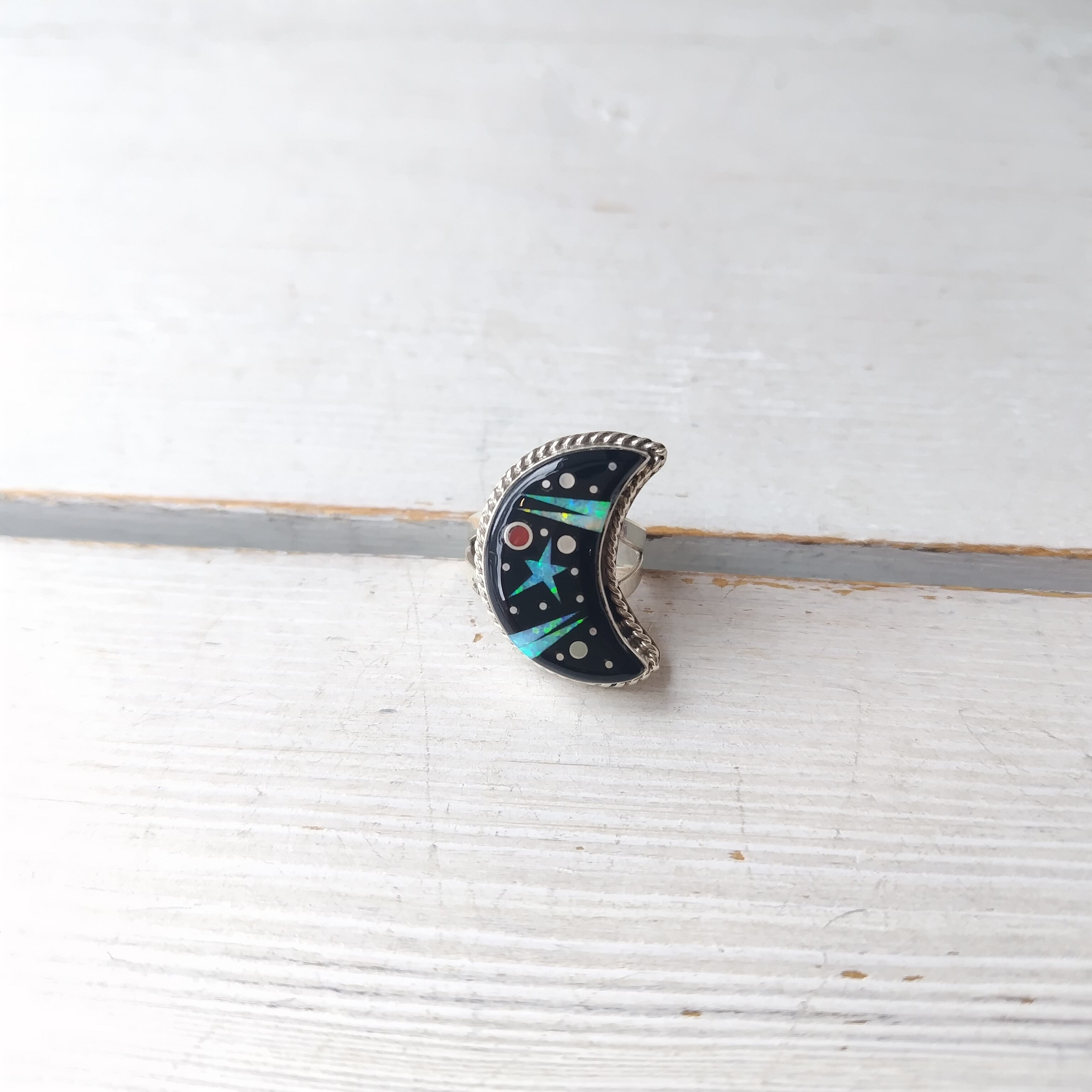 13号 ナバホ Matthew Jack インレイ シルバーリング インディアンジュエリー