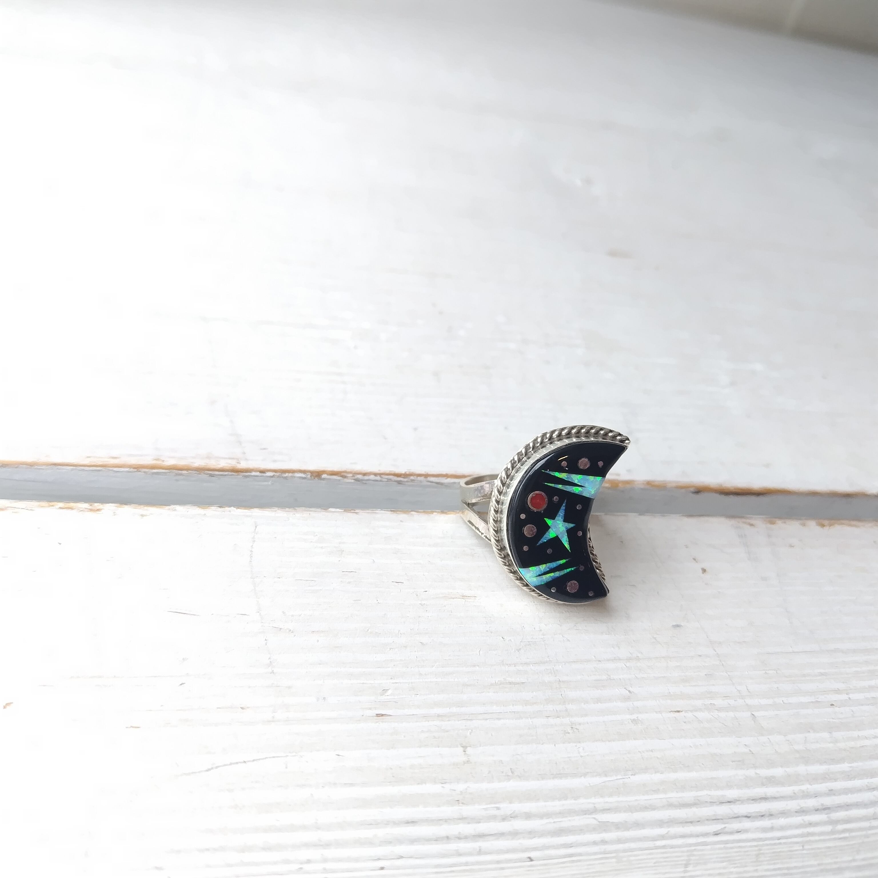 13号 ナバホ Matthew Jack インレイ シルバーリング インディアンジュエリー