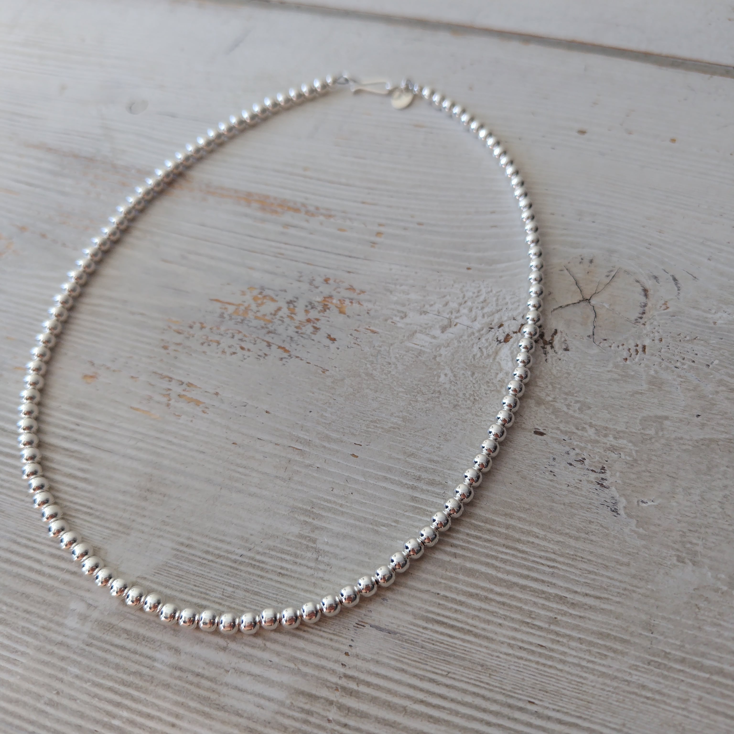 4mm玉 40cm ナバホパール シルバーネックレス インディアンジュエリー