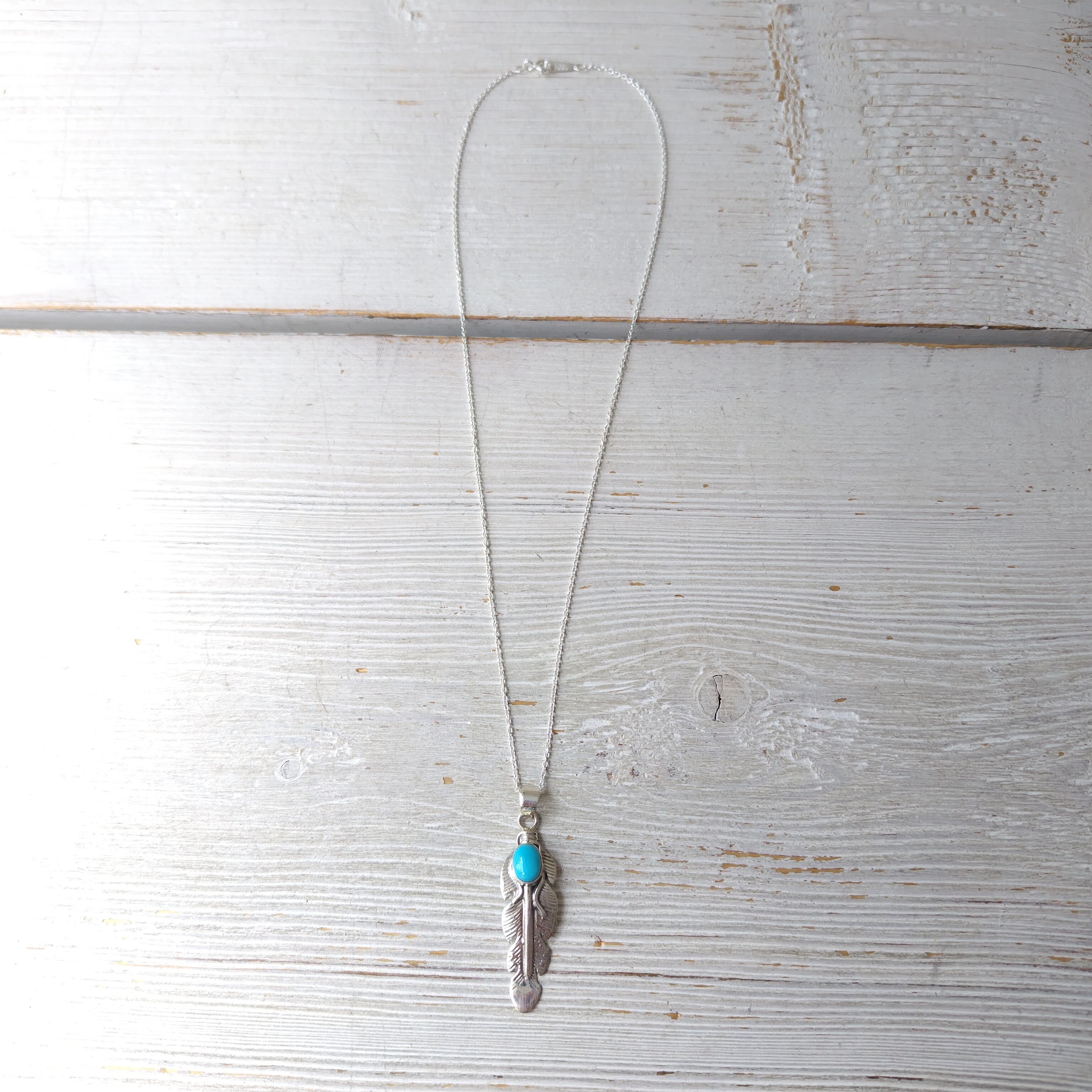 ナバホ June Defrito Sleeping Beauty Turquoise シルバー フェザーネックレス インディアンジュエリー