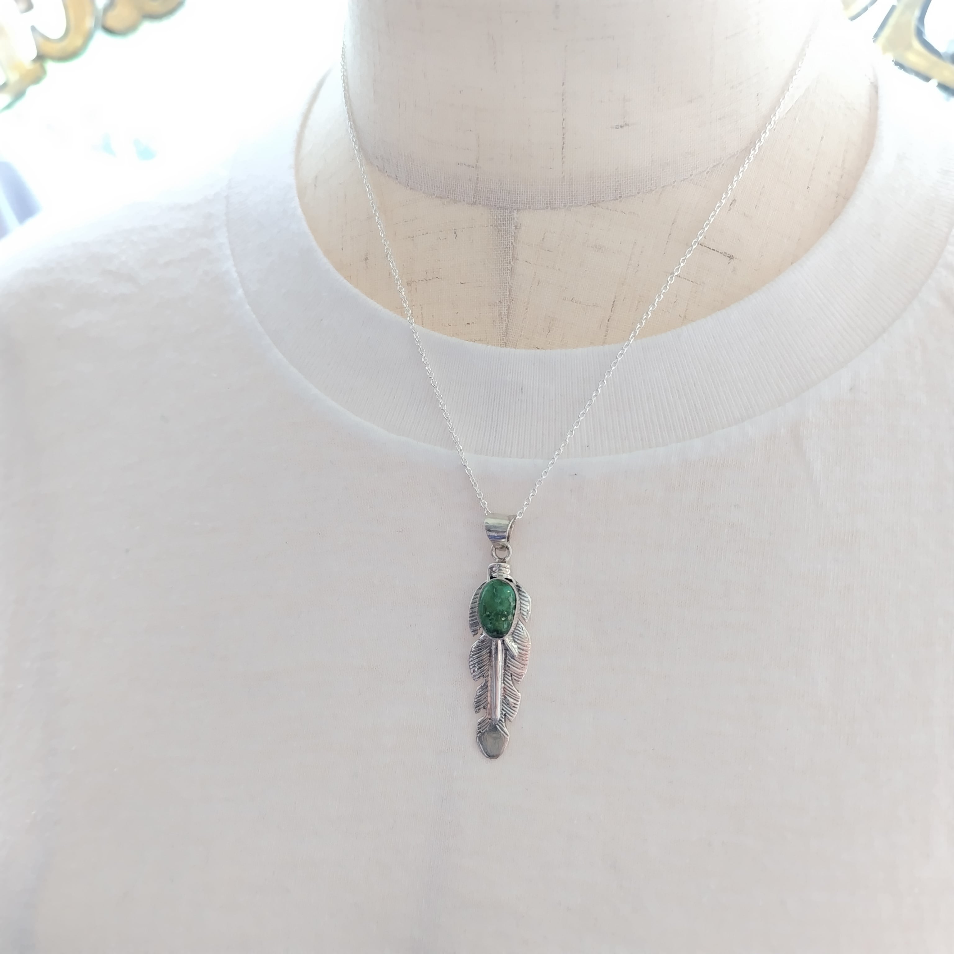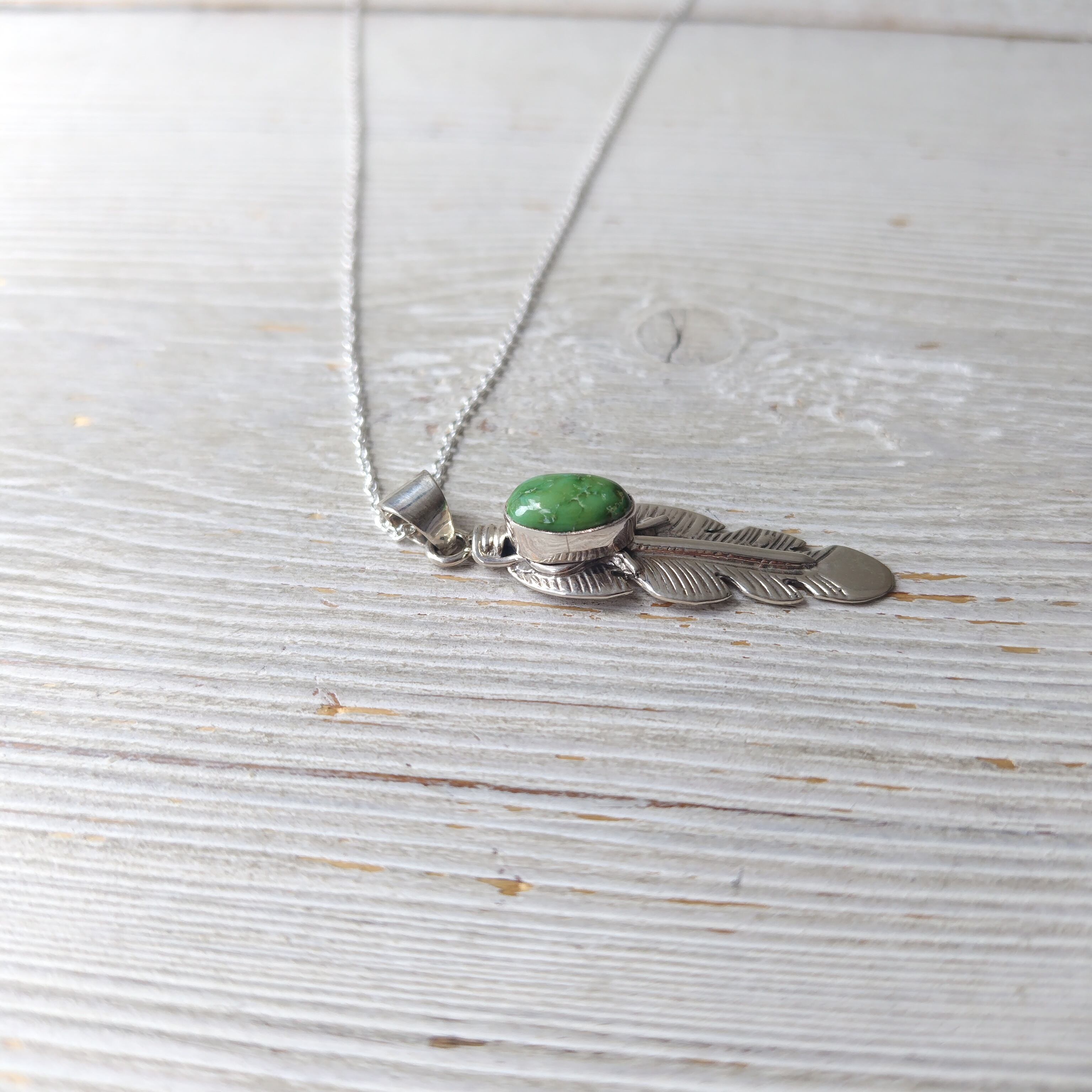 ナバホ June Defrito Sonorangold Turquoise シルバー フェザーネックレス インディアンジュエリー