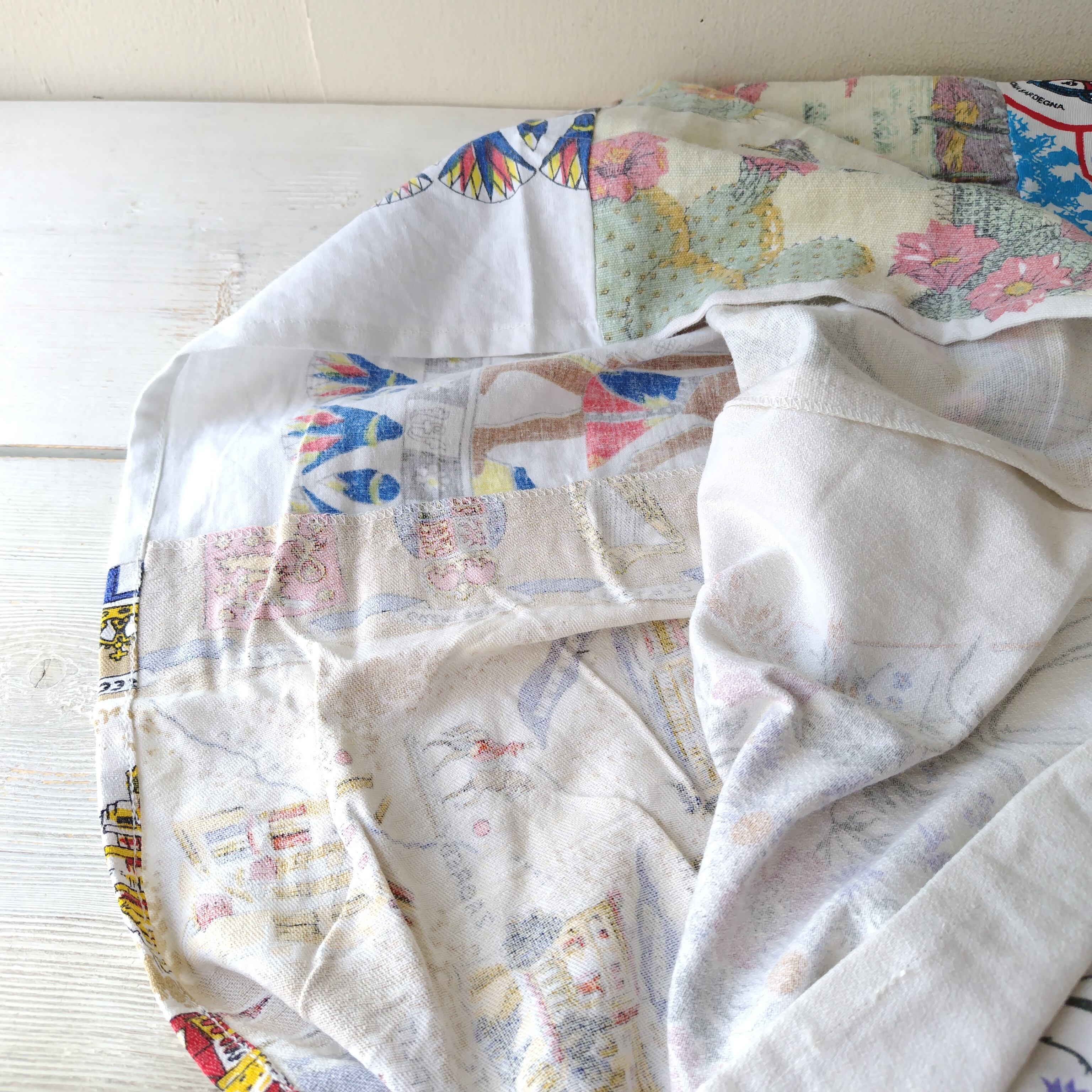 ユーズド、ビンテージの洗いこんだ生地のリメイクになります。