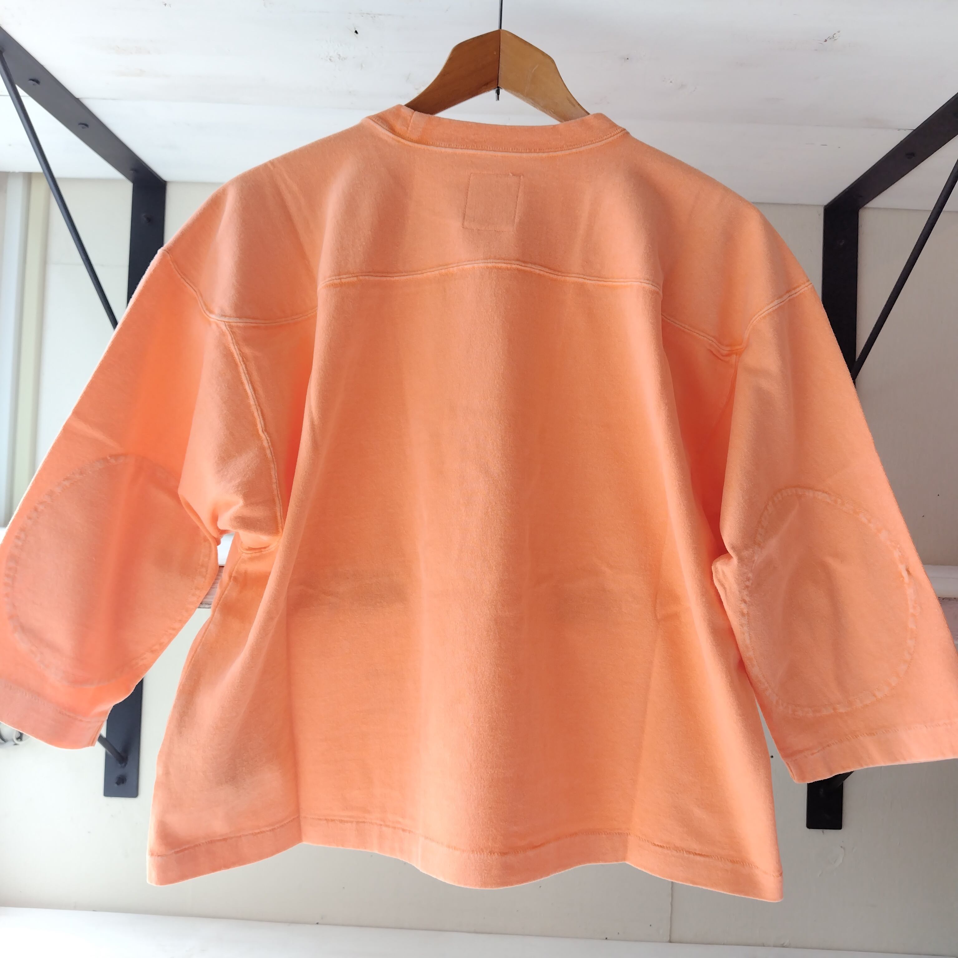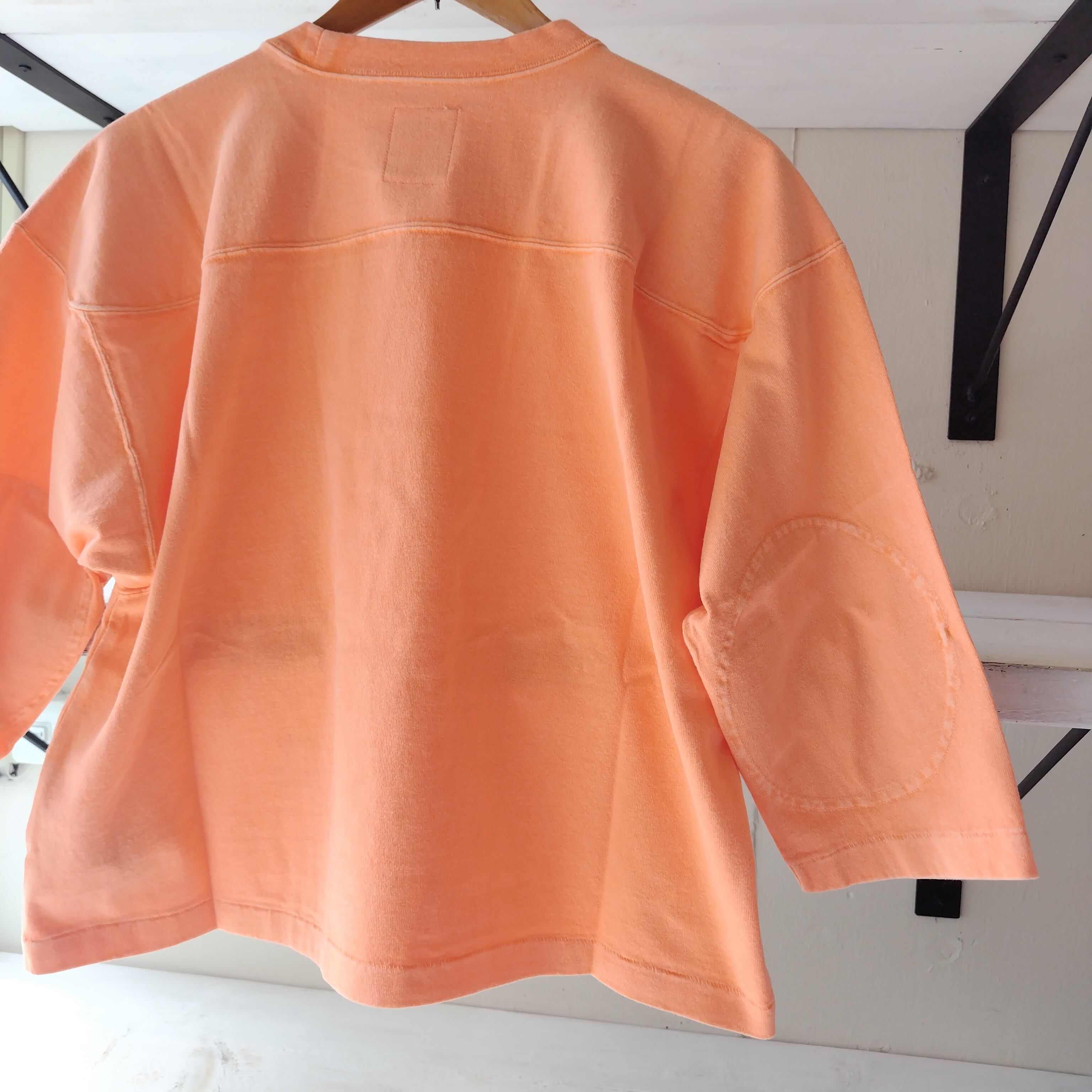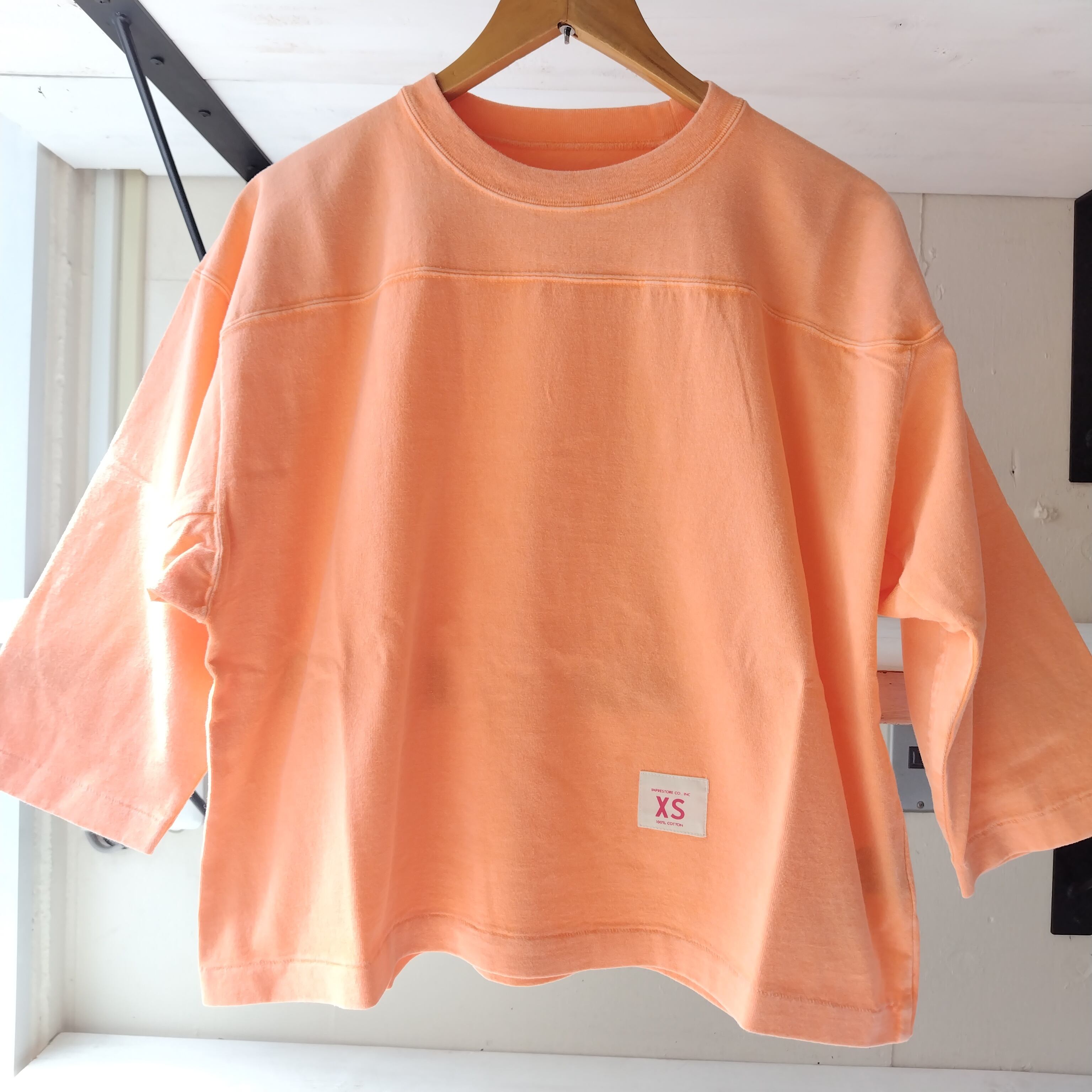 今回フットボールTシャツをサーモンオレンジにカラー別注させていただきました。