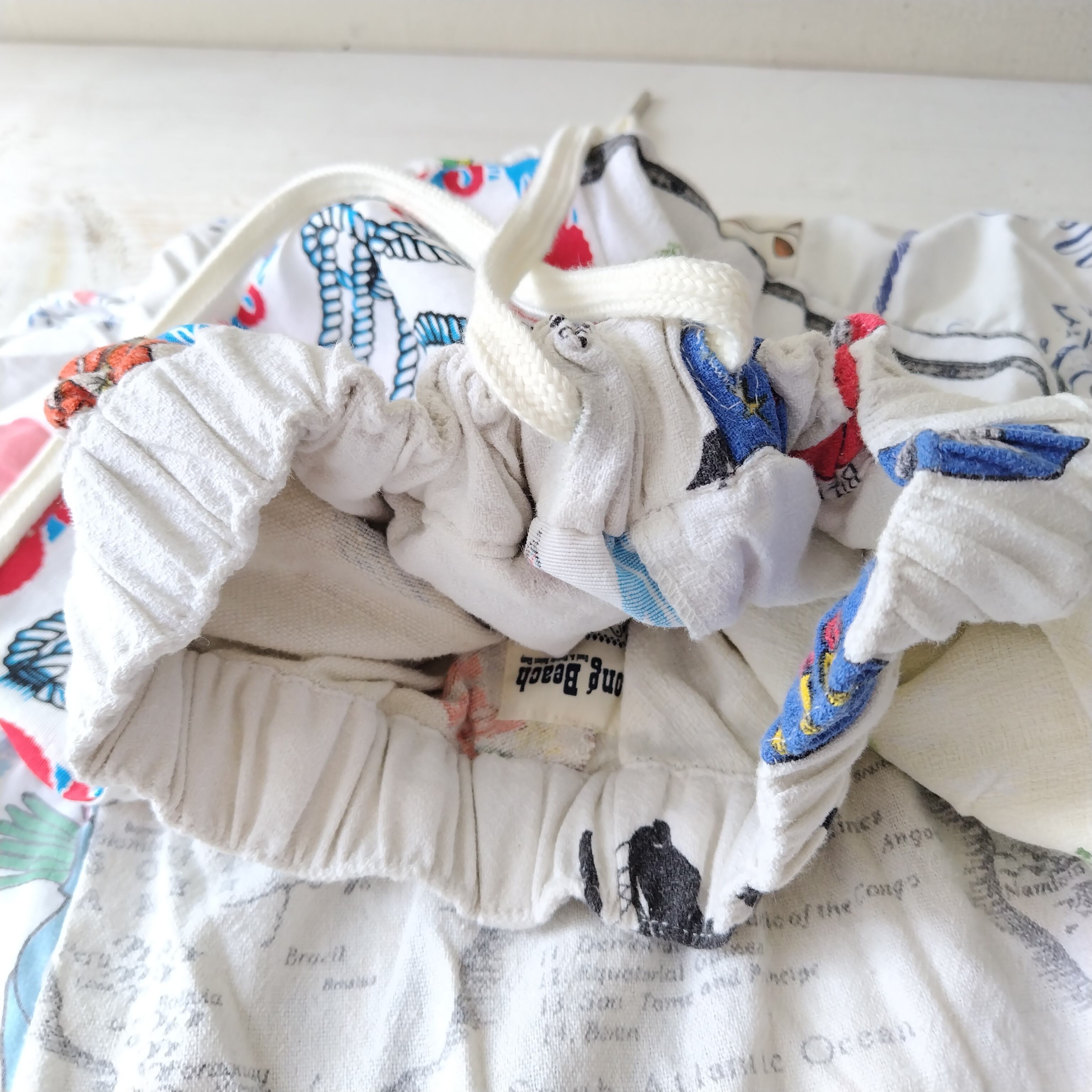 ユーズド、ビンテージの洗いこんだ生地のリメイクになります。