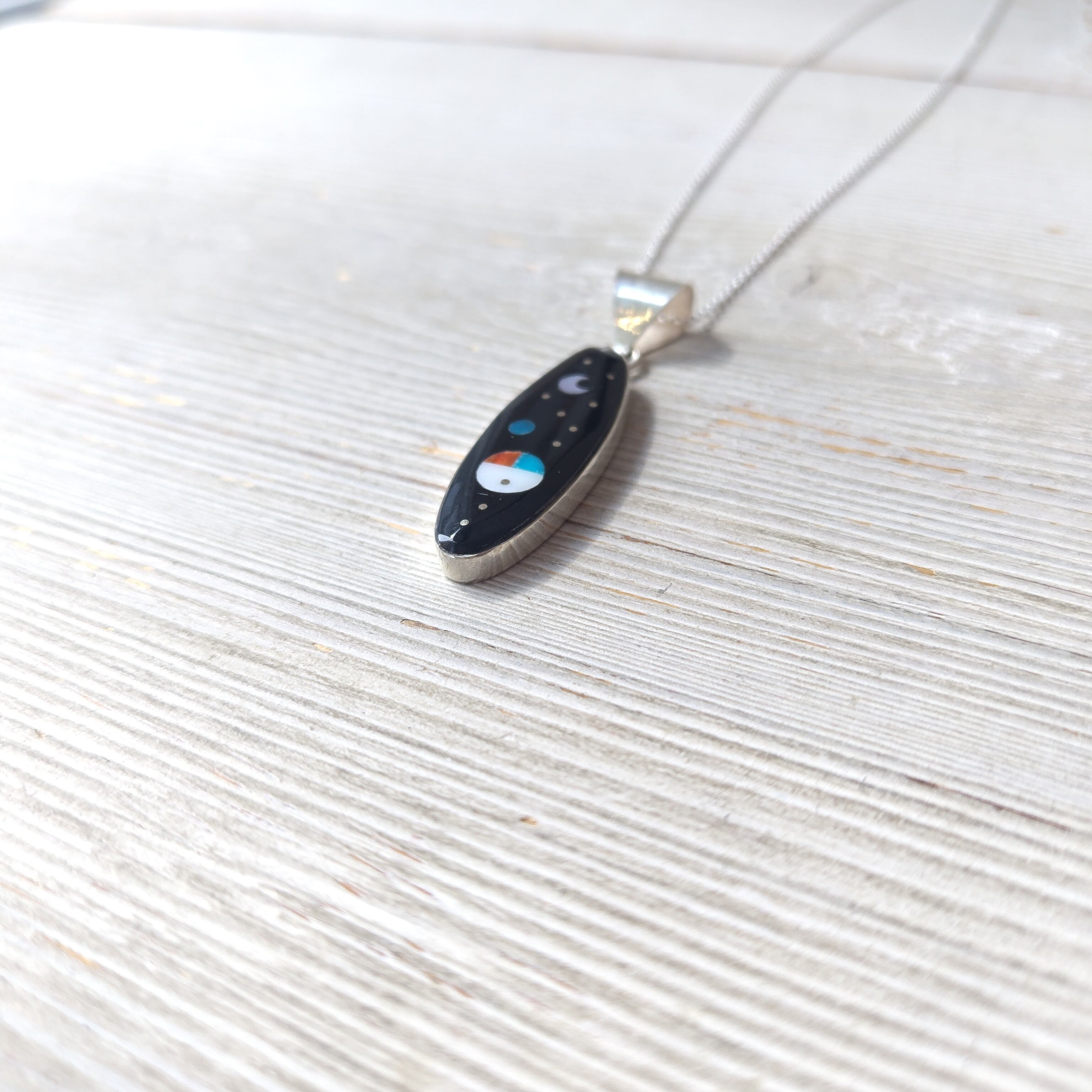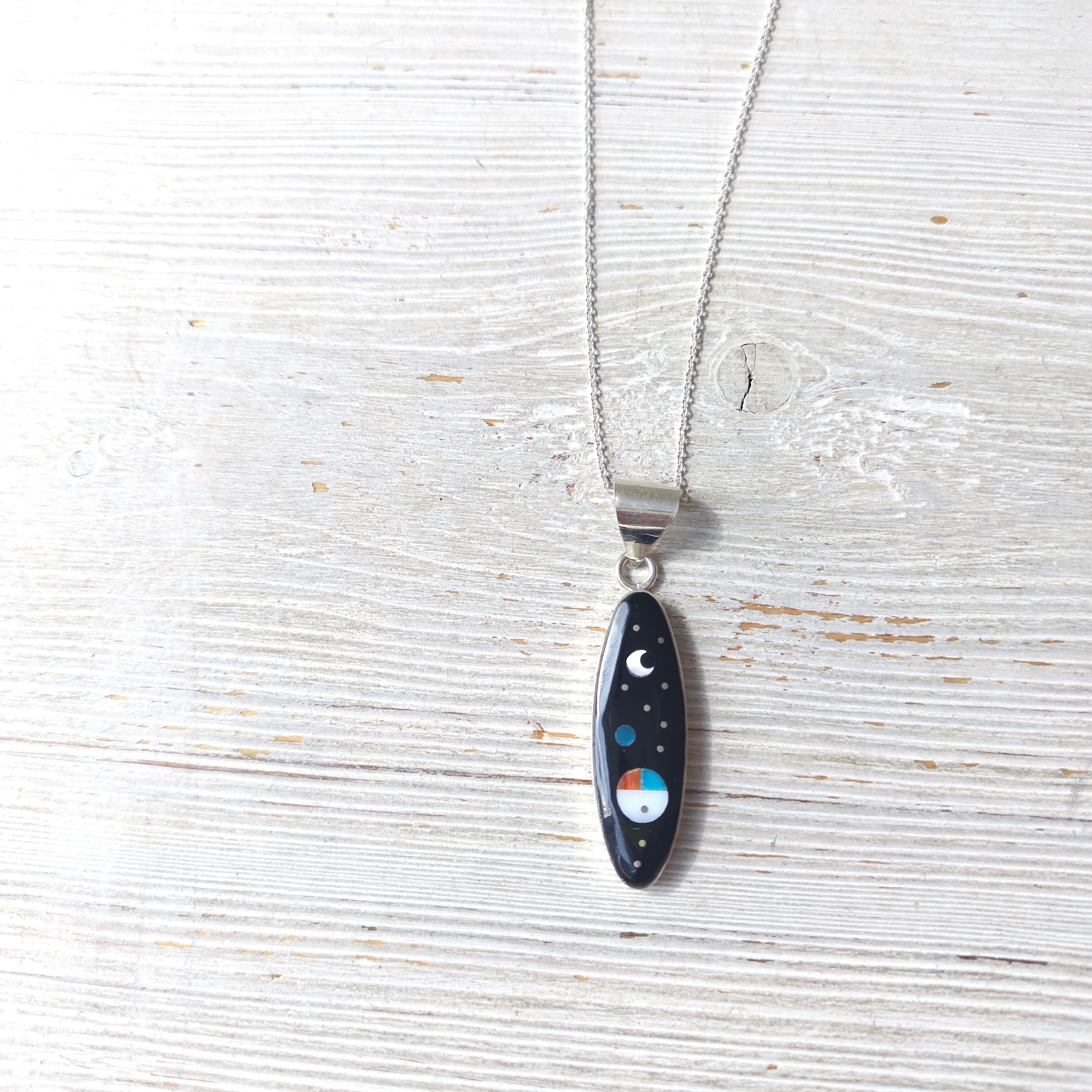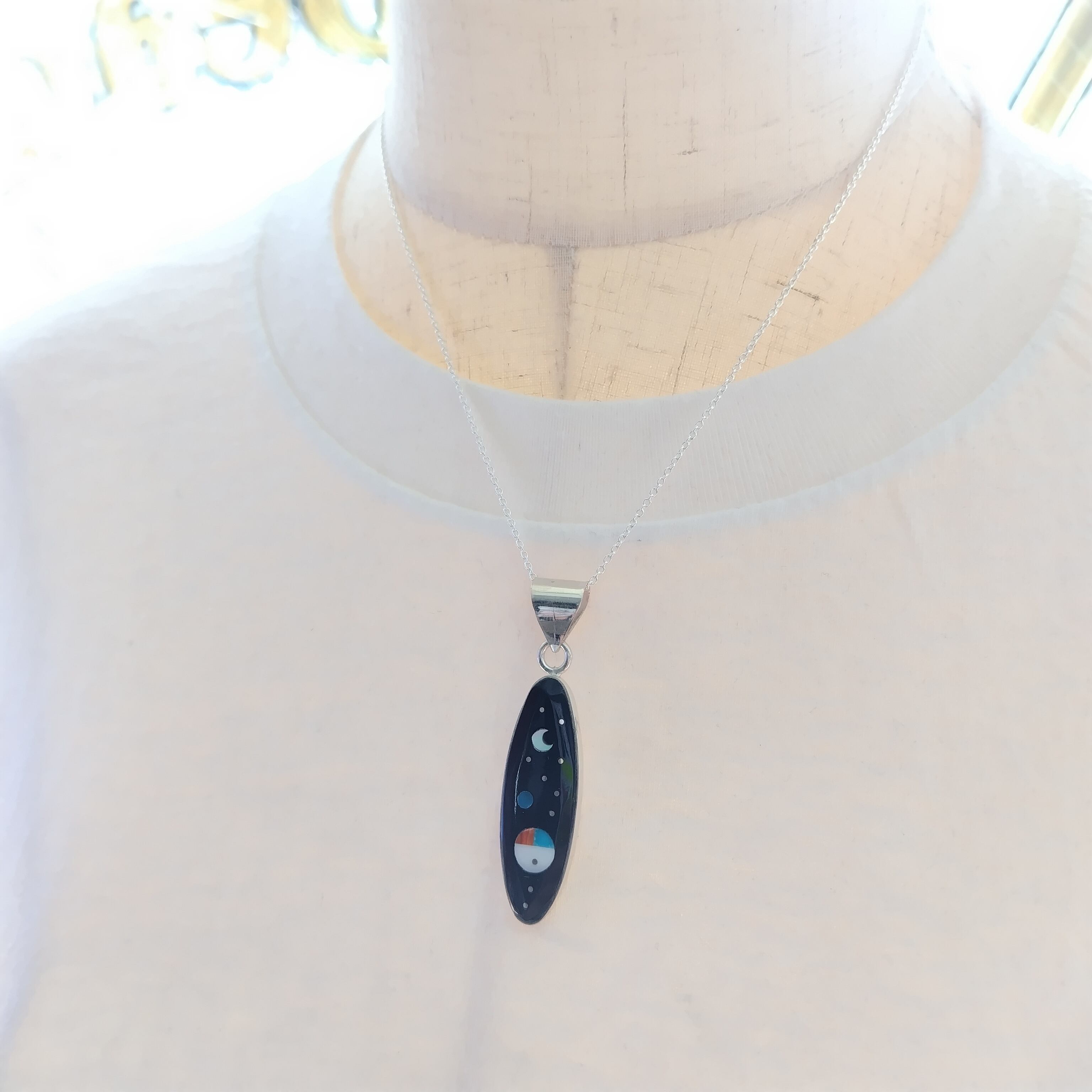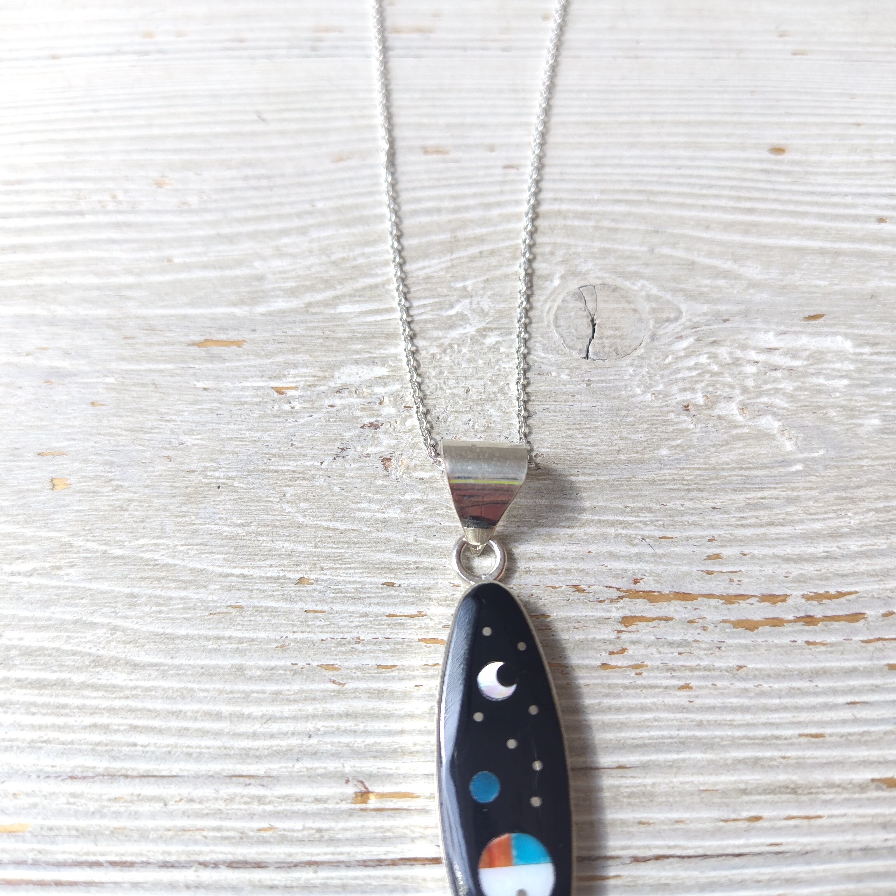ナバホ HAROLD SMITH インレイ シルバートップ 45cm シルバーチェーン付き インディアンジュエリー