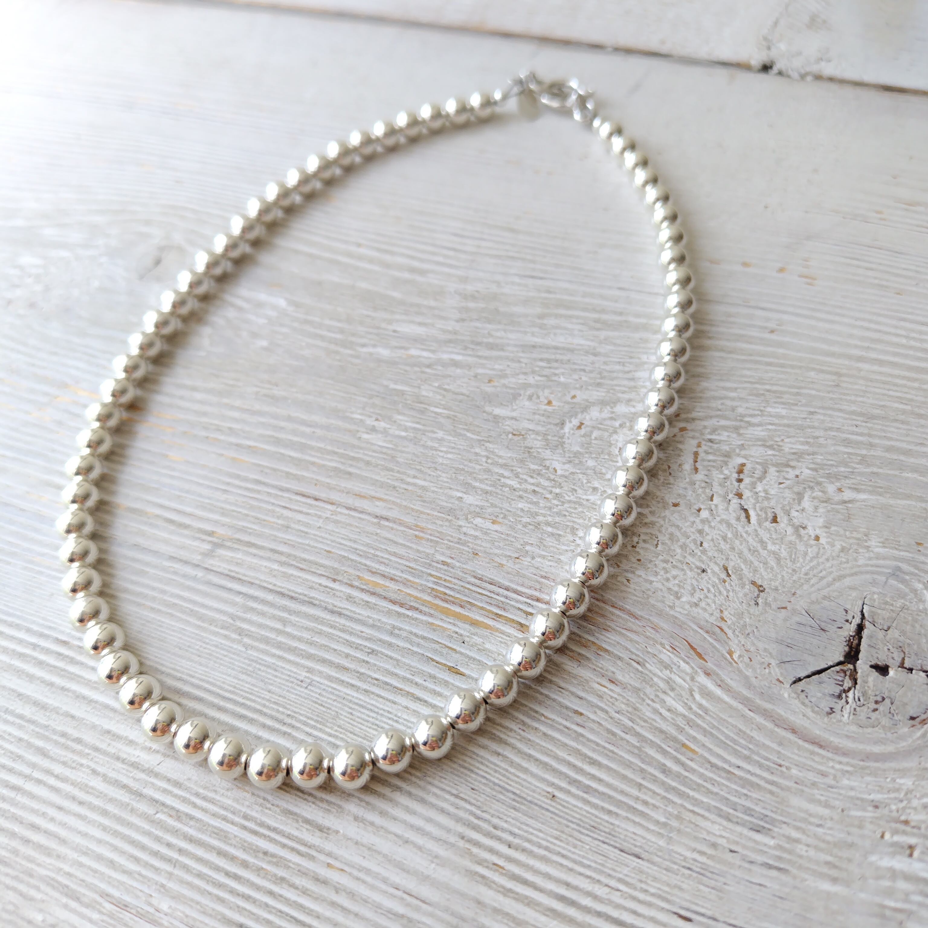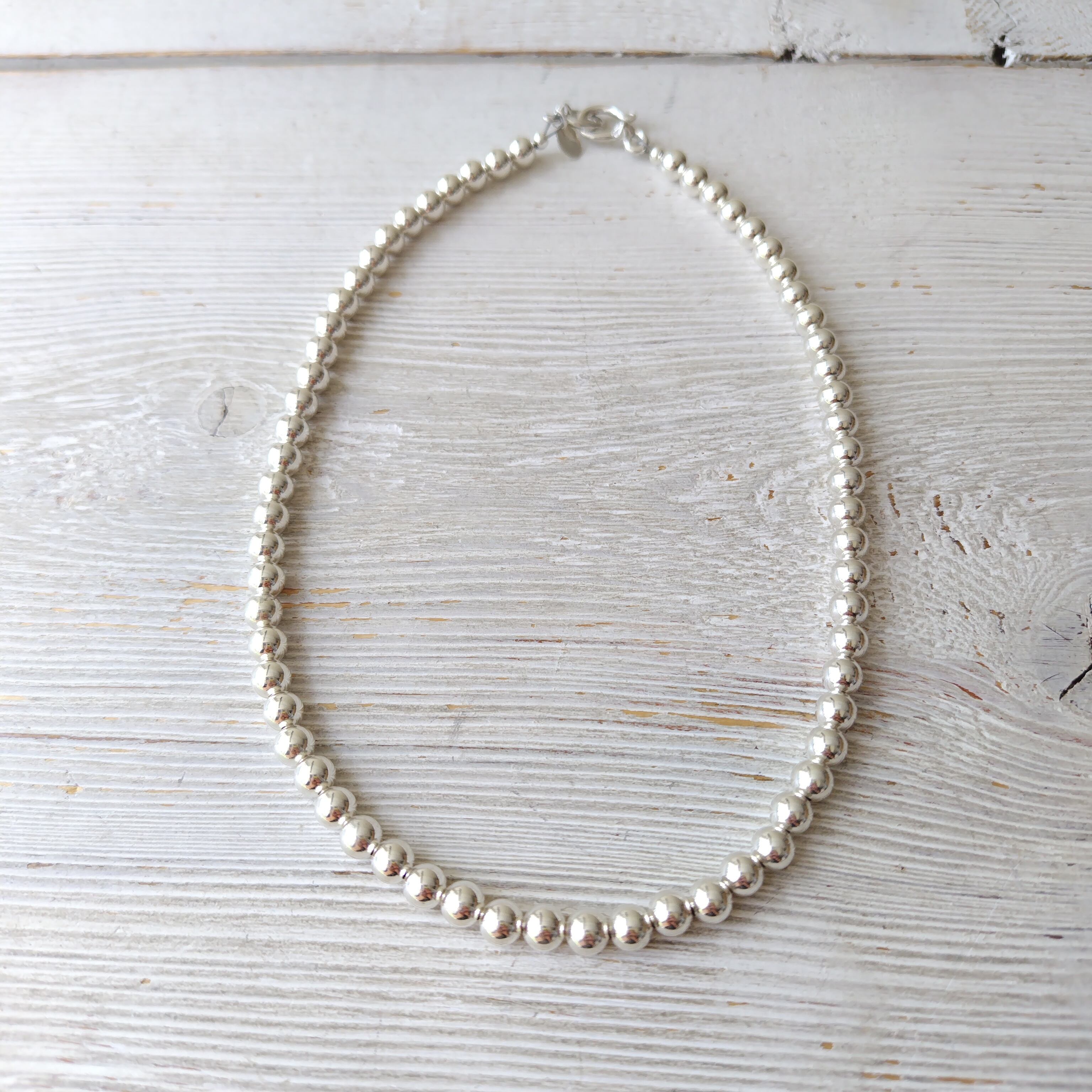 6mm玉 40cm ナバホパール シルバーネックレス インディアンジュエリー
