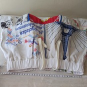ユーズド、ビンテージの洗いこんだ生地のリメイクになります。
