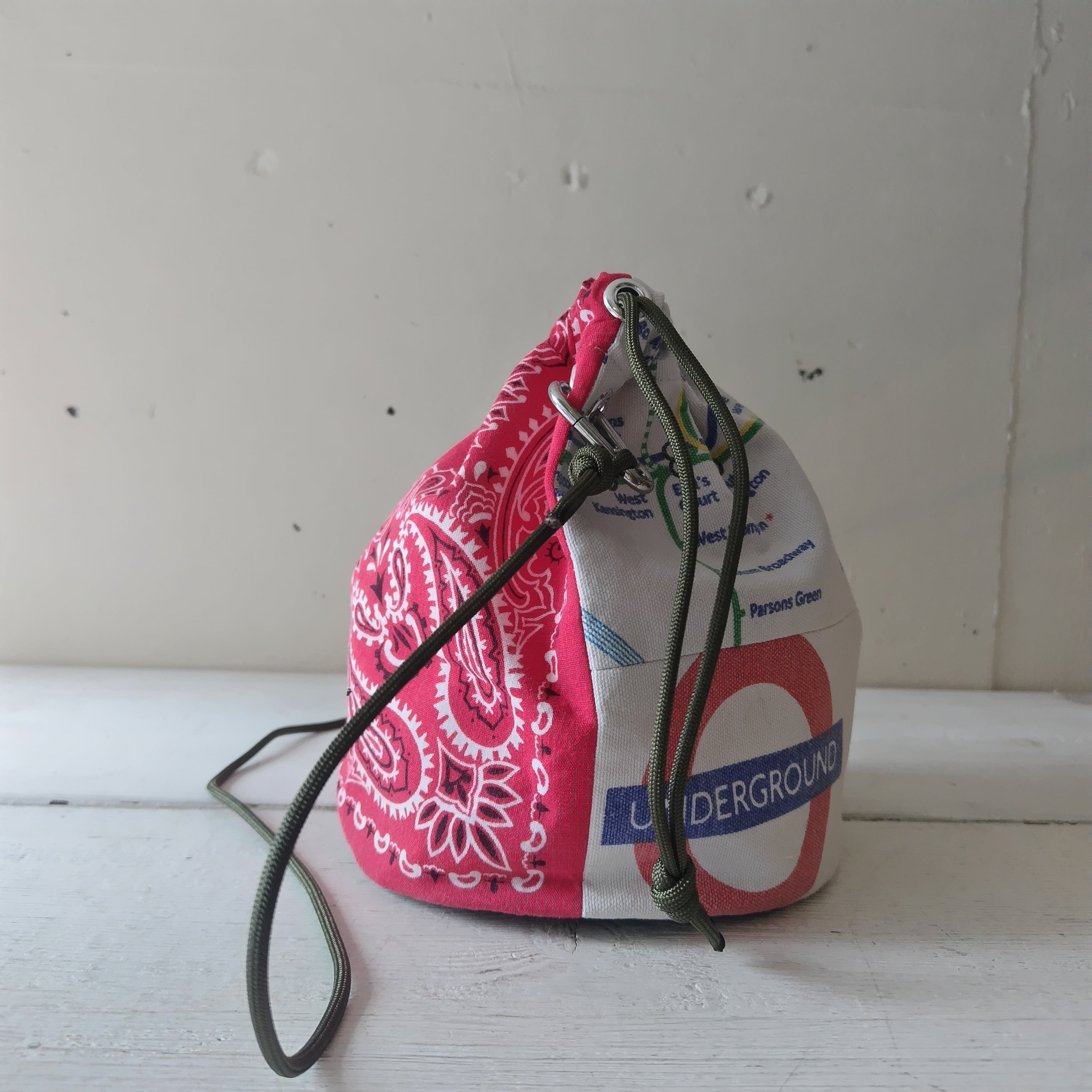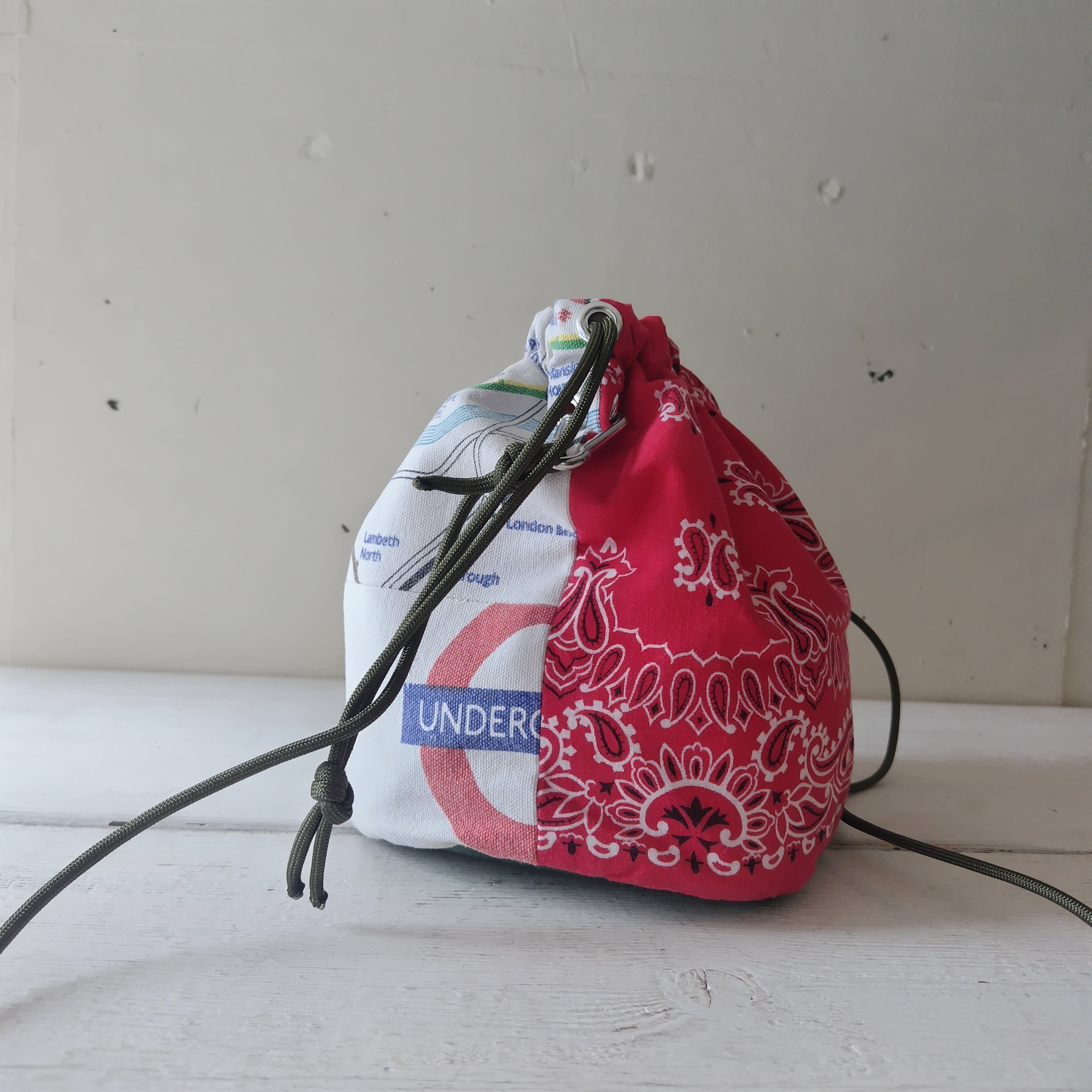 バンダナ x パッチワーク リメイク巾着 2wayショルダーバッグ