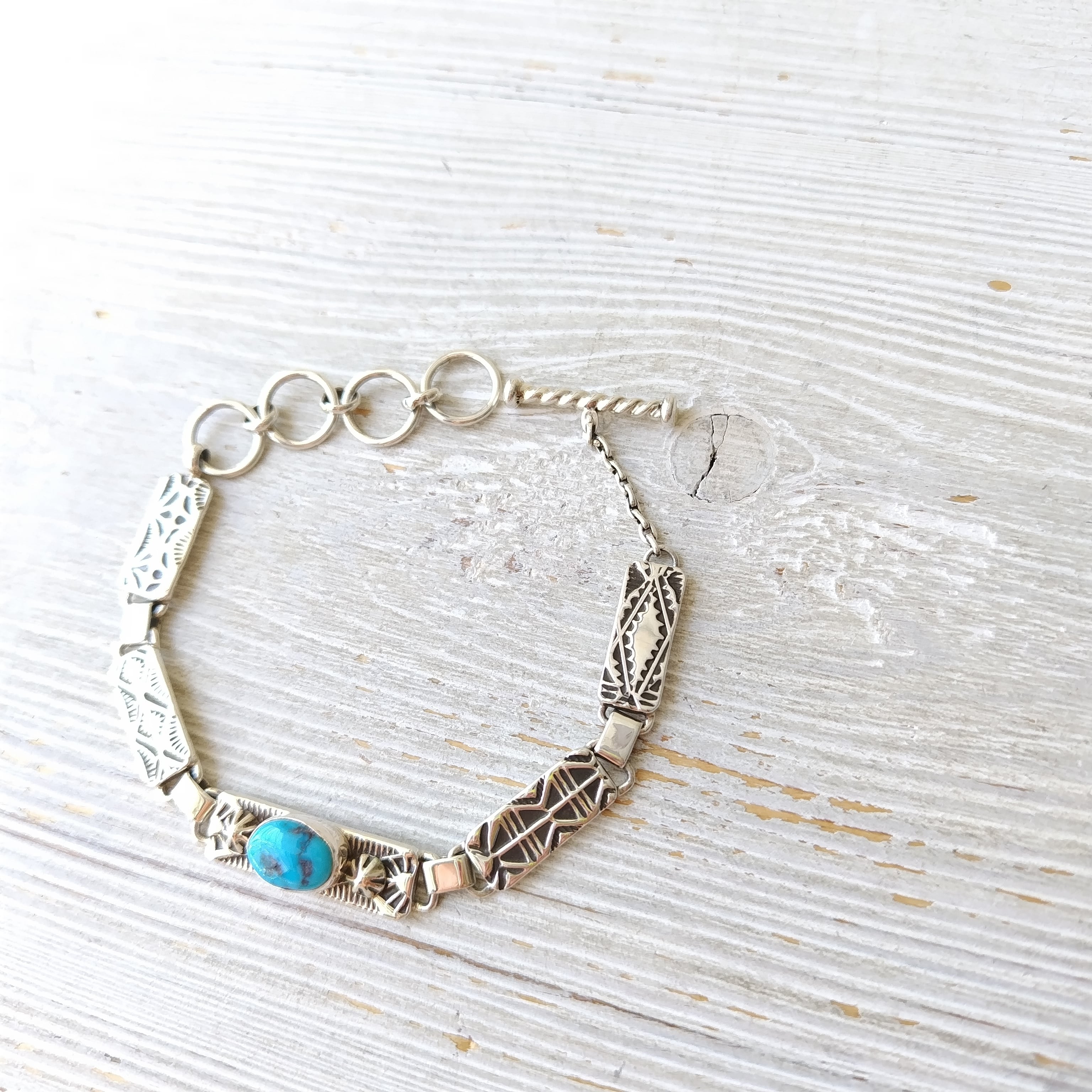 15cm〜18cm ナバホ Henry Mariano Tyrone Turquoise シルバーブレスレット インディアンジュエリー