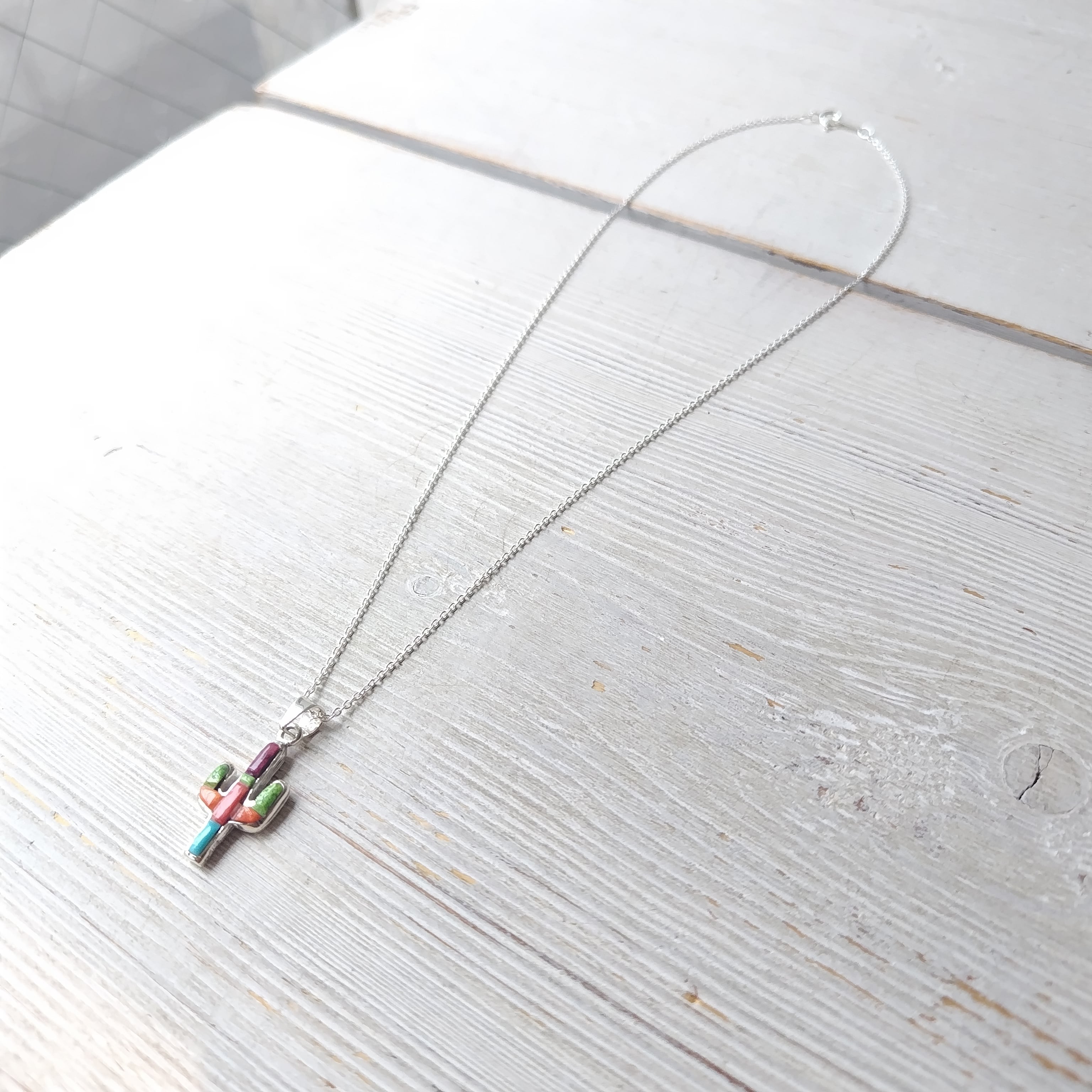 ナバホ Albert Tapaha マルチストーン シルバートップ 45cm シルバーチェーン付き インディアンジュエリー