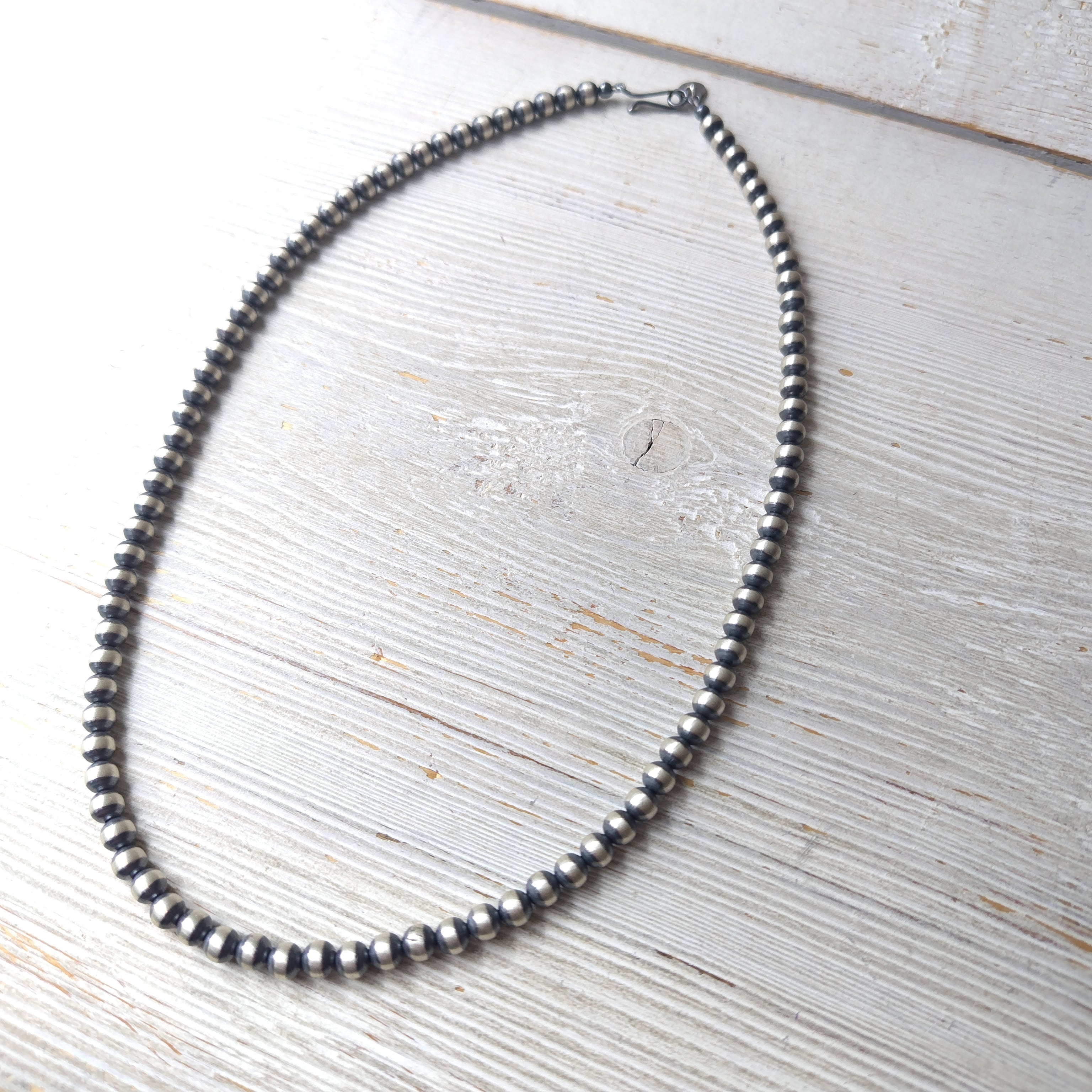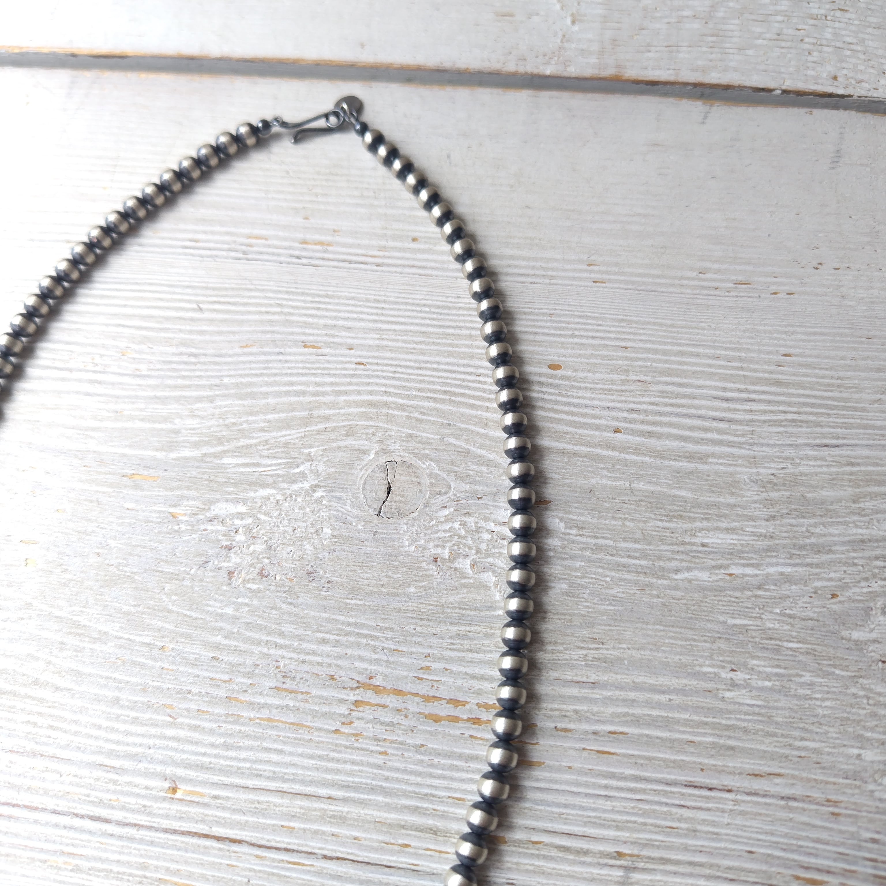 シャイニー x 燻 5mm玉 45cm ナバホパール シルバーネックレス インディアンジュエリー