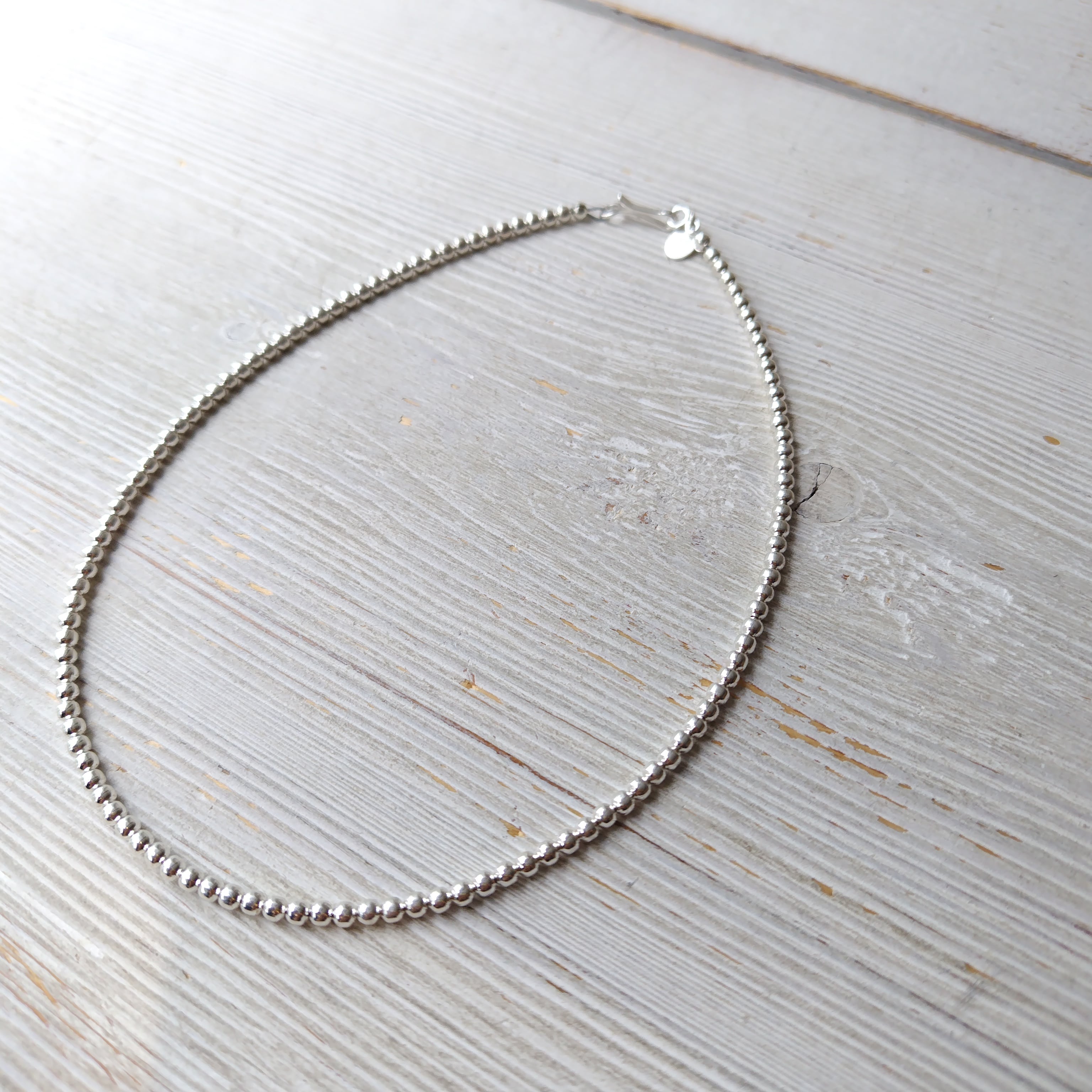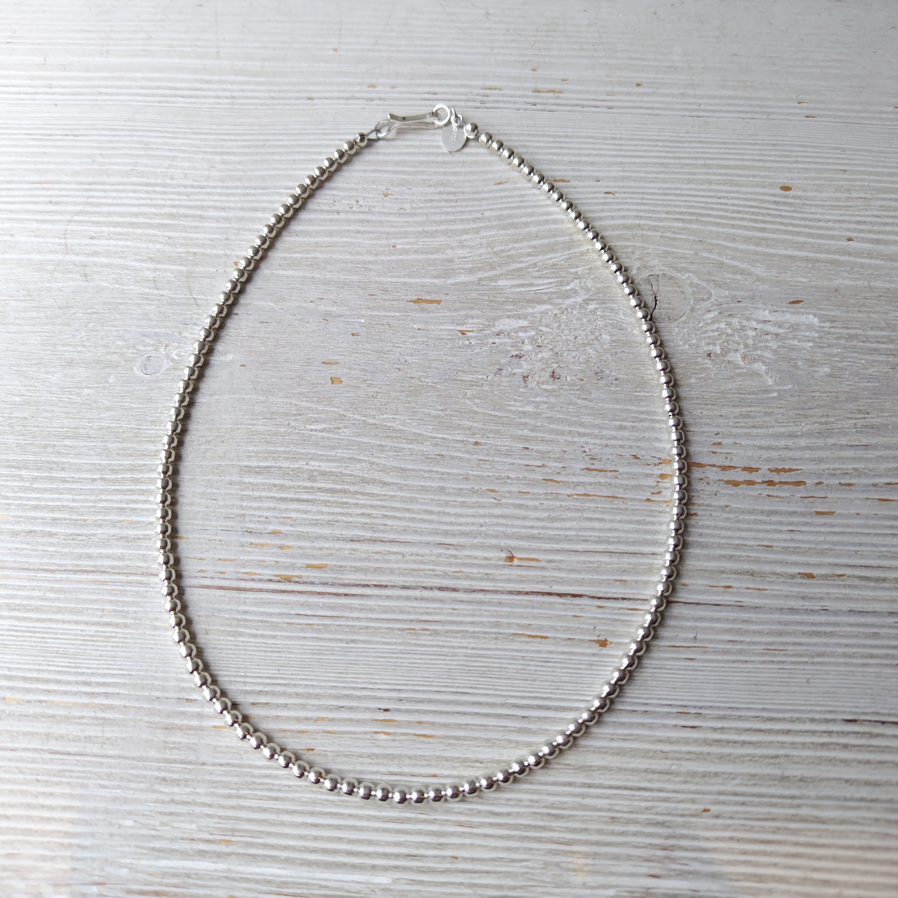 3mm玉 35cm ナバホパール シルバーネックレス インディアンジュエリー
