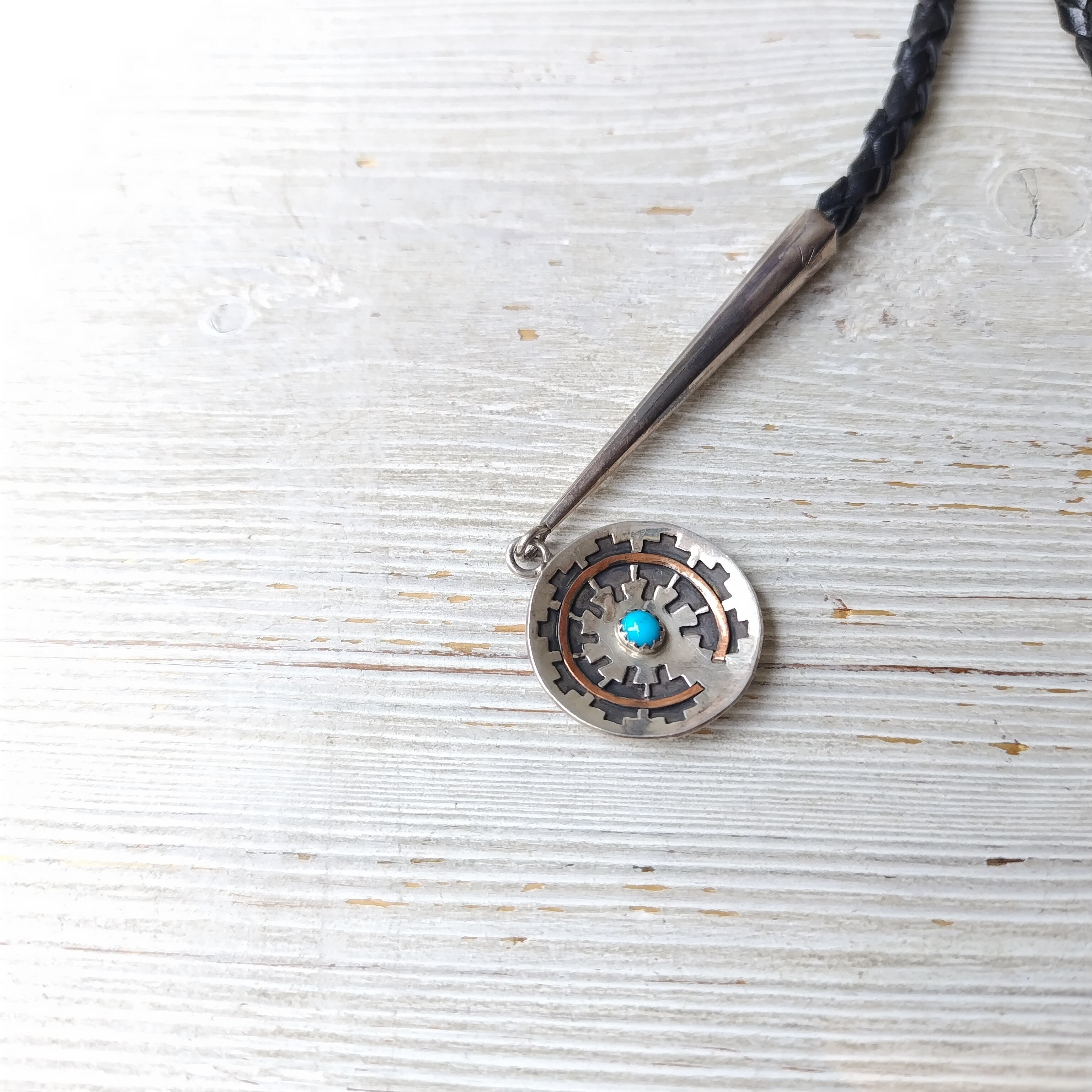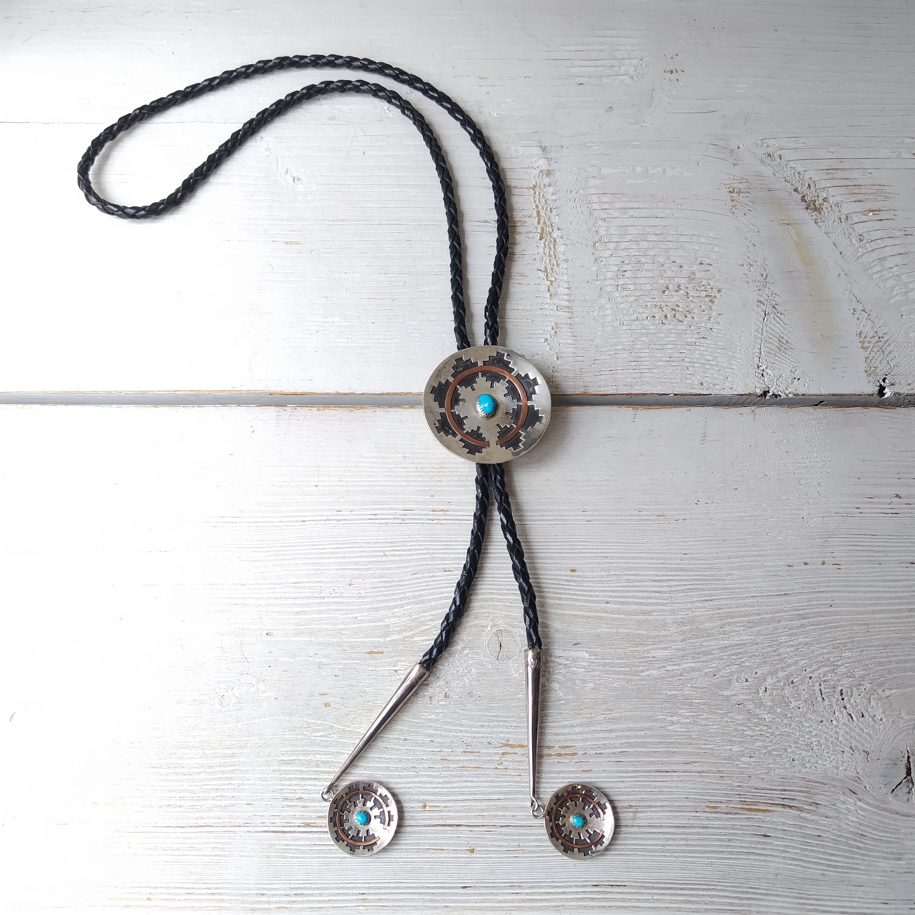 70s ビンテージ ターコイズ シルバートップ ボロタイ インディアンジュエリー