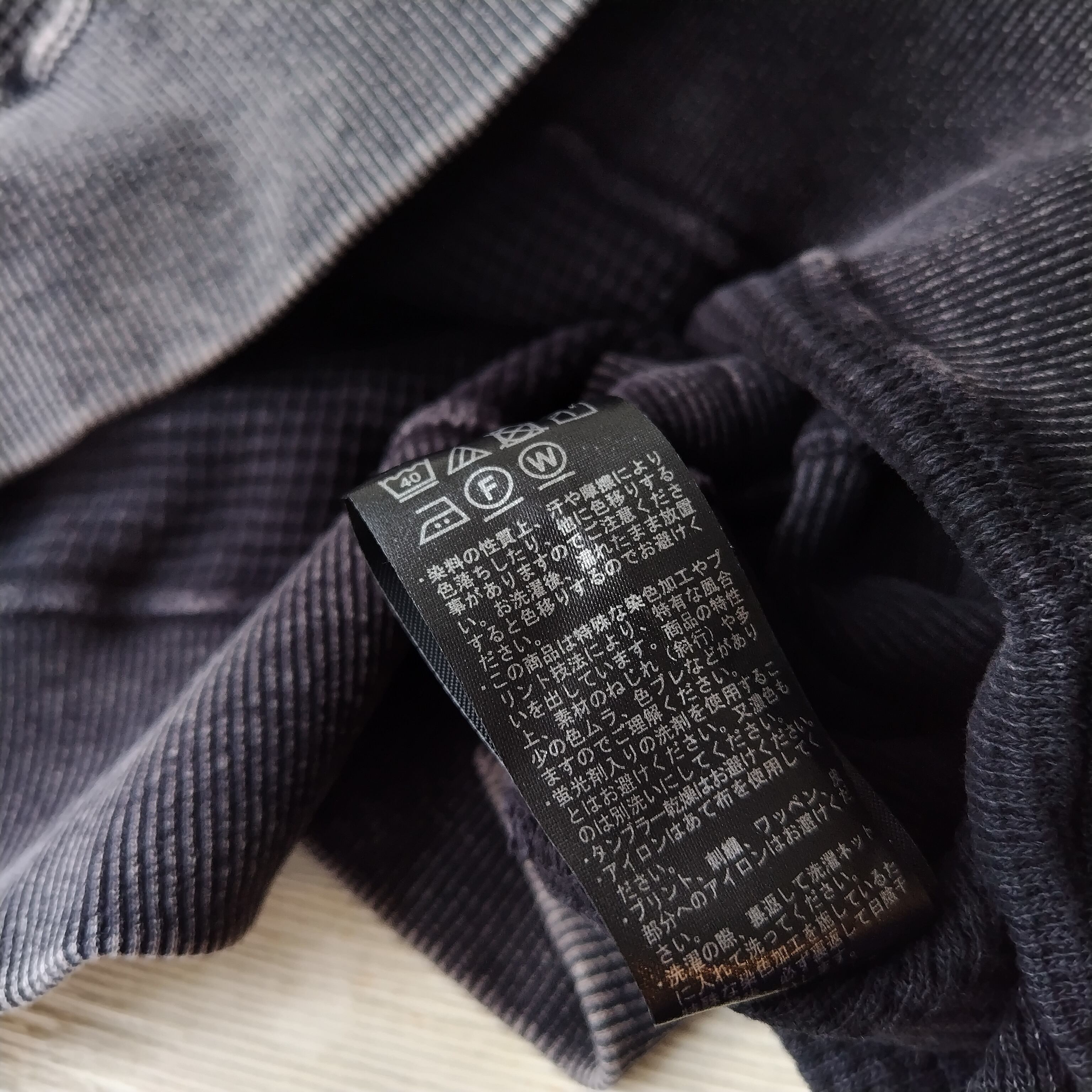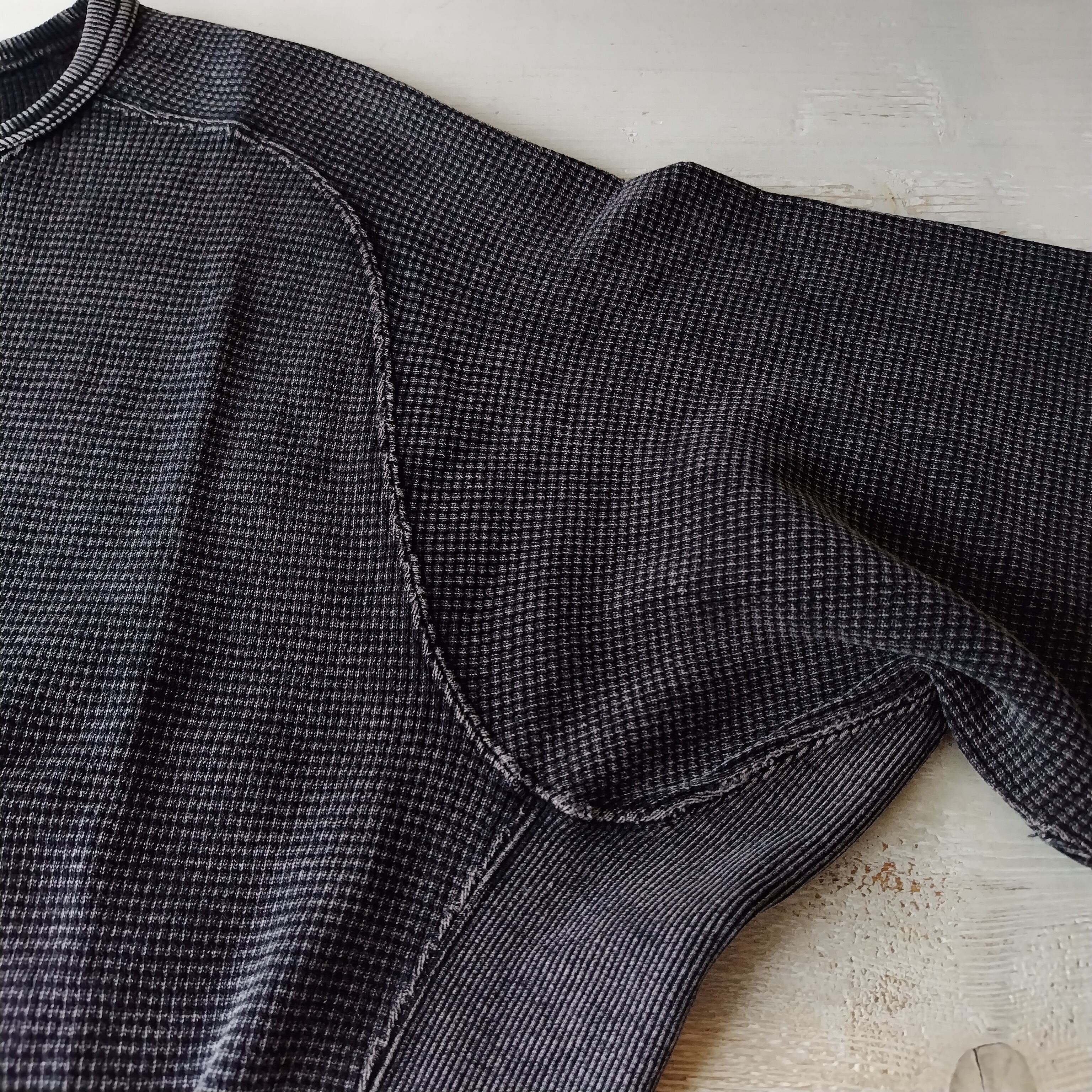 この染料を導入した結果、リアルな褪せ感とビンテージのディティールと古着で希少な素材感に1枚で着るのに嬉しい緩めのサイジングがドンピシャに融合して、ありそうで無いサーマルロンTが完成しました。