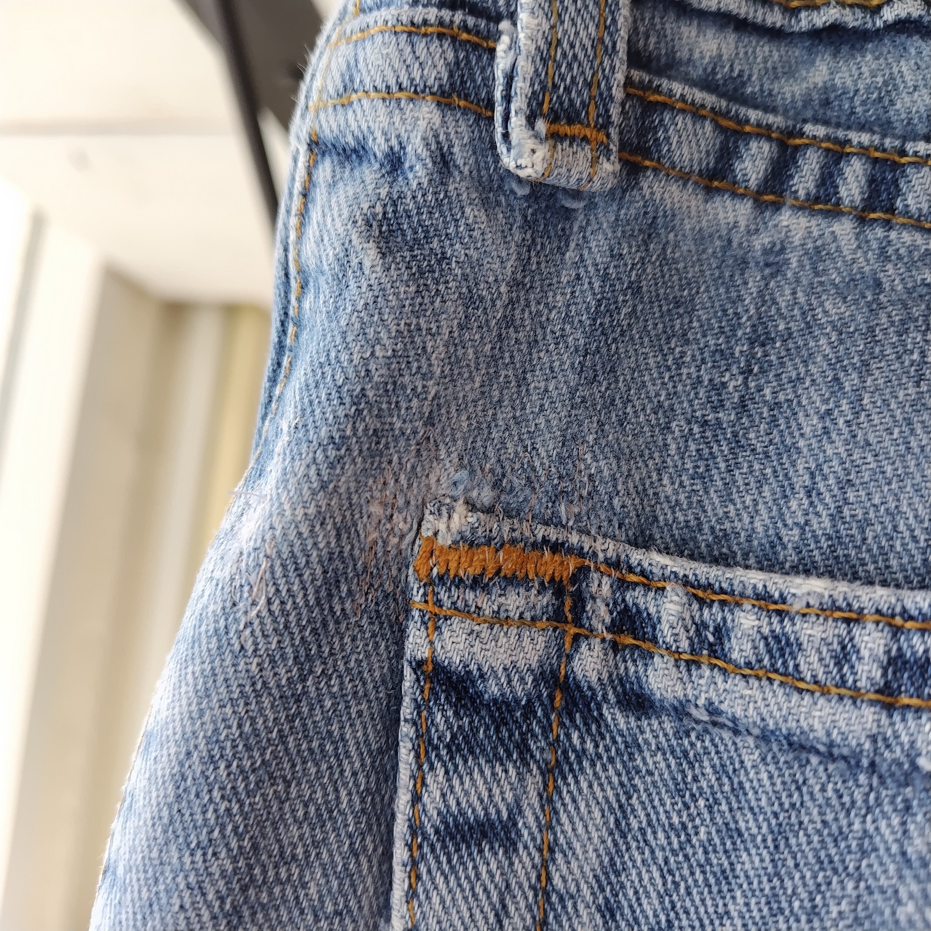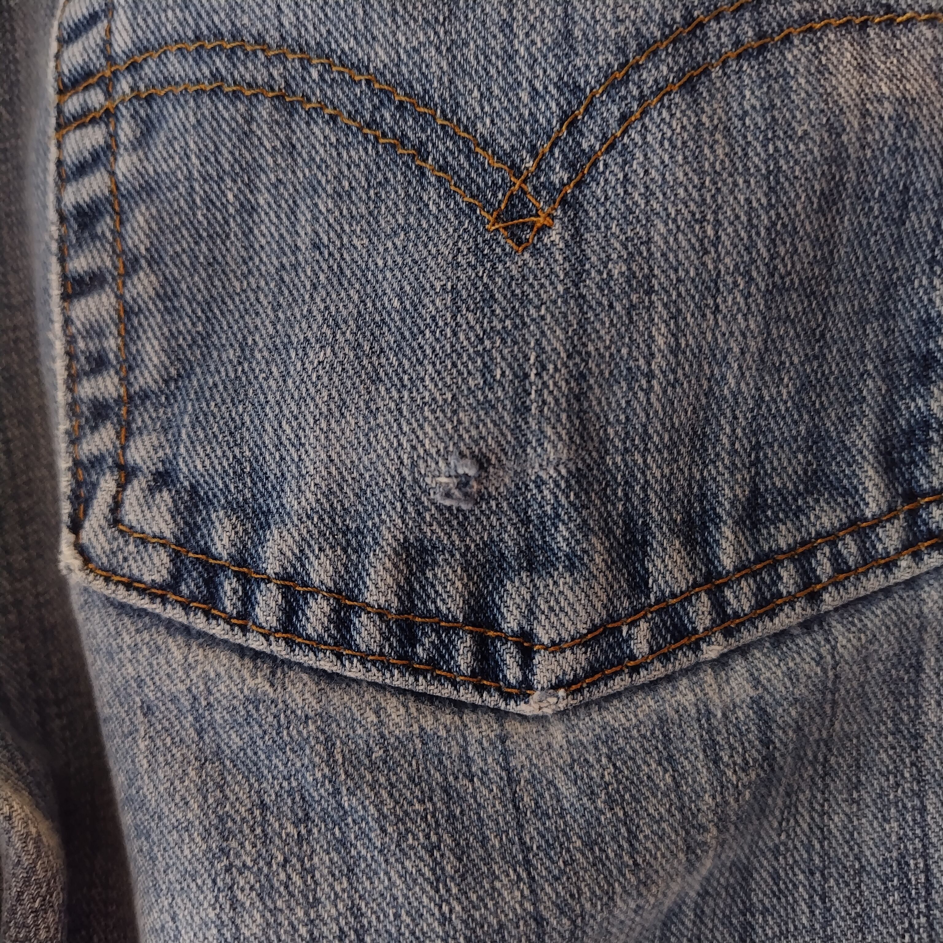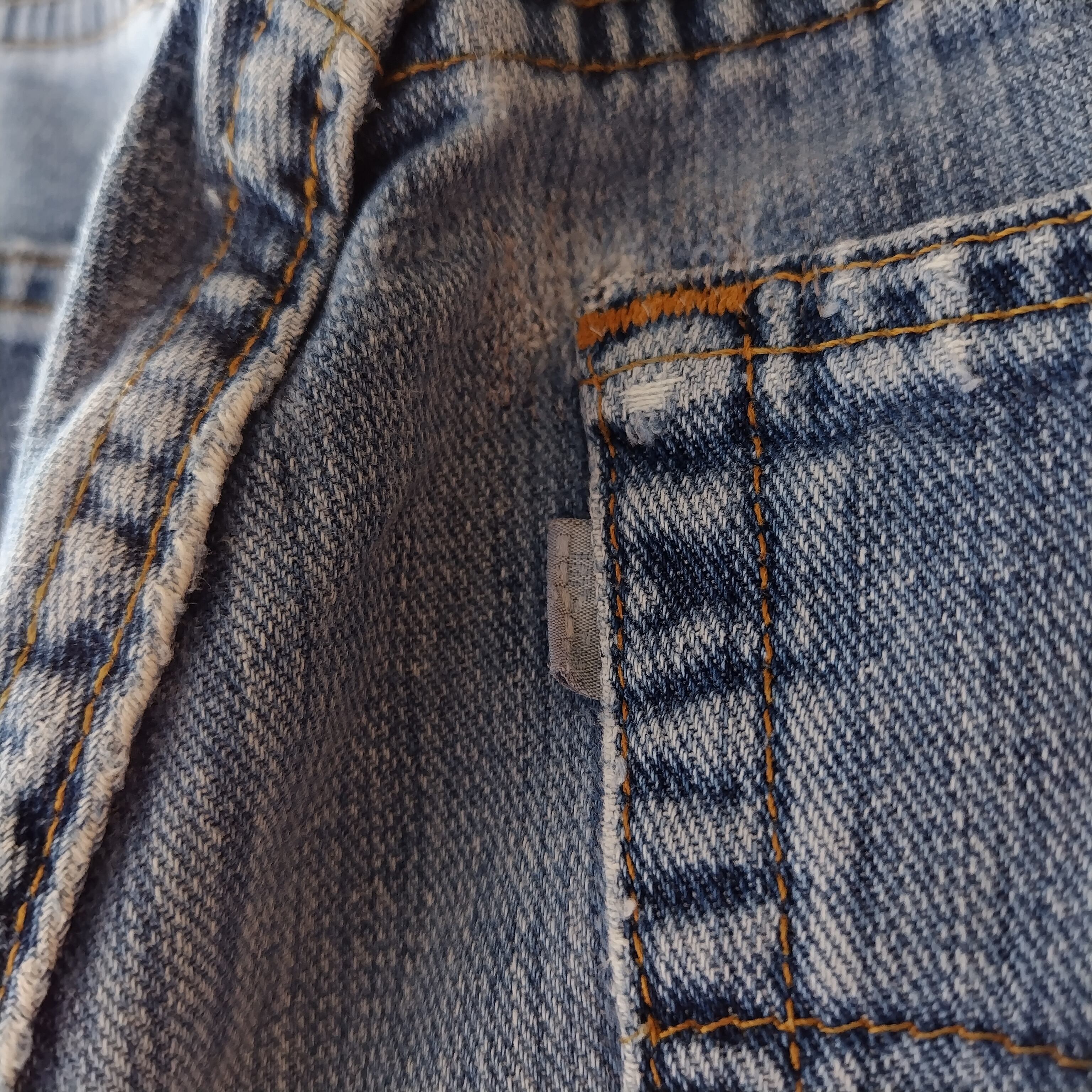 洗いこんだ感、バックの両ポケット上部付近にリペア、ウエスト上部にスレがございます。