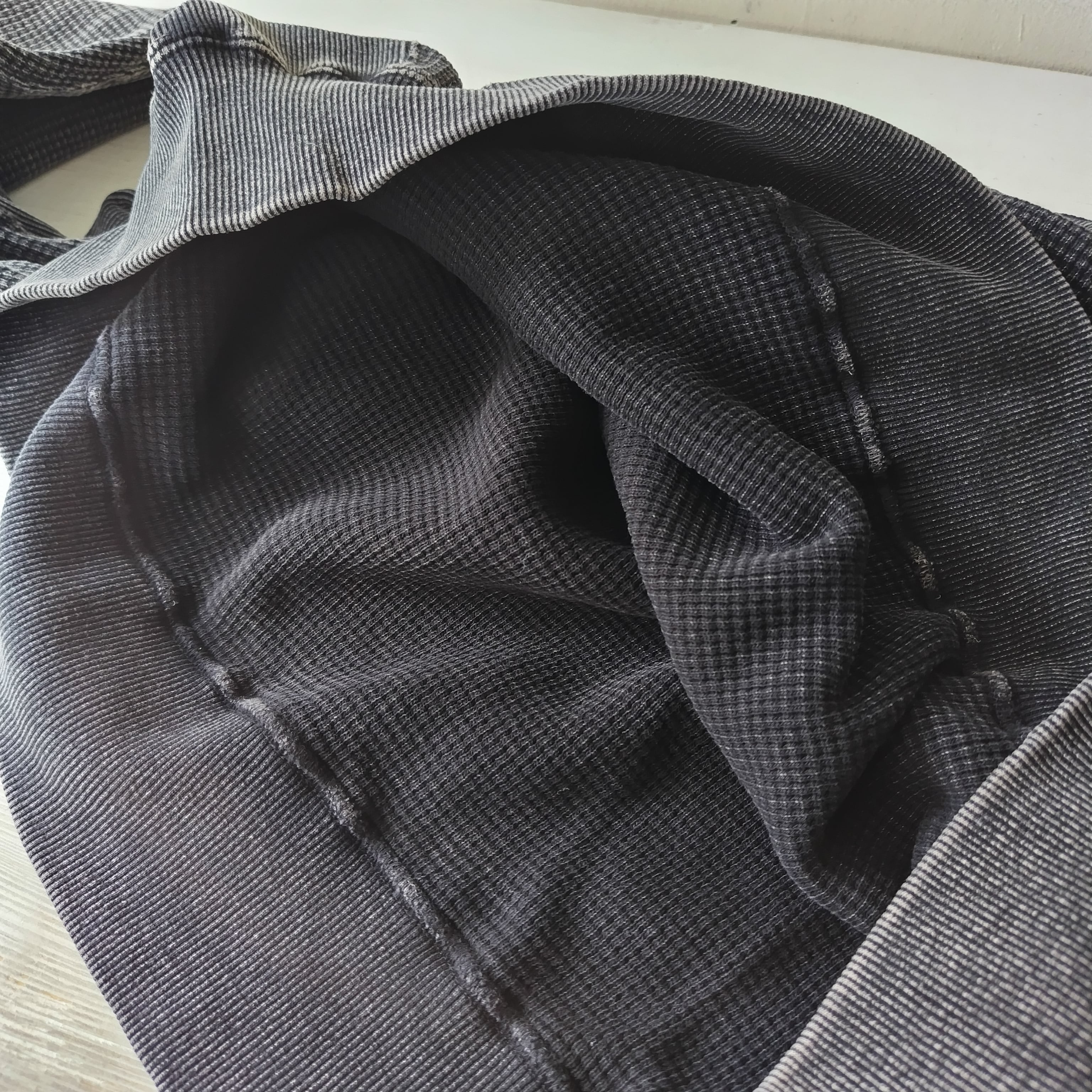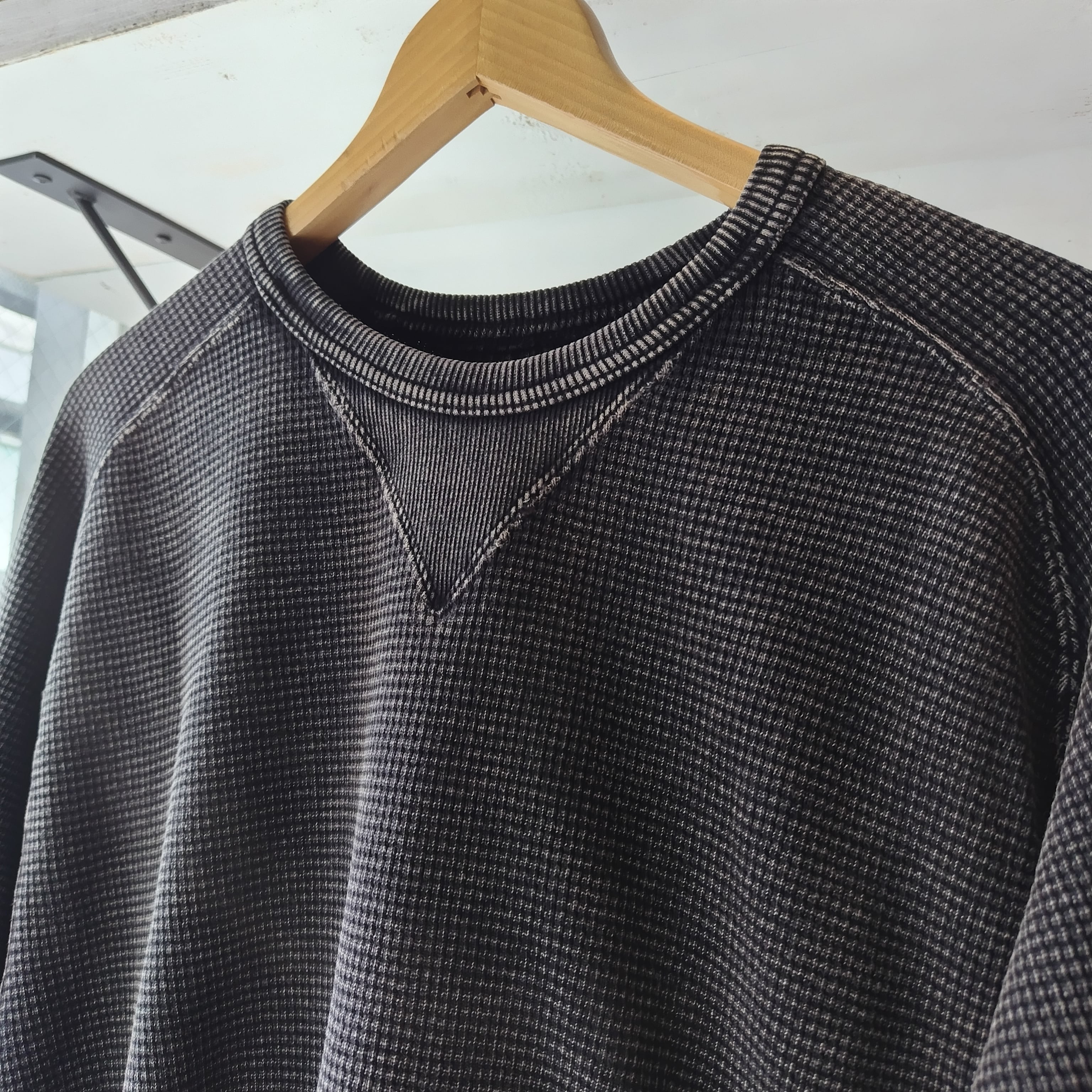この染料を導入した結果、リアルな褪せ感とビンテージのディティールと古着で希少な素材感に1枚で着るのに嬉しい緩めのサイジングがドンピシャに融合して、ありそうで無いサーマルロンTが完成しました。