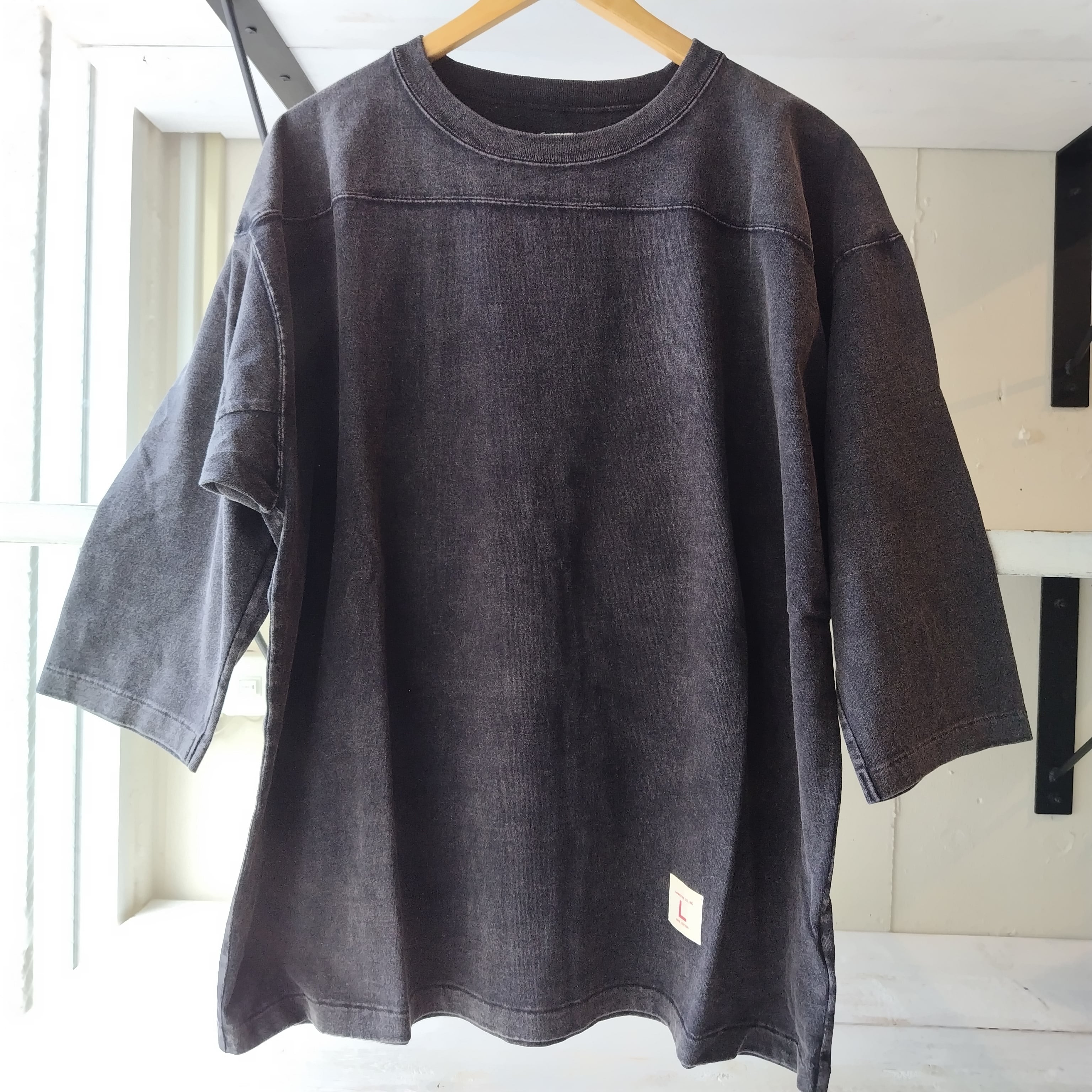 今回フットボールTシャツをフェードブラックにカラー別注させていただきました。