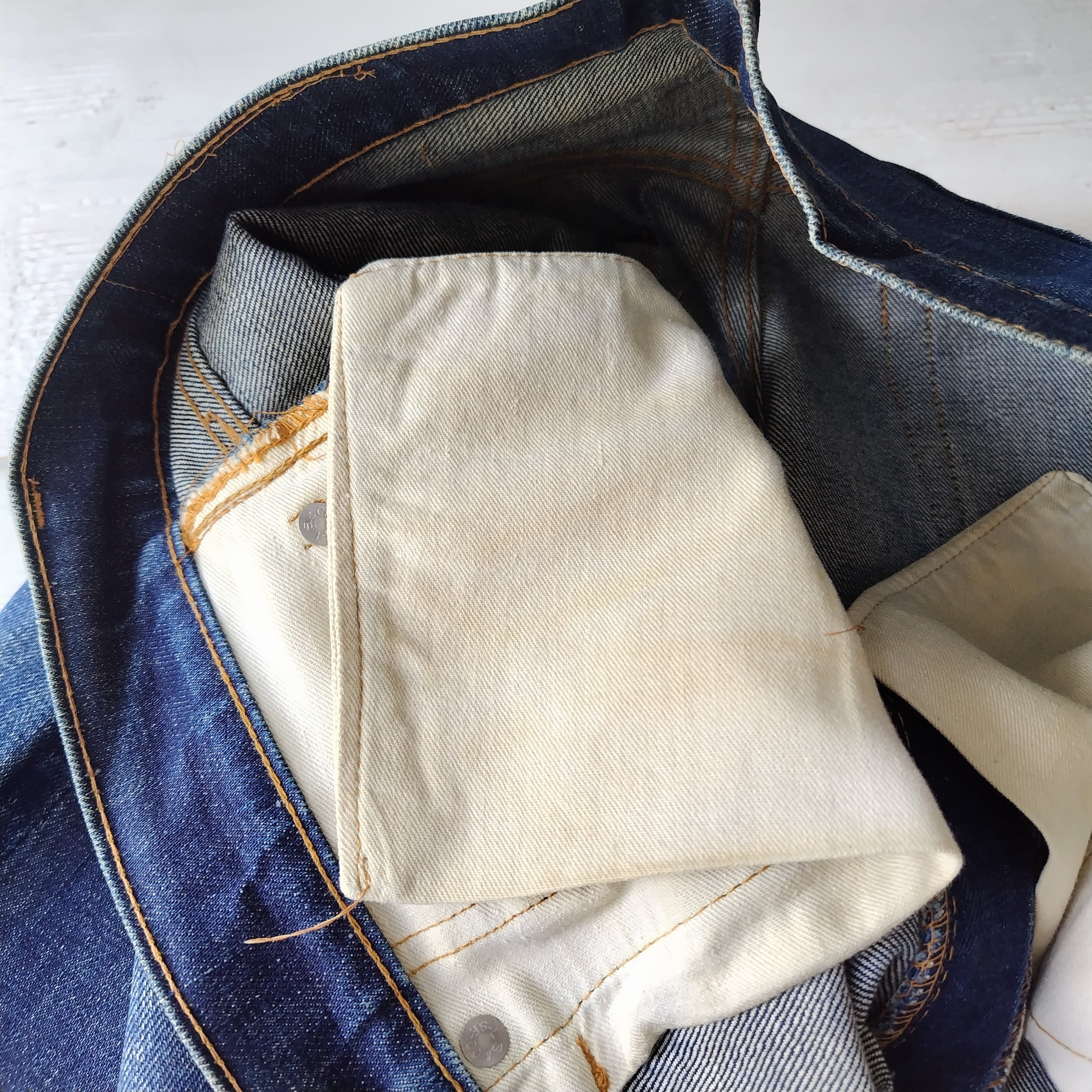 洗いこんだ感、微量の色ぬけや織りむら、ポケット裏生地に若干のくすみ、所々に微量のシミ、パッチなし、裾にスレなどなどございますが 雰囲気とレア度が間違いなく勝ってるかと思います!