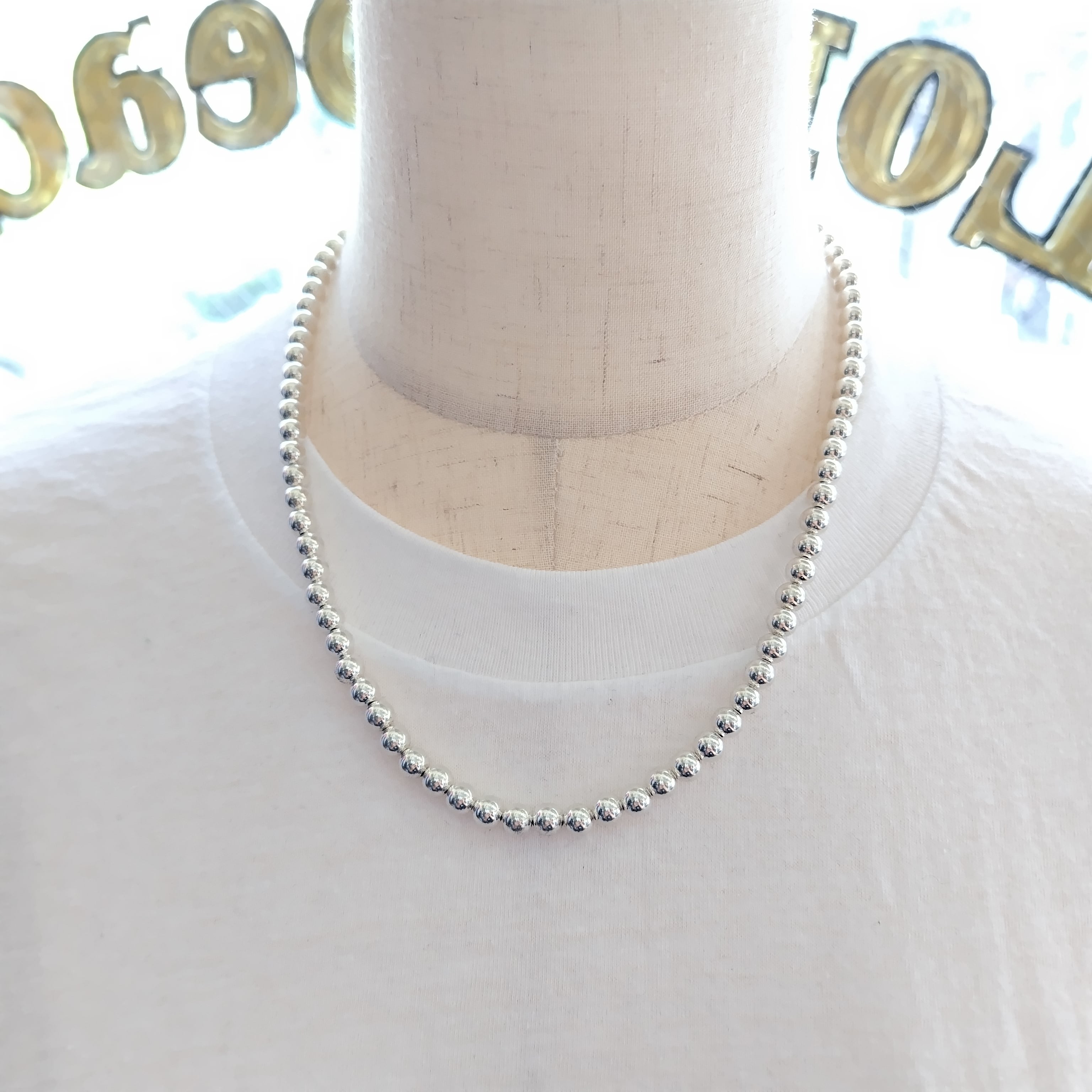 6mm玉 50cm ナバホパール シルバーネックレス インディアンジュエリー
