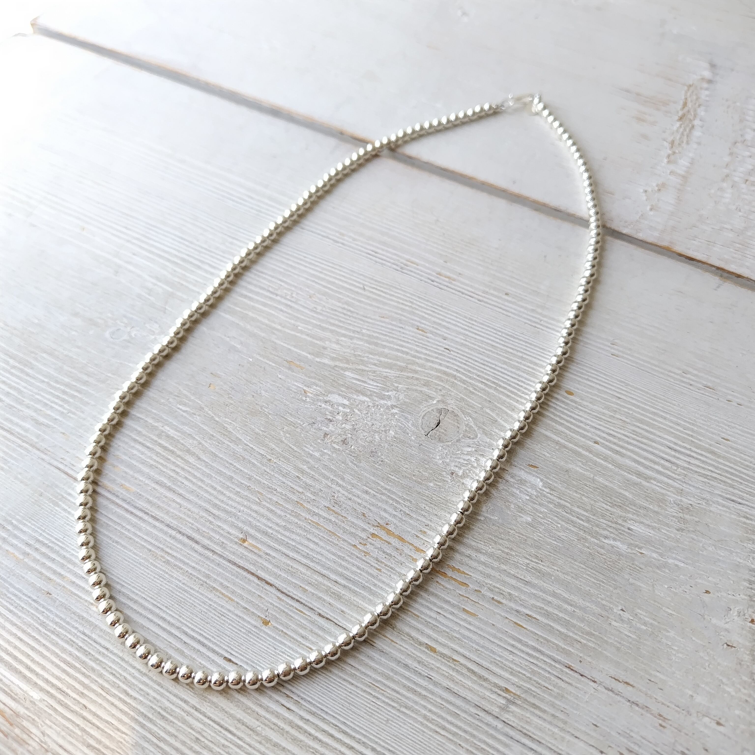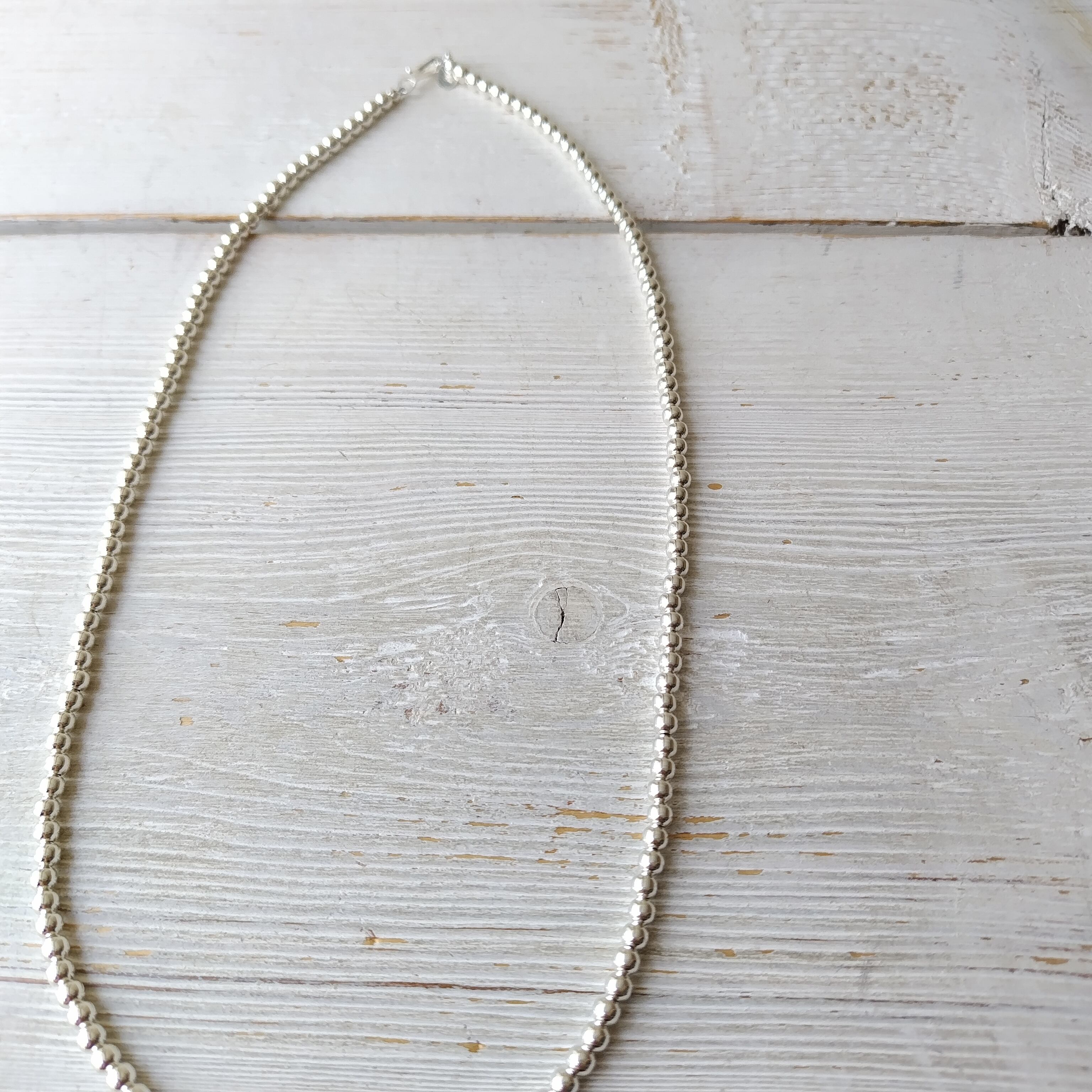 4mm玉 55cm ナバホパール シルバーネックレス インディアンジュエリー