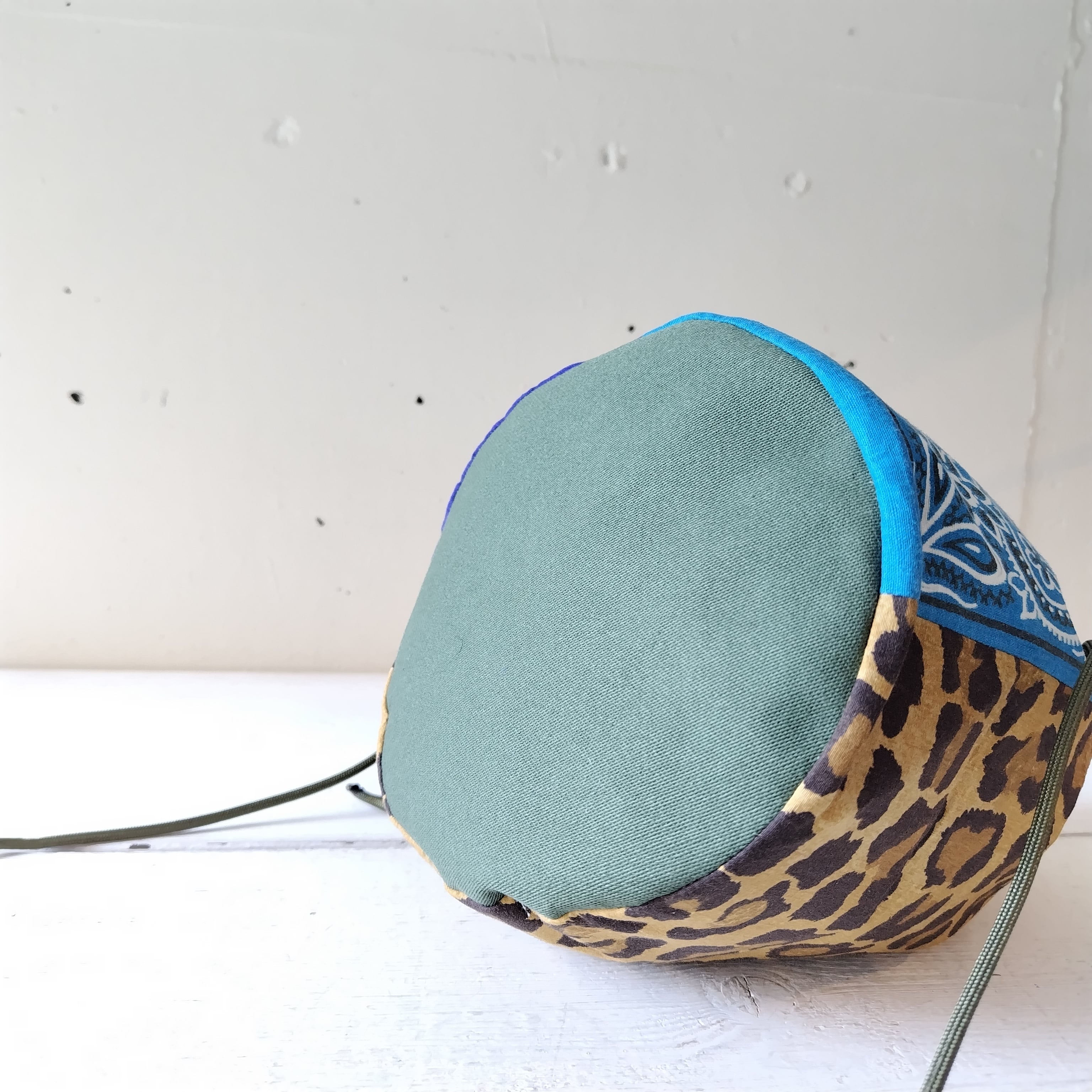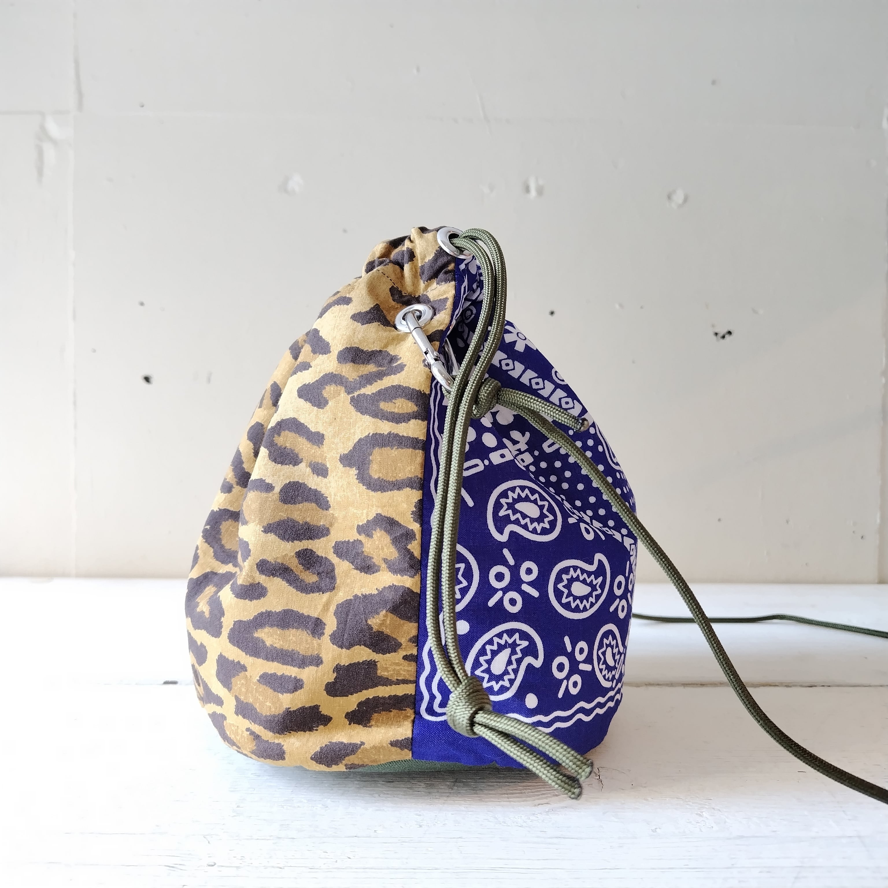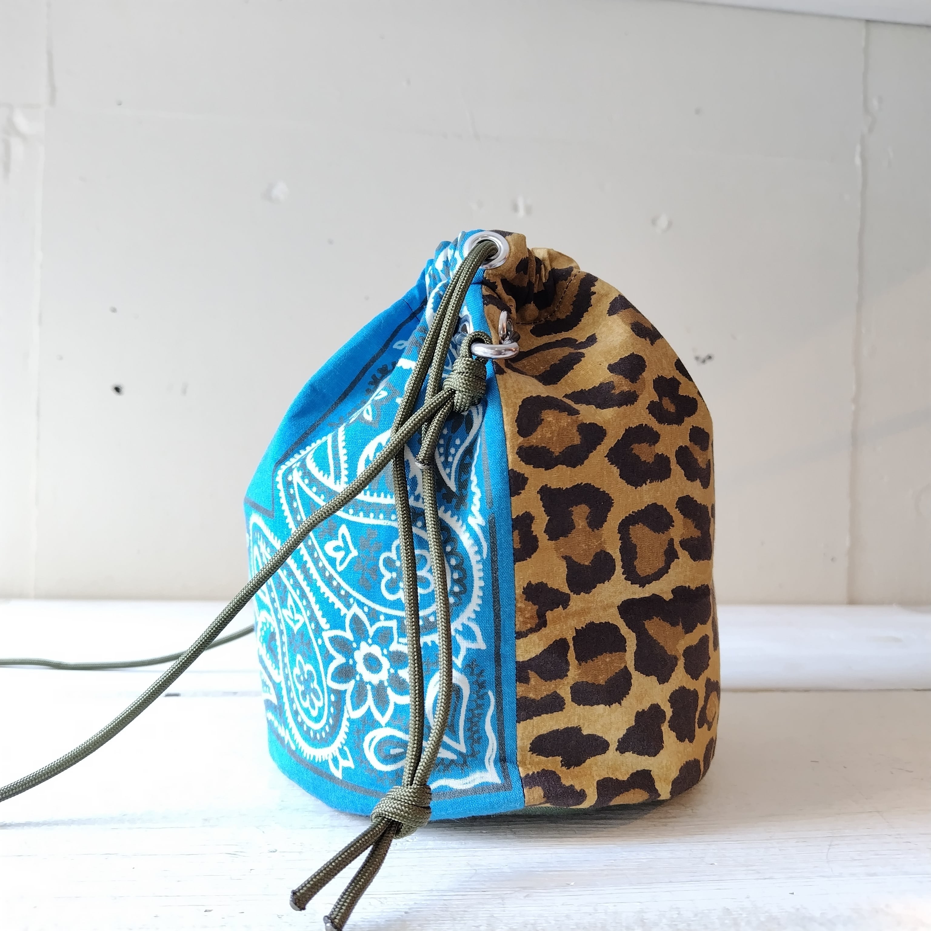 バンダナ パッチワーク x レオパード リメイク巾着 2wayショルダーバッグ