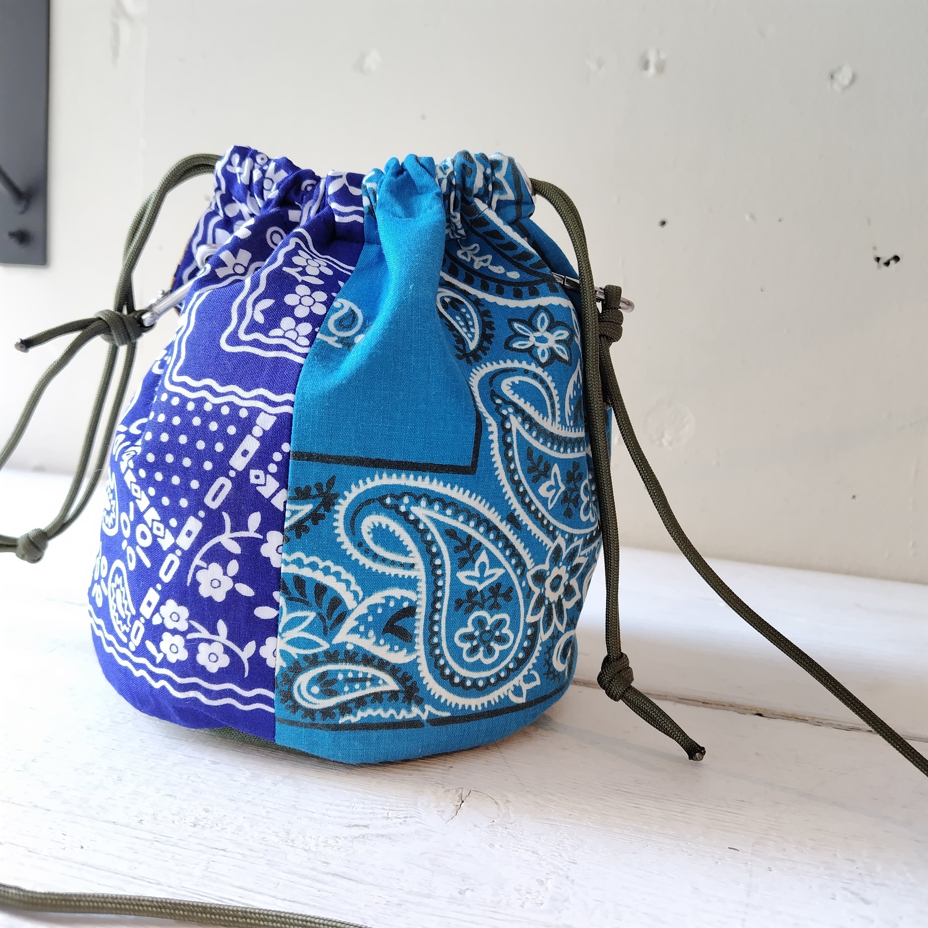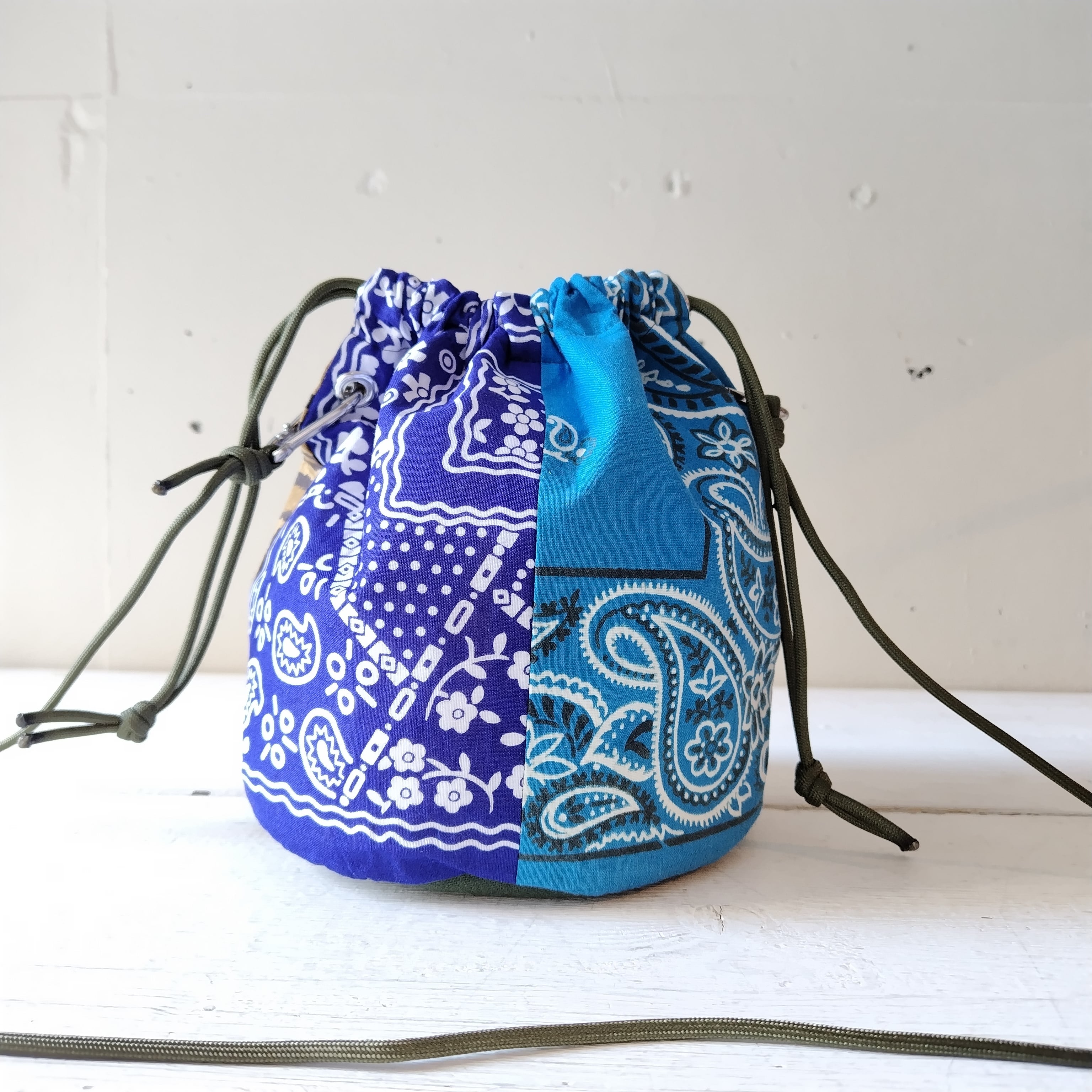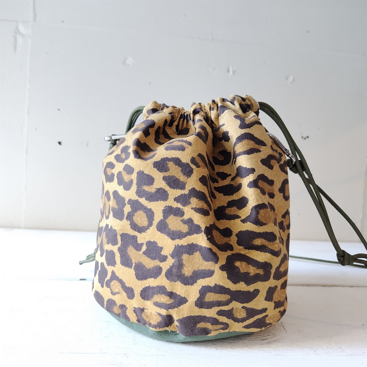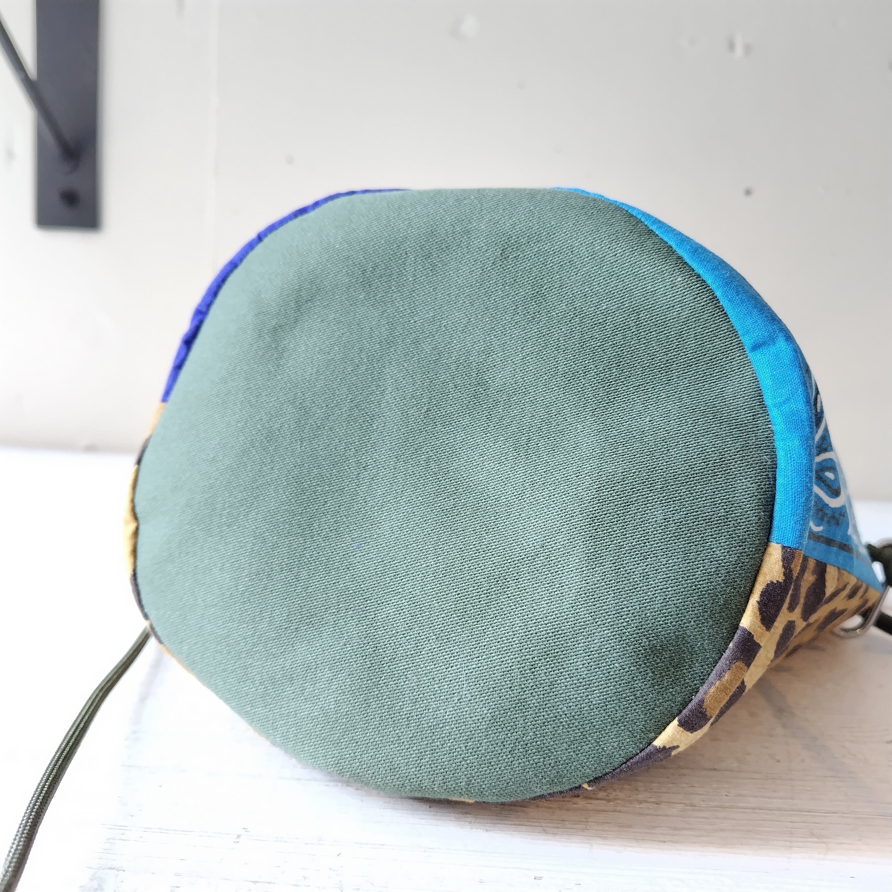 バンダナ パッチワーク x レオパード リメイク巾着 2wayショルダーバッグ