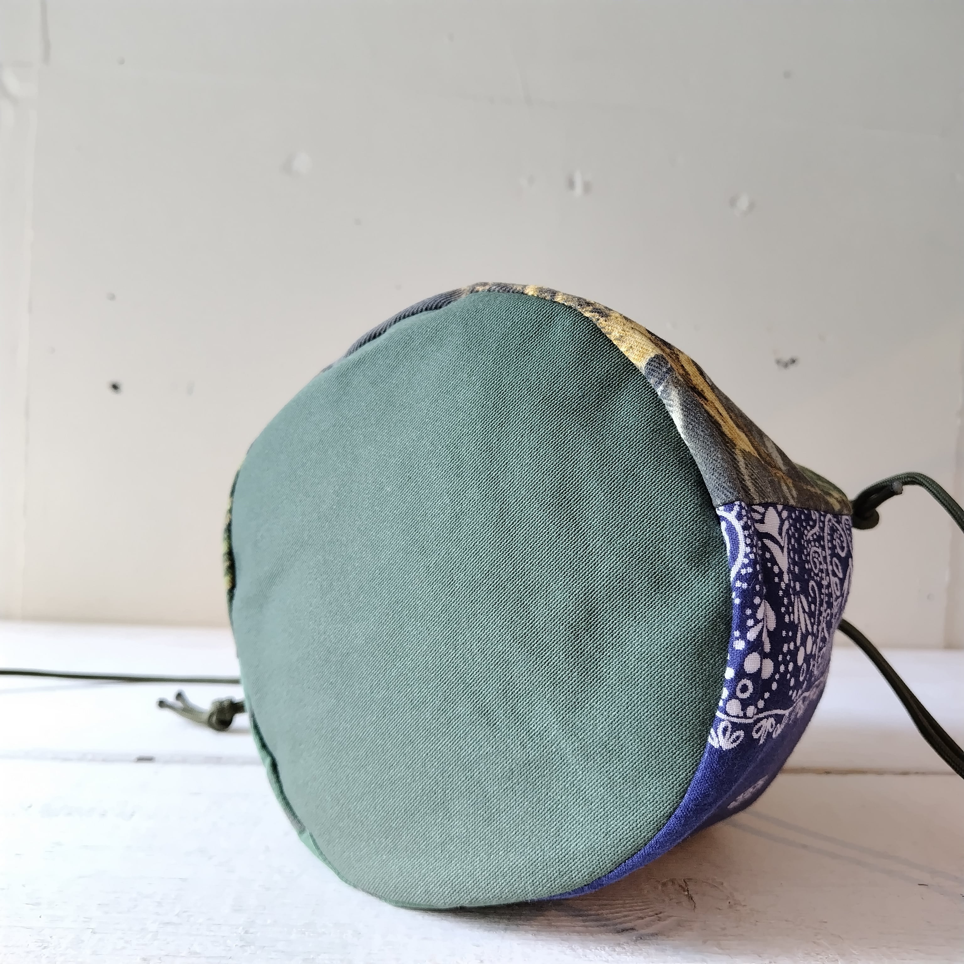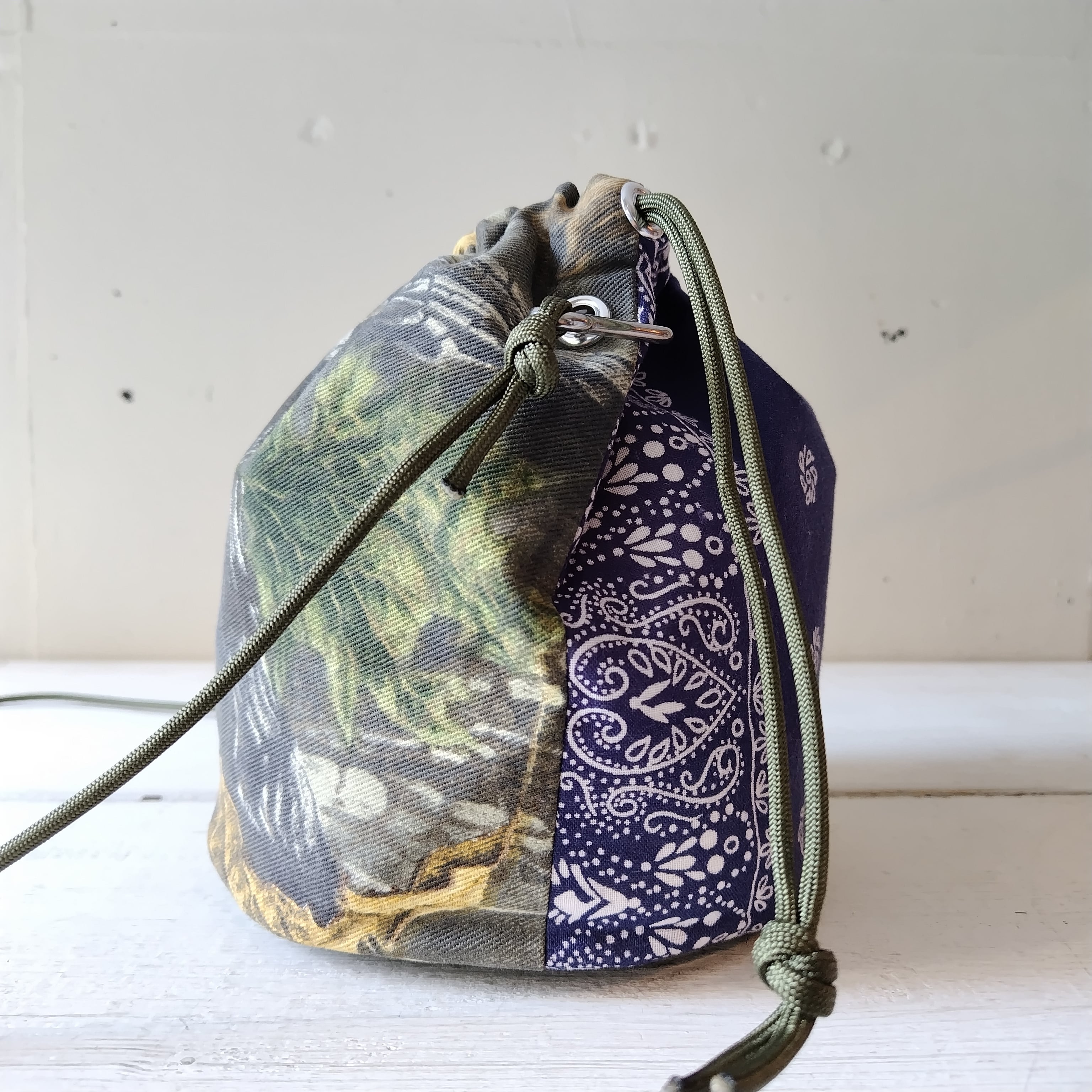 カモフラージュ x バンダナ リメイク巾着 2wayショルダーバッグ