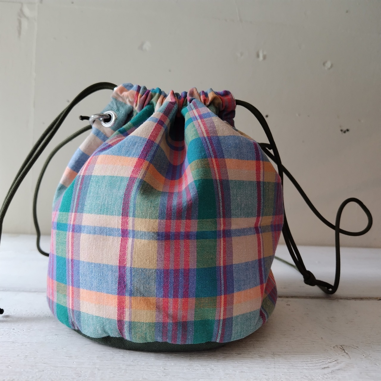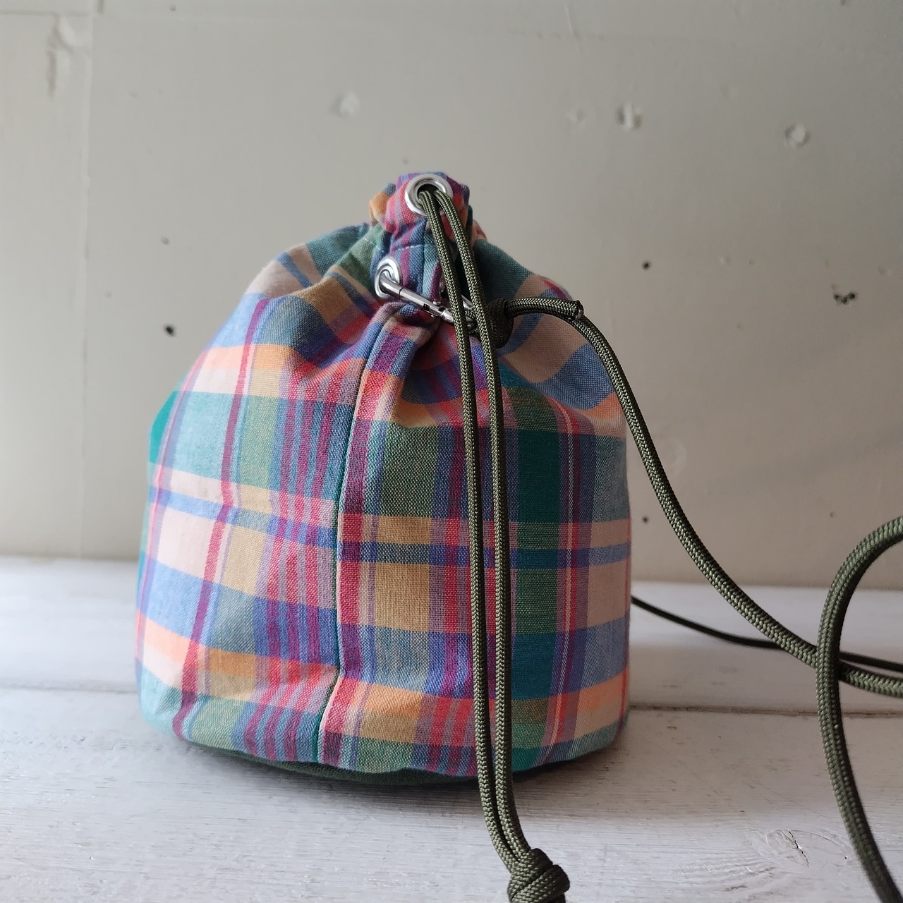 マドラスチェック リメイク巾着 2wayショルダーバッグ