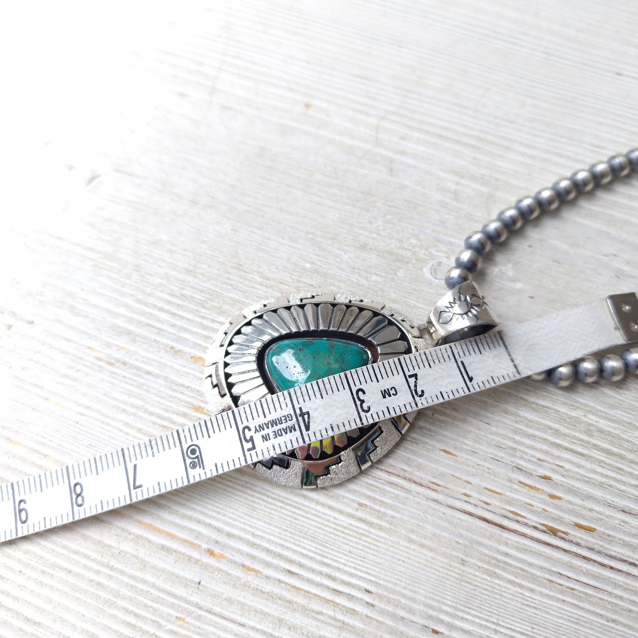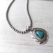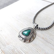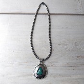 Navajo Herman Vandever Fox Turquoise サンバースト シルバートップ + ナバホパール シャイニー x 燻 シルバーネックレス 5mm玉 40cm
