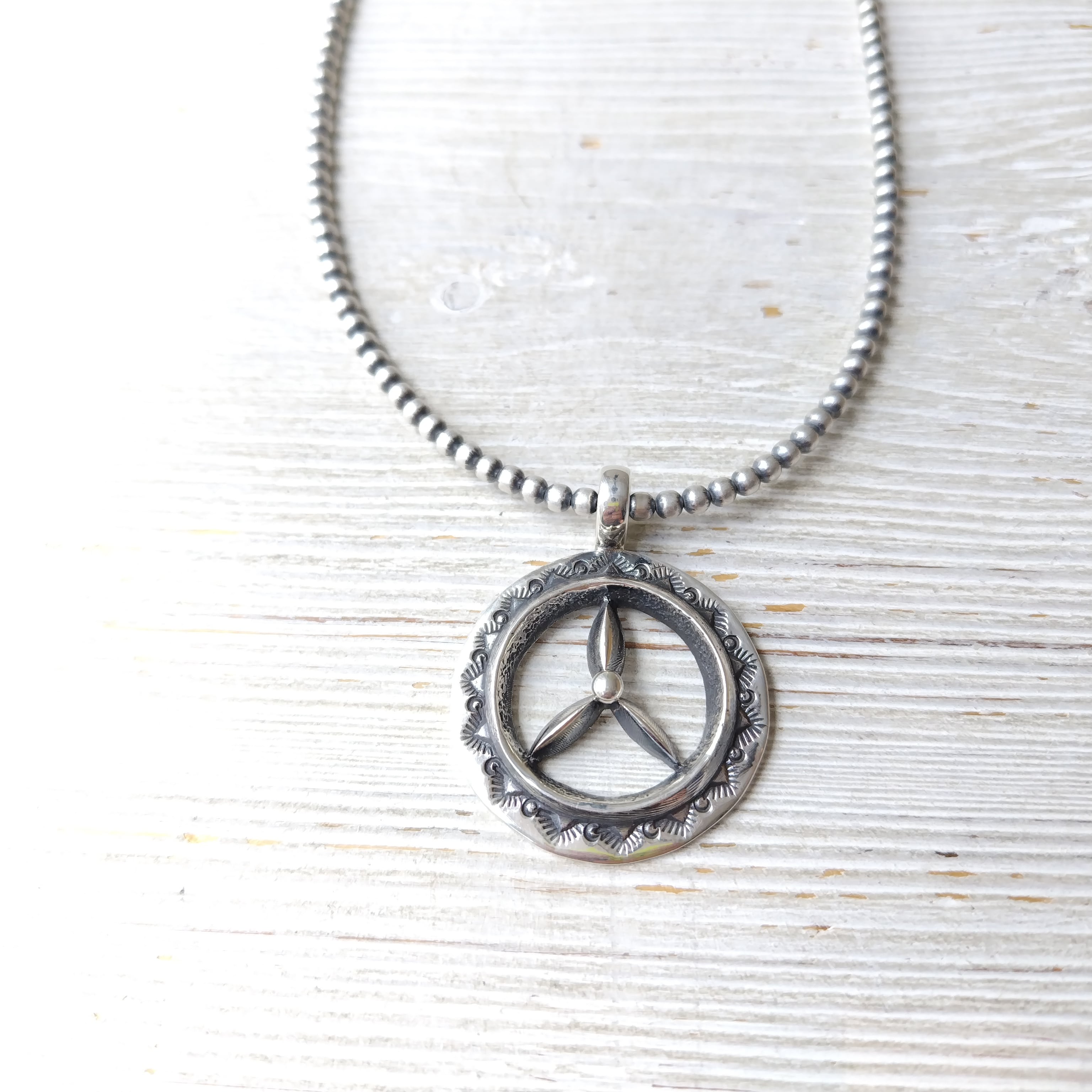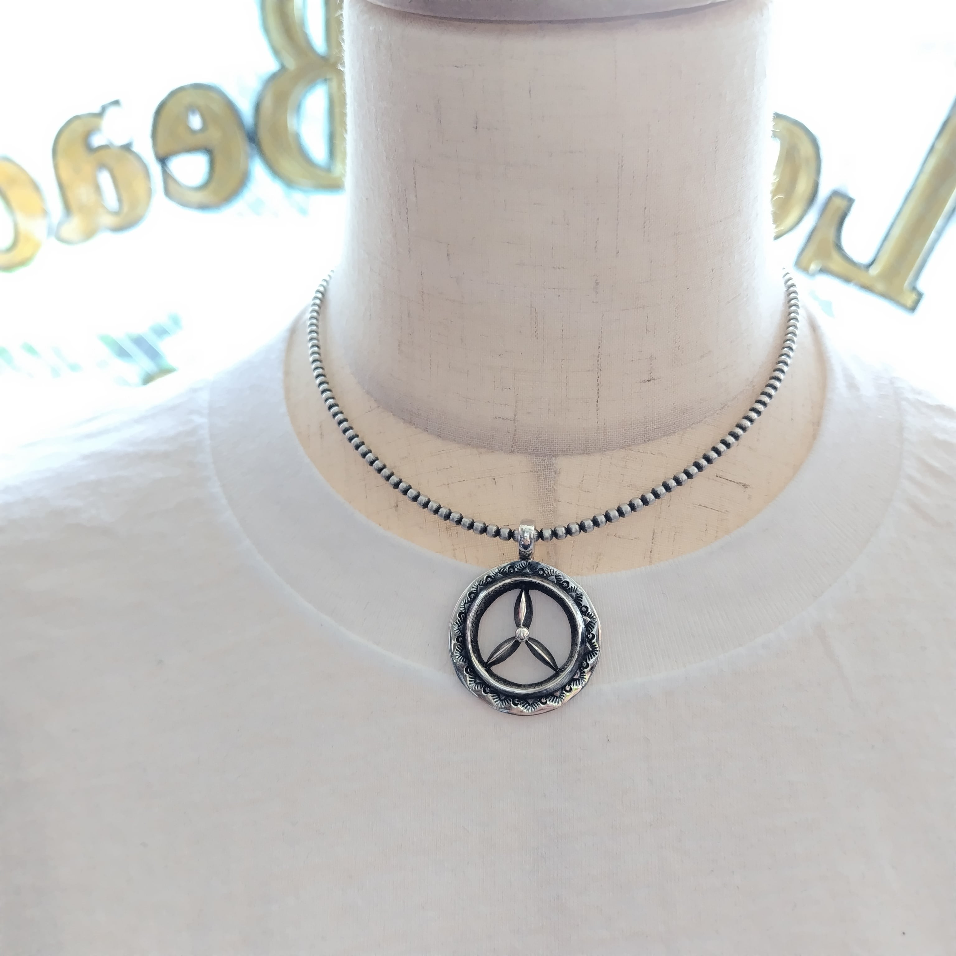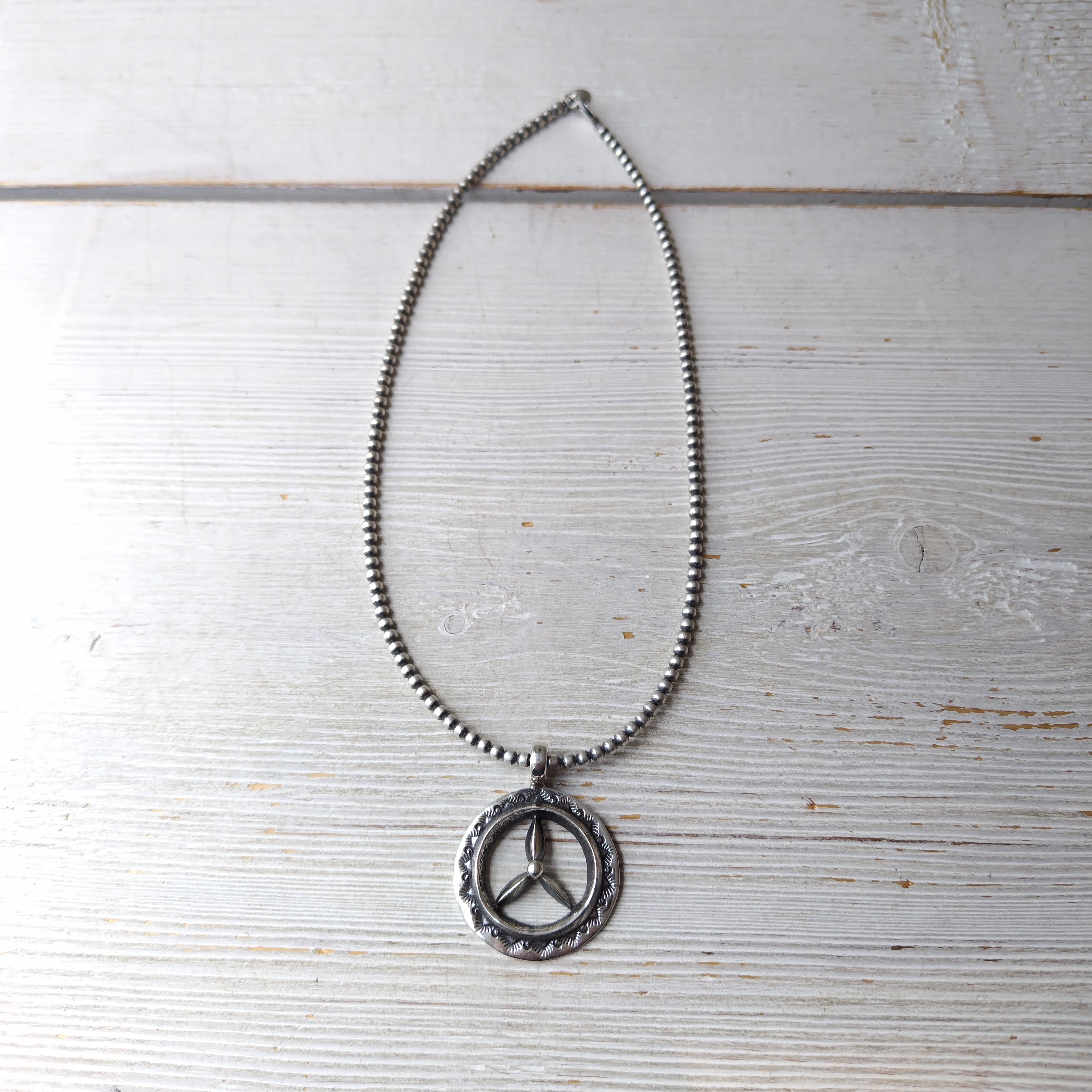 ナバホ Aaron Anderson シルバートップ + ナバホパール シャイニー燻 3mm玉 40cm シルバーネックレス インディアンジュエリー