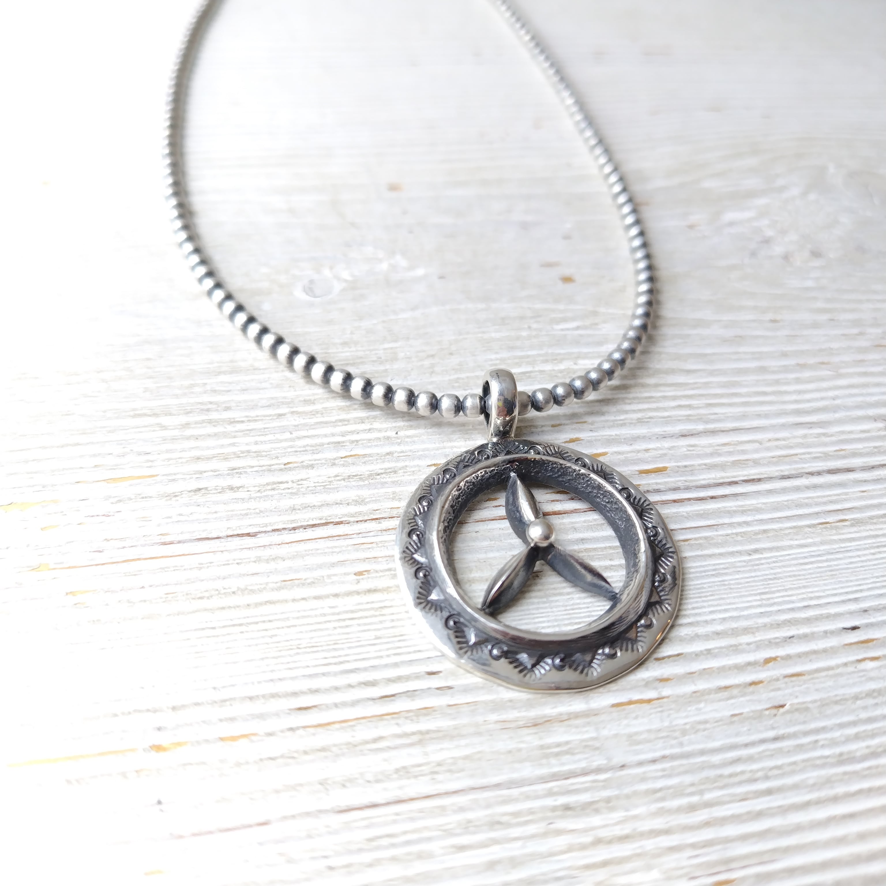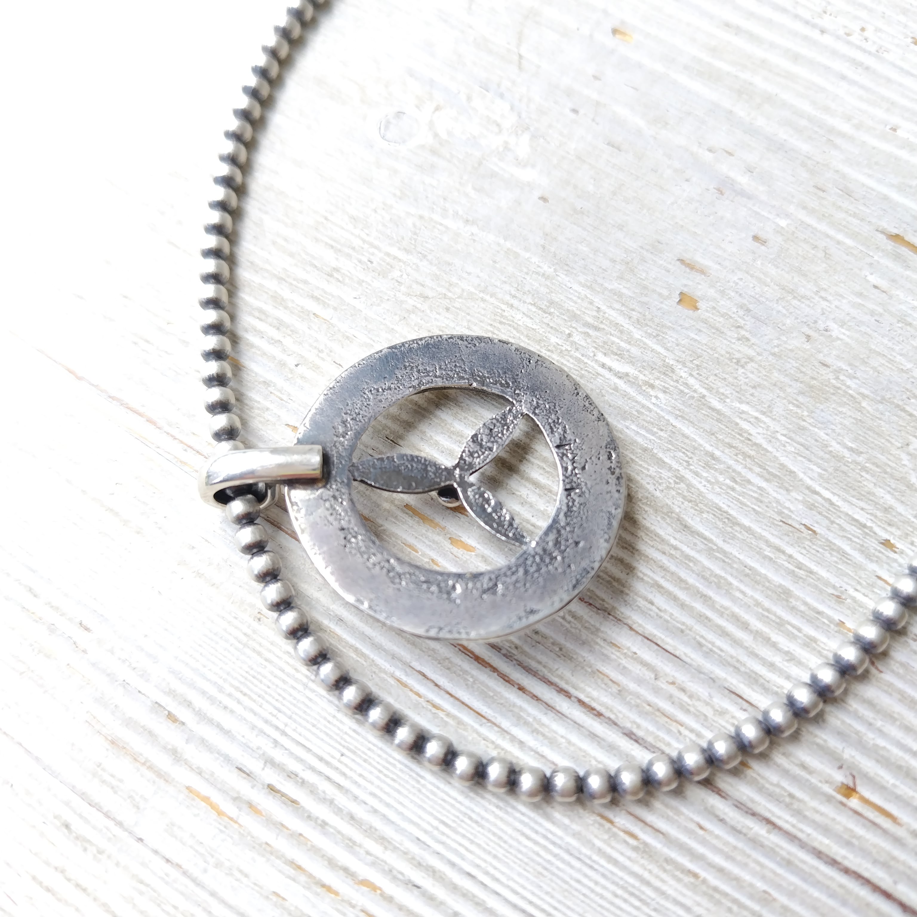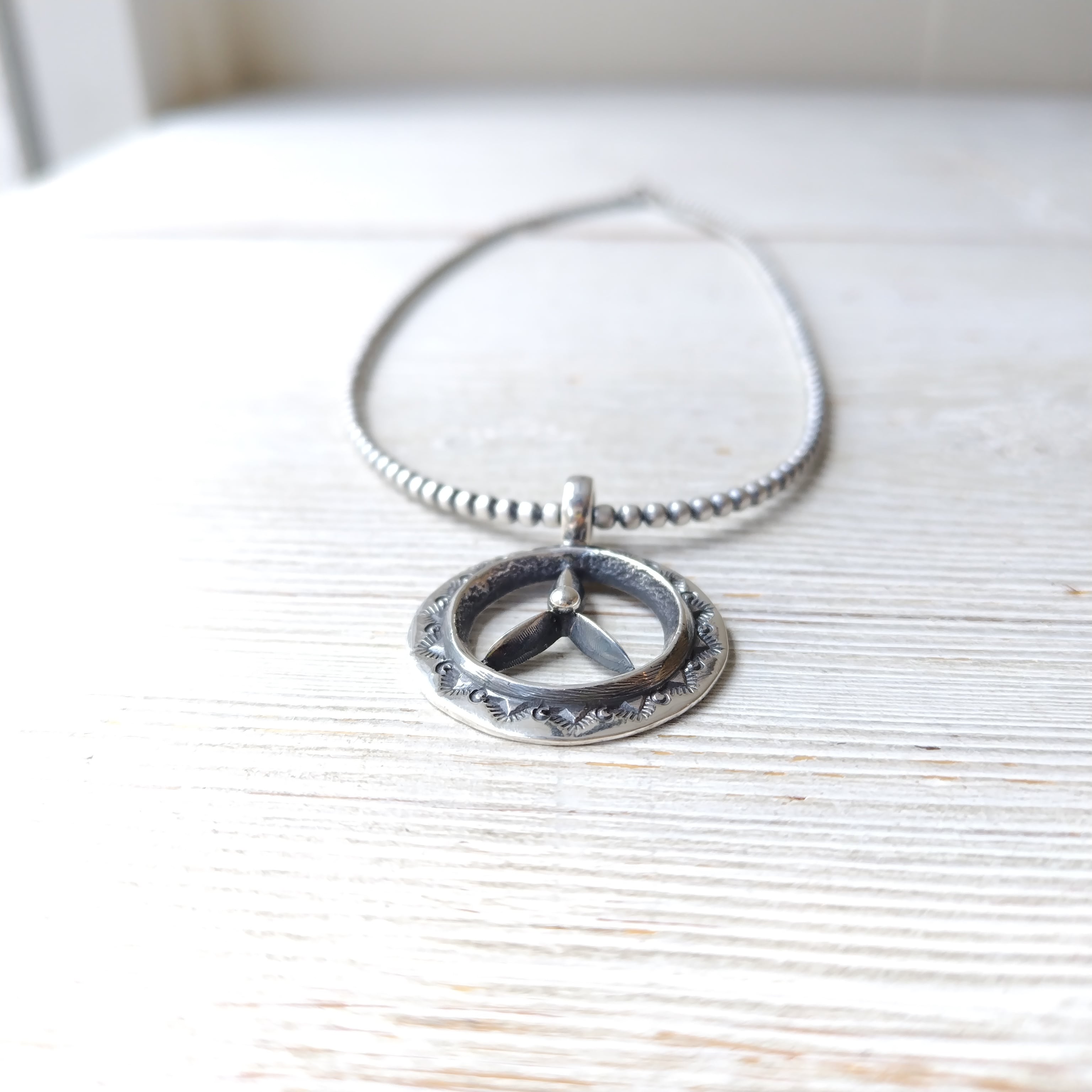 ナバホ Aaron Anderson シルバートップ + ナバホパール シャイニー燻 3mm玉 40cm シルバーネックレス インディアンジュエリー