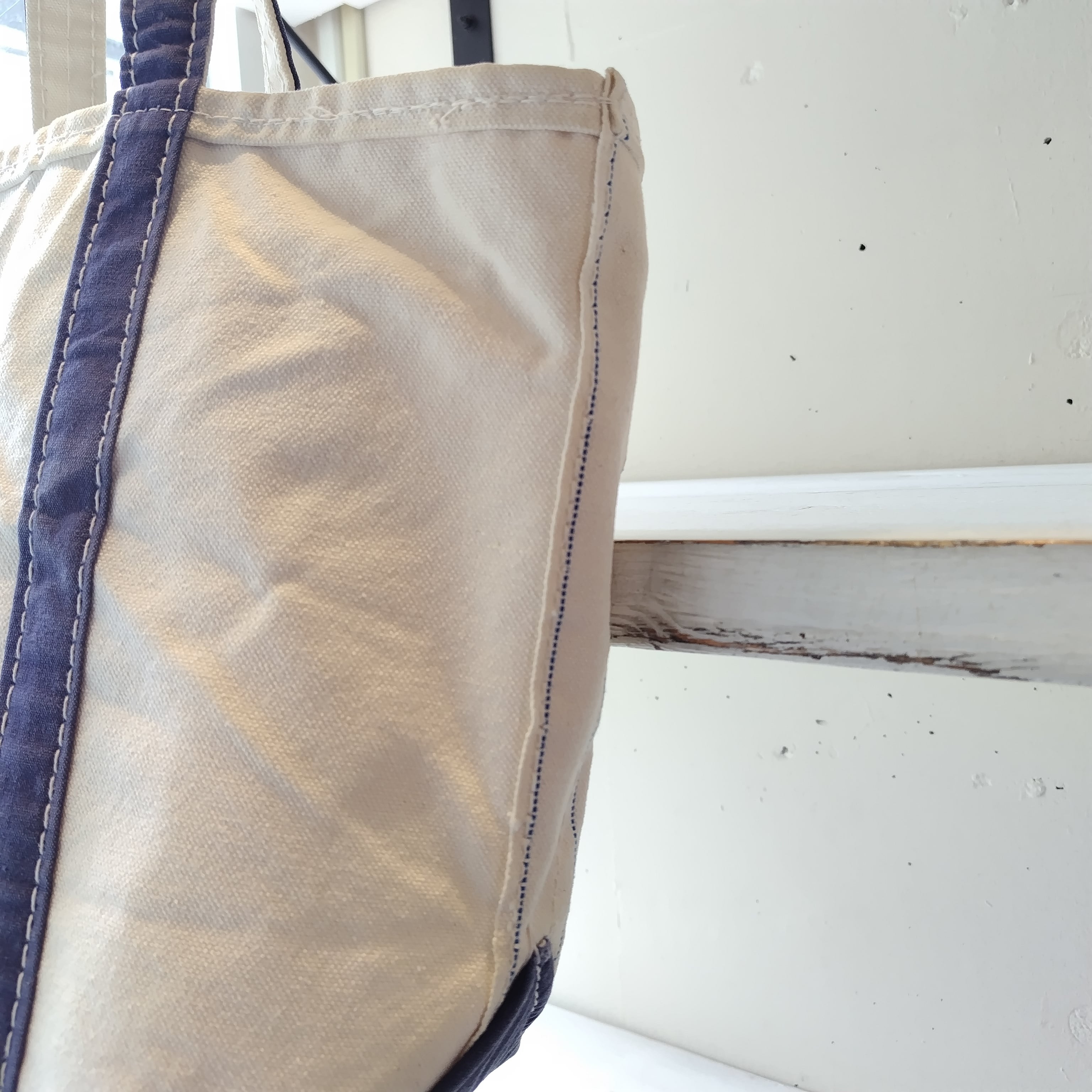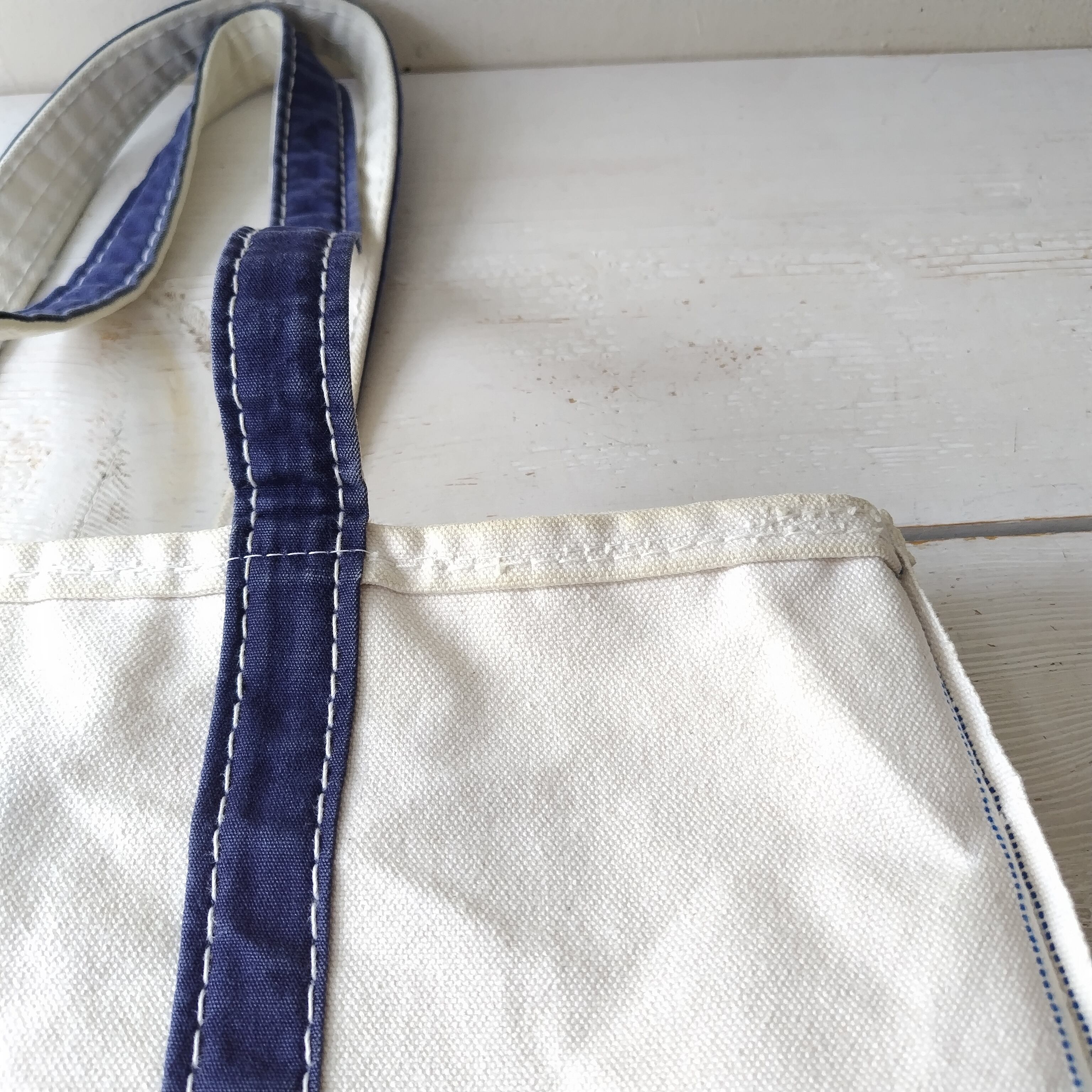 80s初期ですがL.L.Beanの70sの仕様、ブルーガイドライン、綿糸、ハンドル裏トリプルステッチ