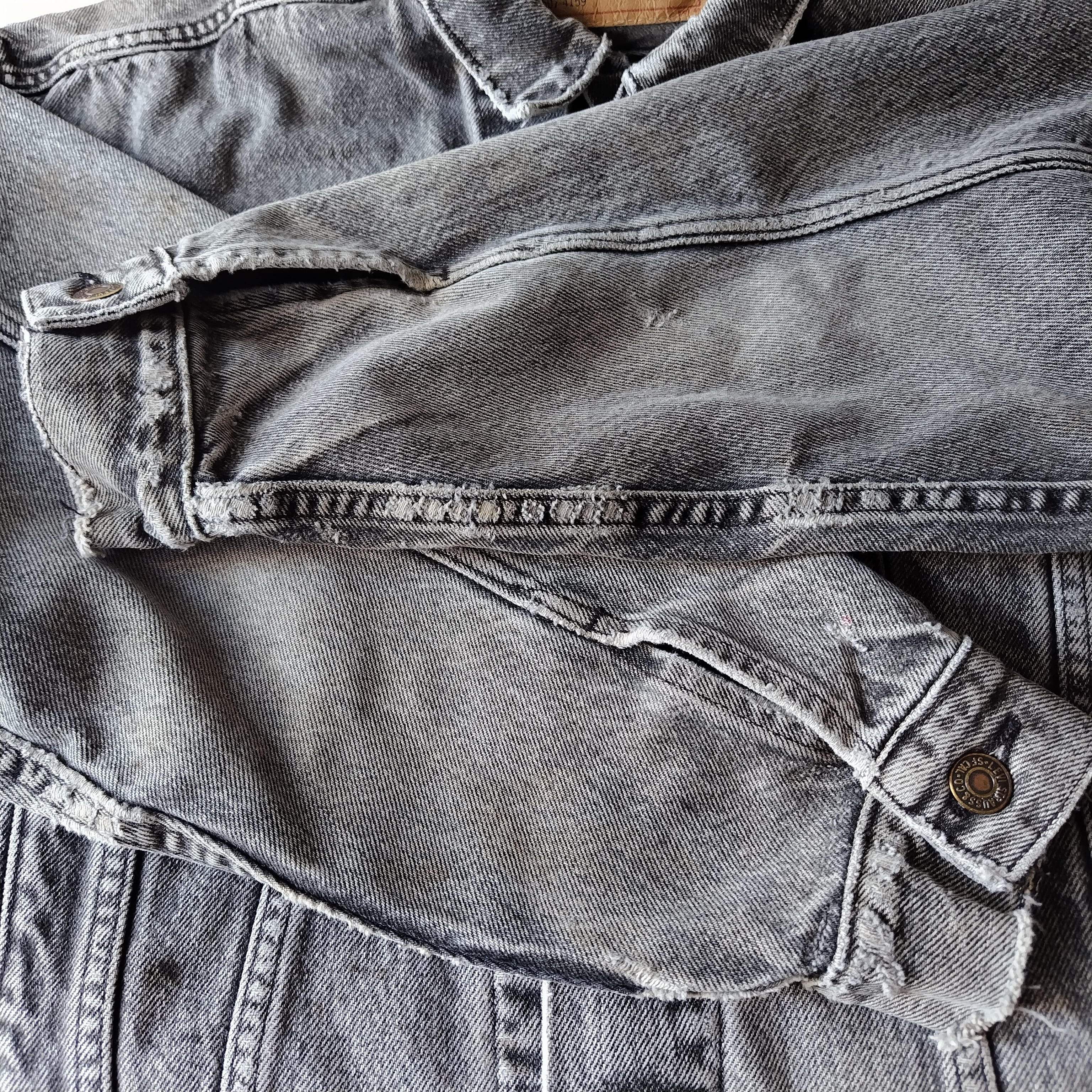 洗いこんだフェード感、スレ、シミ多数ととくに右袖裏に全体的にシミ、くすみがございますが雰囲気が間違いなく勝ってるかと思います!!