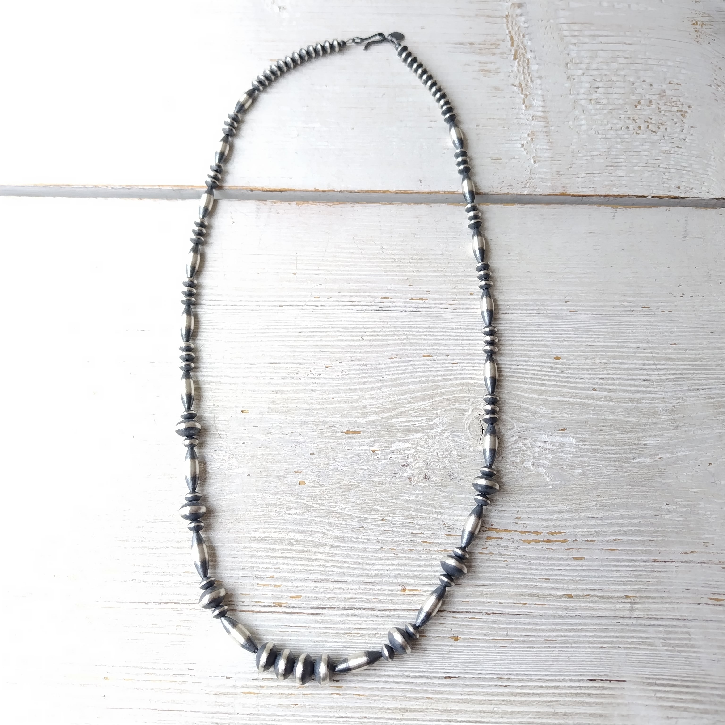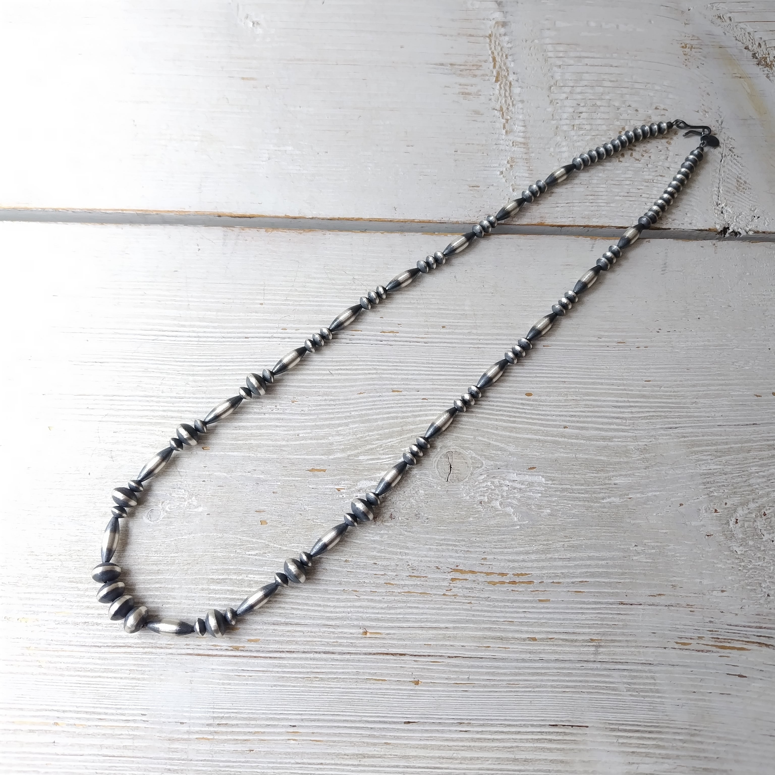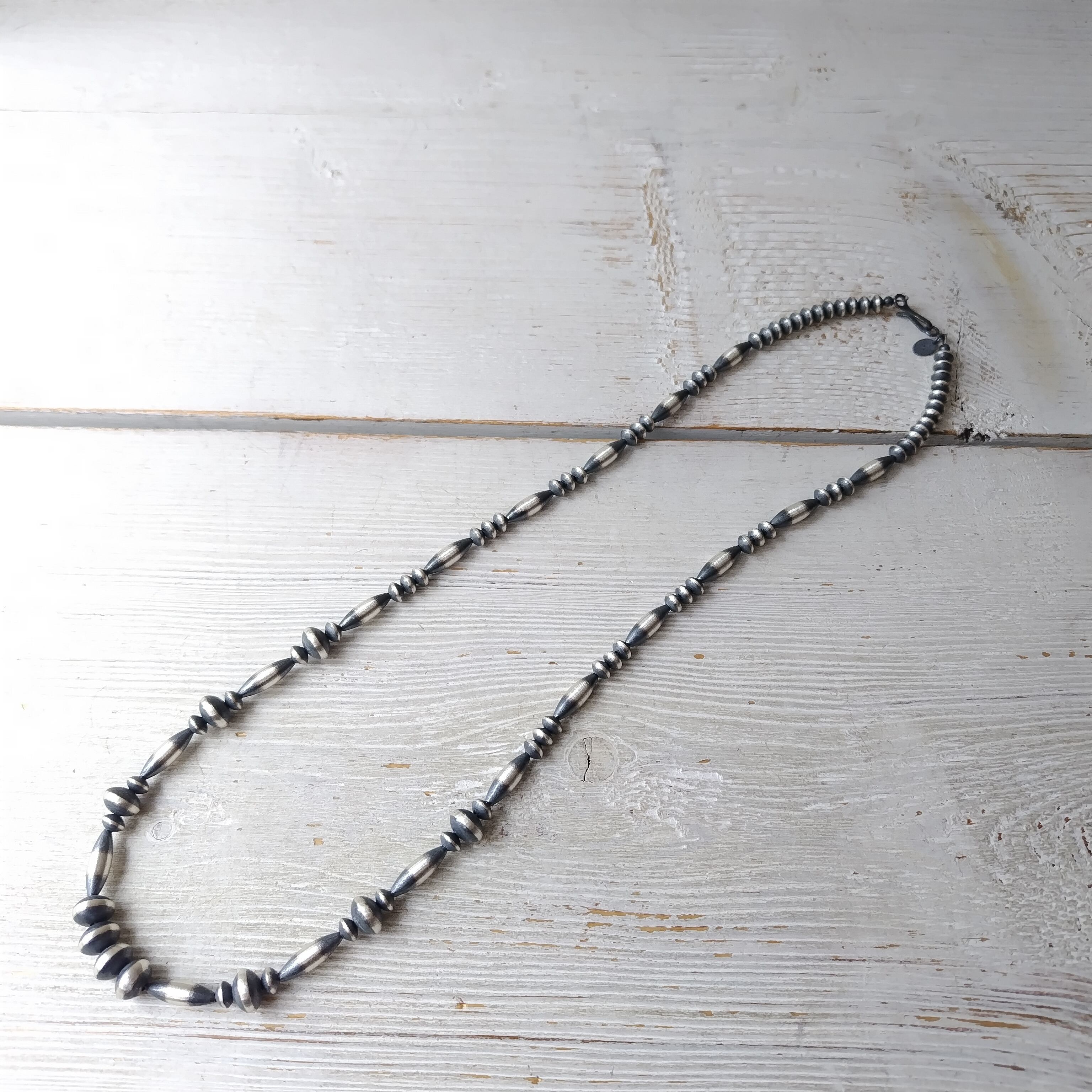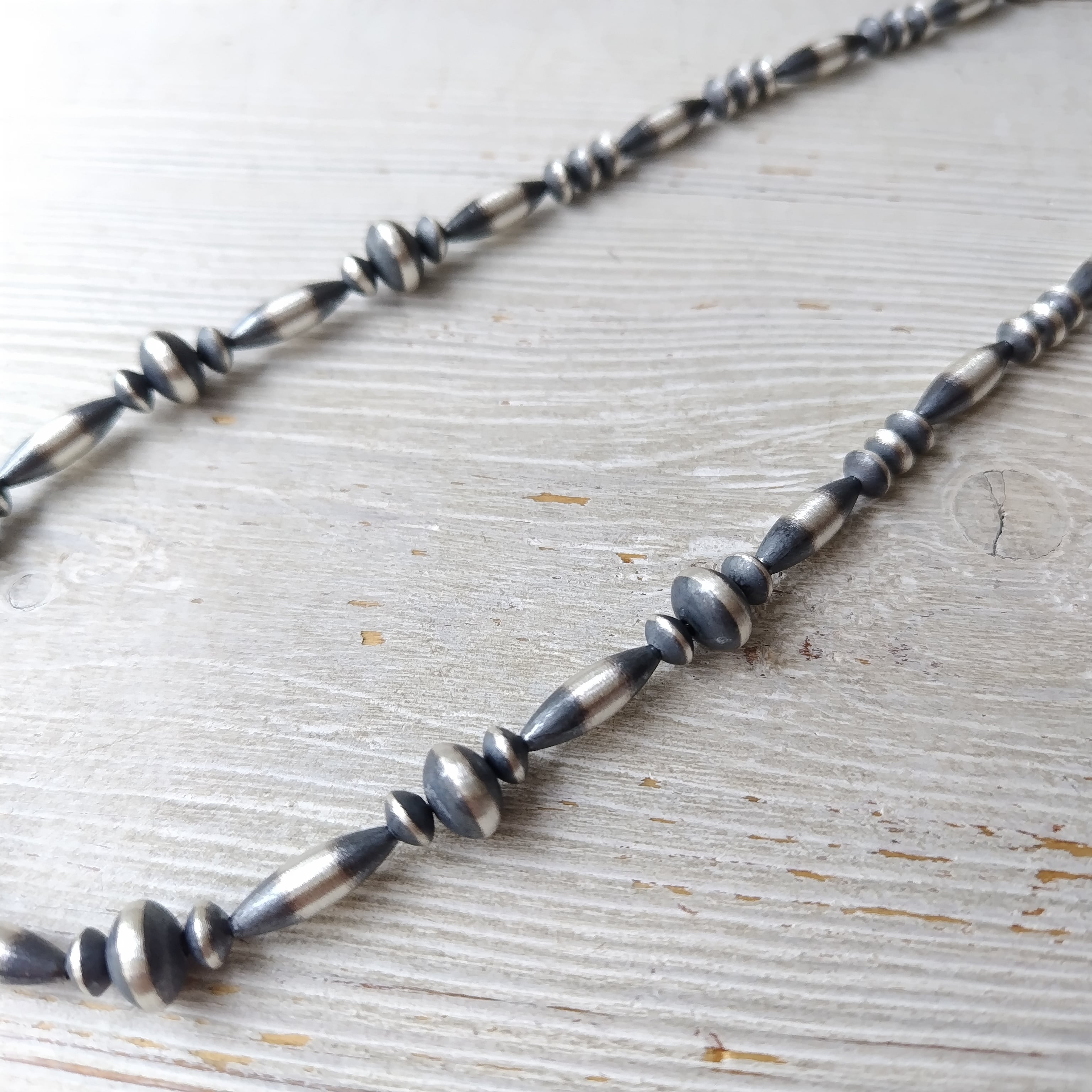 60cm ナバホ シャイニー x 燻 シルバーネックレス インディアンジュエリー