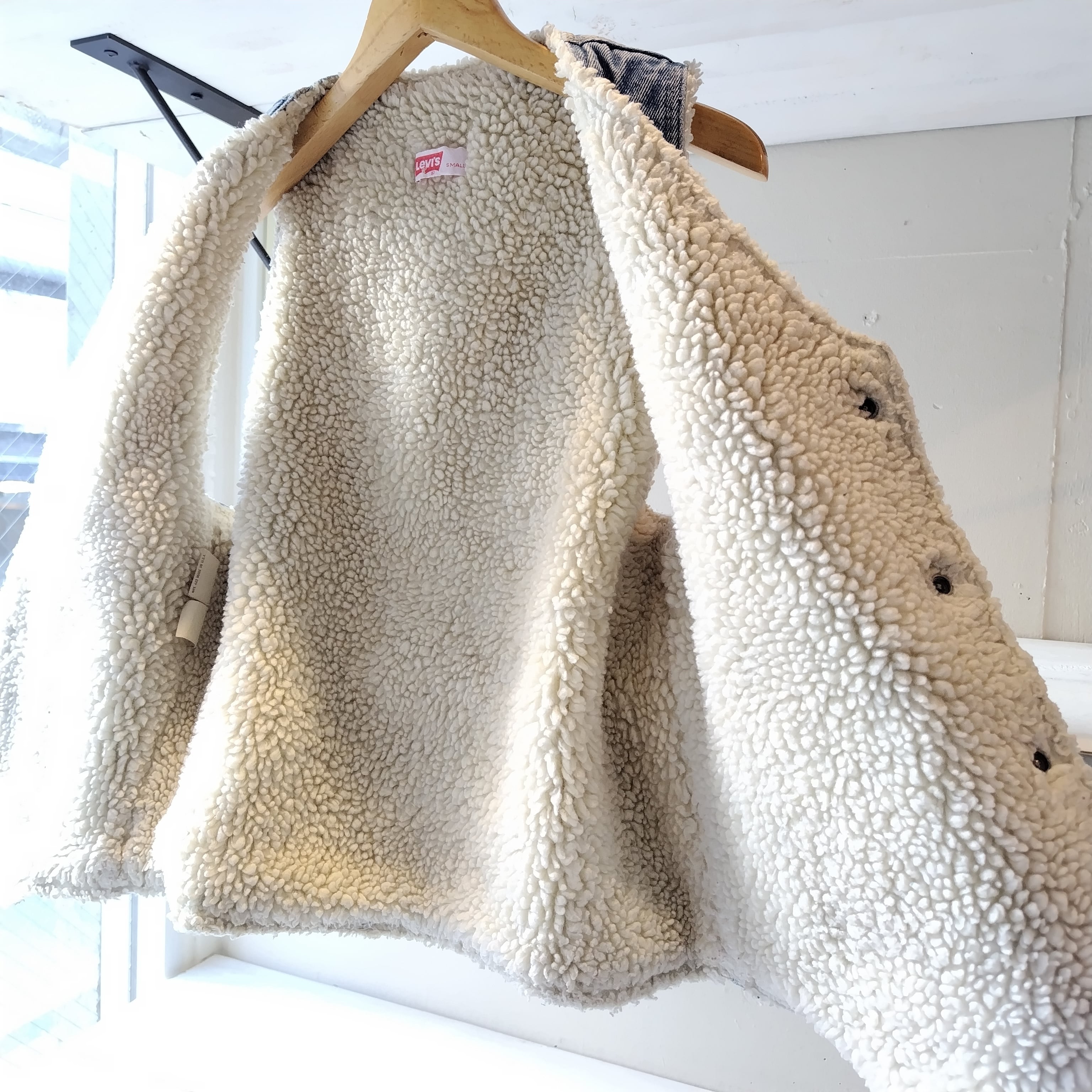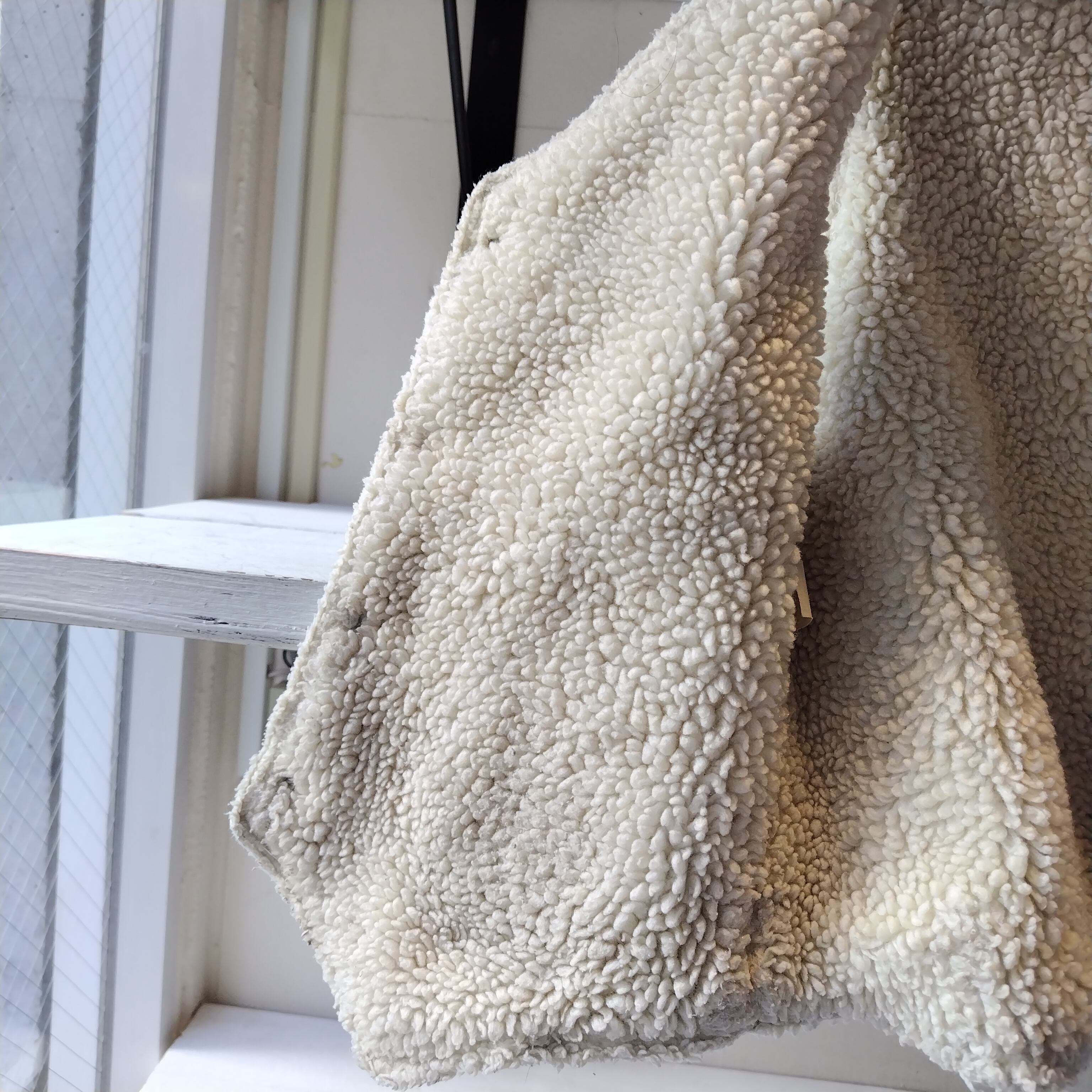 洗いこんだフェード感、デニムにくすみやシミ、ボアにくすみ、つぶれやシミが所々にございますので雰囲気重視をご了承くださいませ。